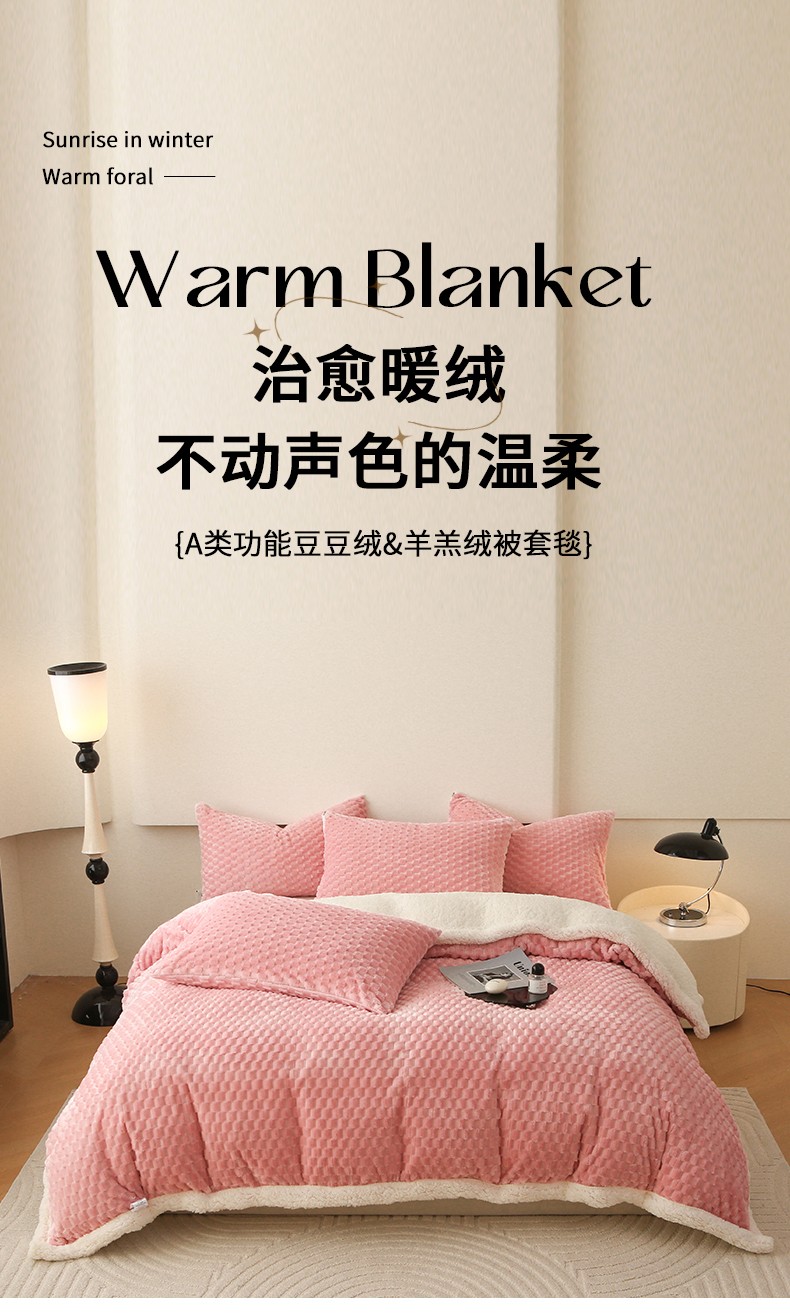 网客 多功能豆豆绒素色被套毯 公主粉