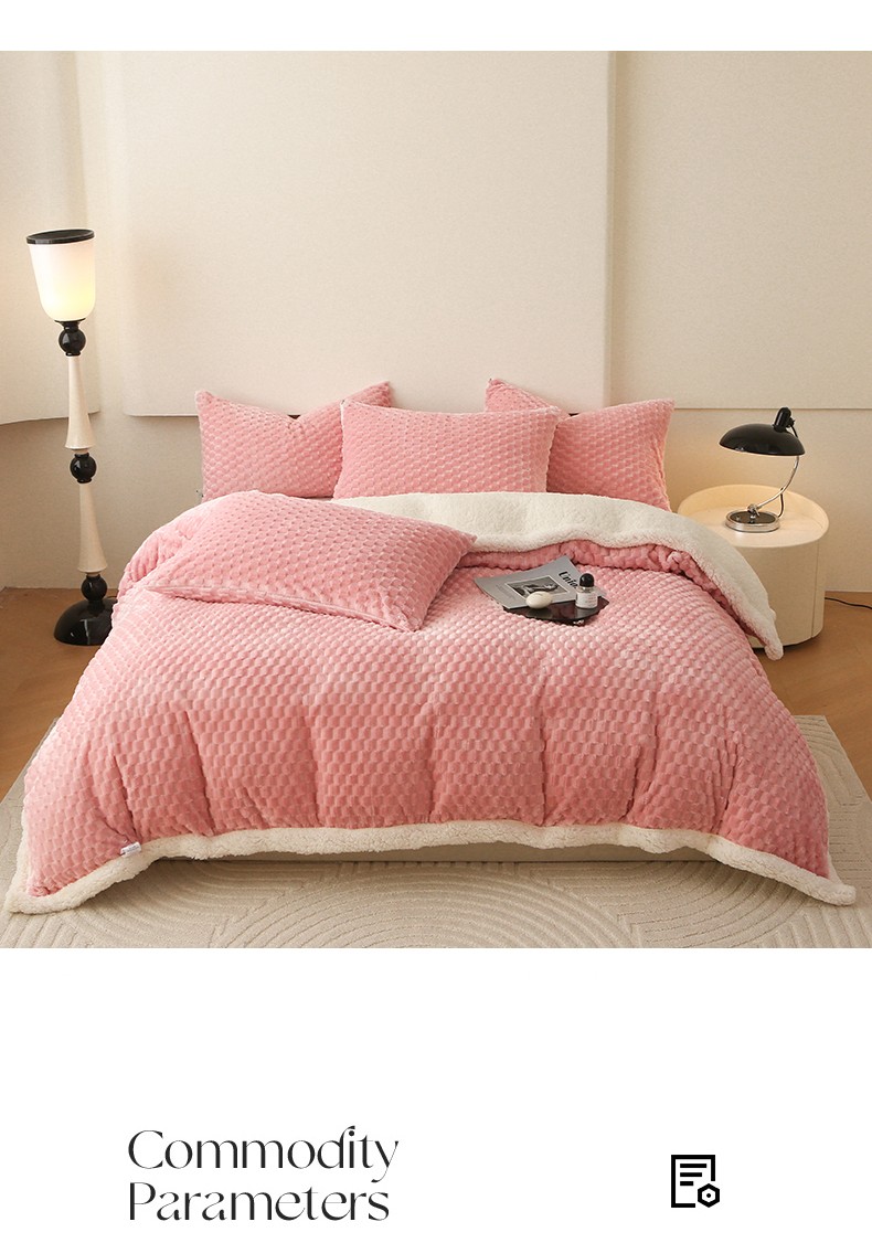 (总)网客家纺 2025新款羊毛绒牛奶绒夹棉床盖四件套,豹点-深灰,简格-黑色,简格-咖色,空间-红色,泥点-灰色,泥点-咖色,维奥-灰色,斜格-灰色,斜格-墨绿