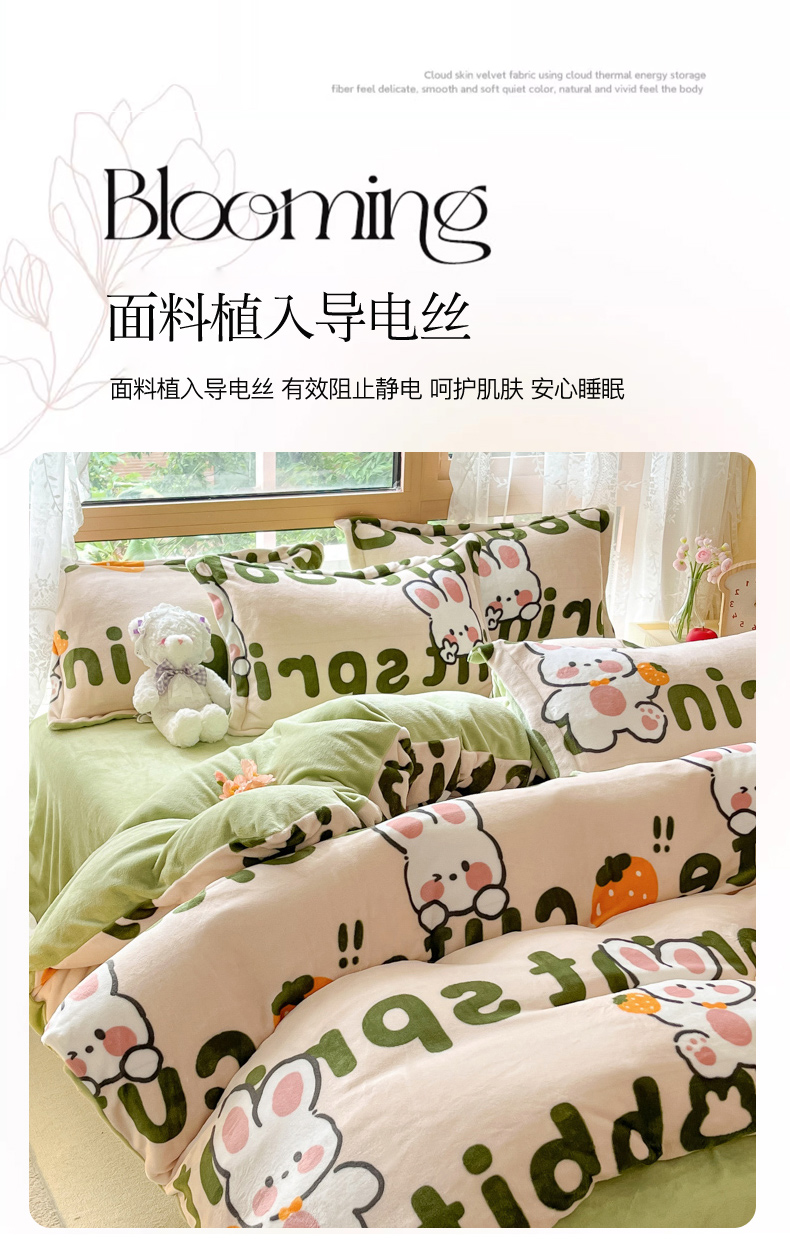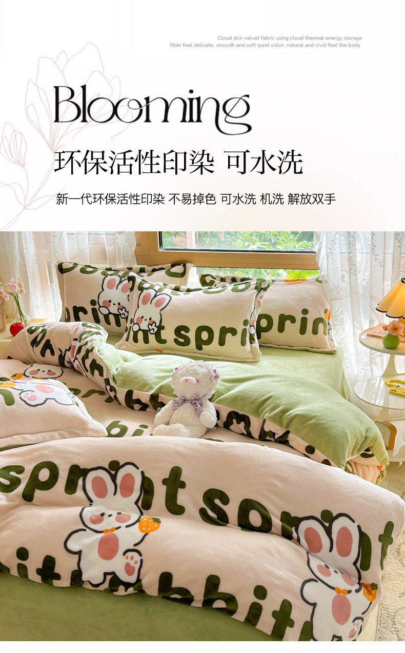 当前位置: 91家纺网 > 商品网购 > 床品套件 > 四件套 > 牛奶绒四件套 > 慕澄家纺 2023新款小清新牛奶绒印花四件套 嗨皮兔