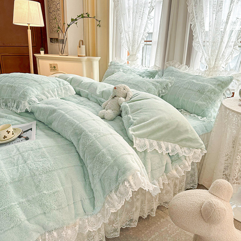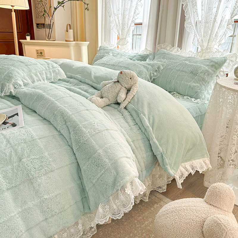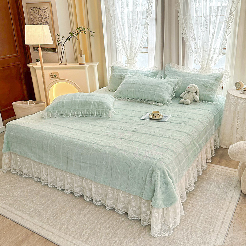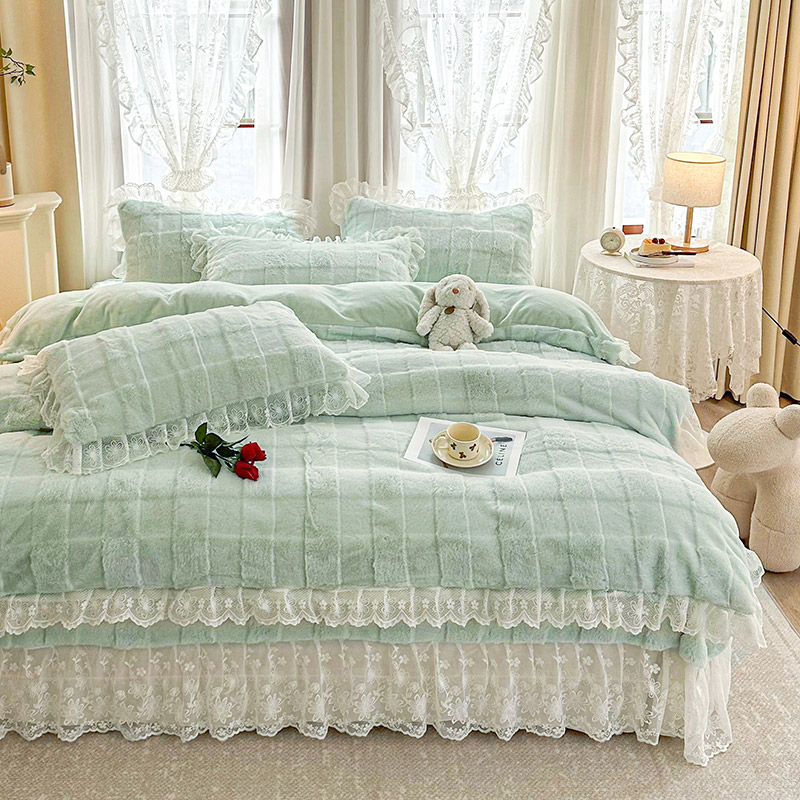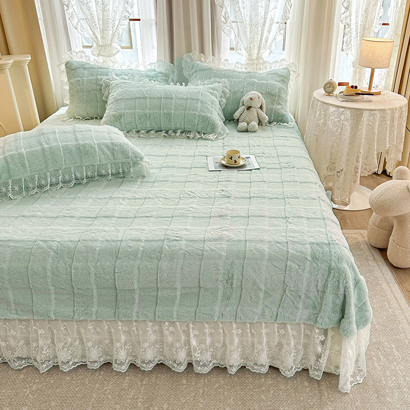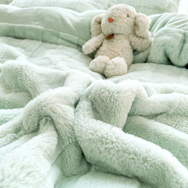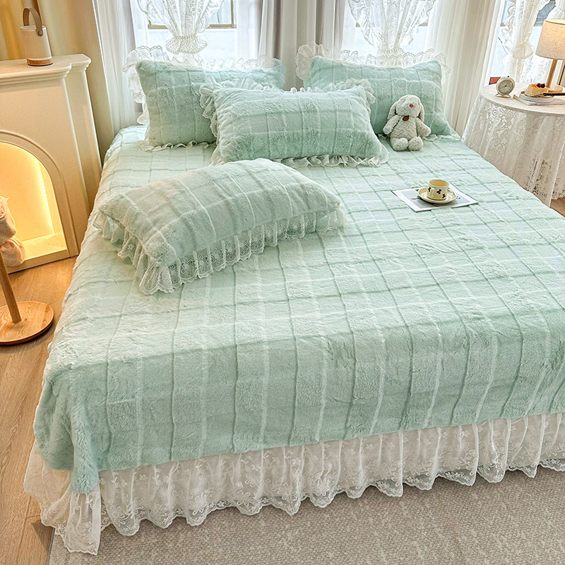当前位置: 91家纺网 > 商品网购 > 床品套件 > 四件套 > 全棉普通四件套 > 宜凡家纺 2023新款宜凡-高克重兔绒牛奶绒床盖四件套 方格纹-天青色