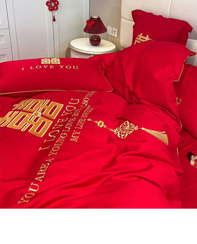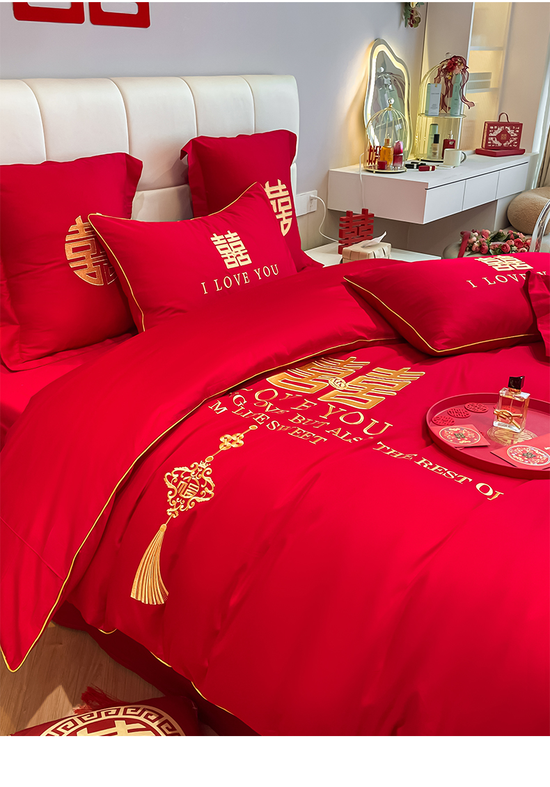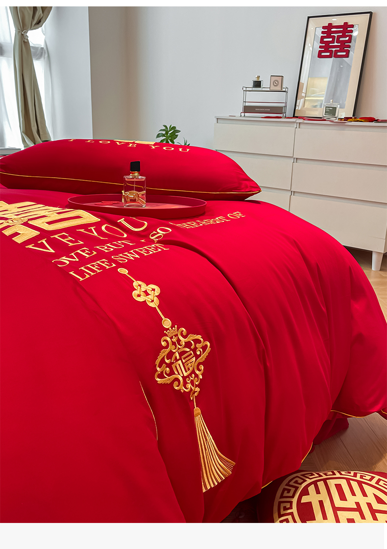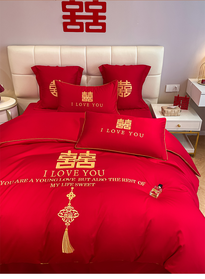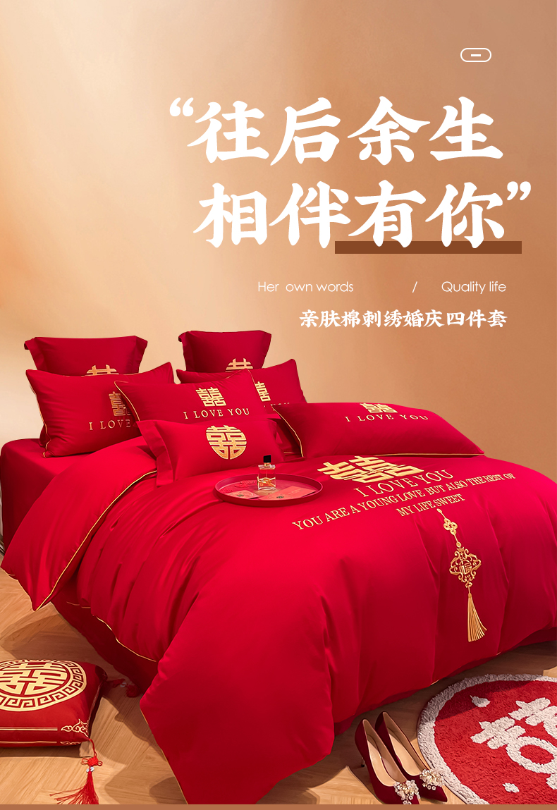 当前位置: 91家纺网 > 商品网购 > 床品套件 > 四件套 > 长绒棉四件套 > 欧乐蒂 2025新款亲肤棉刺绣婚庆四件套 今生今世