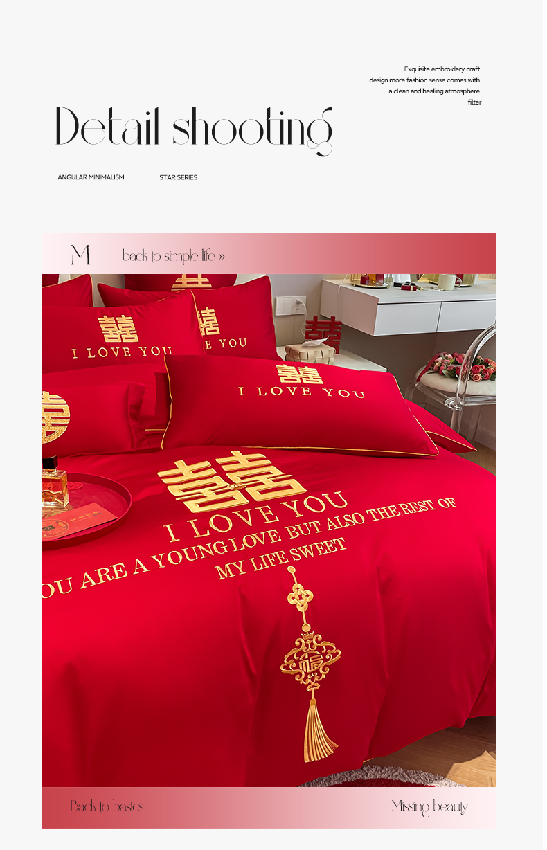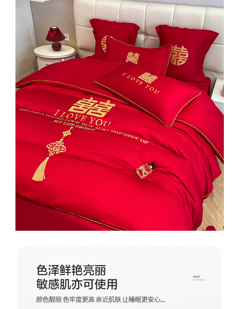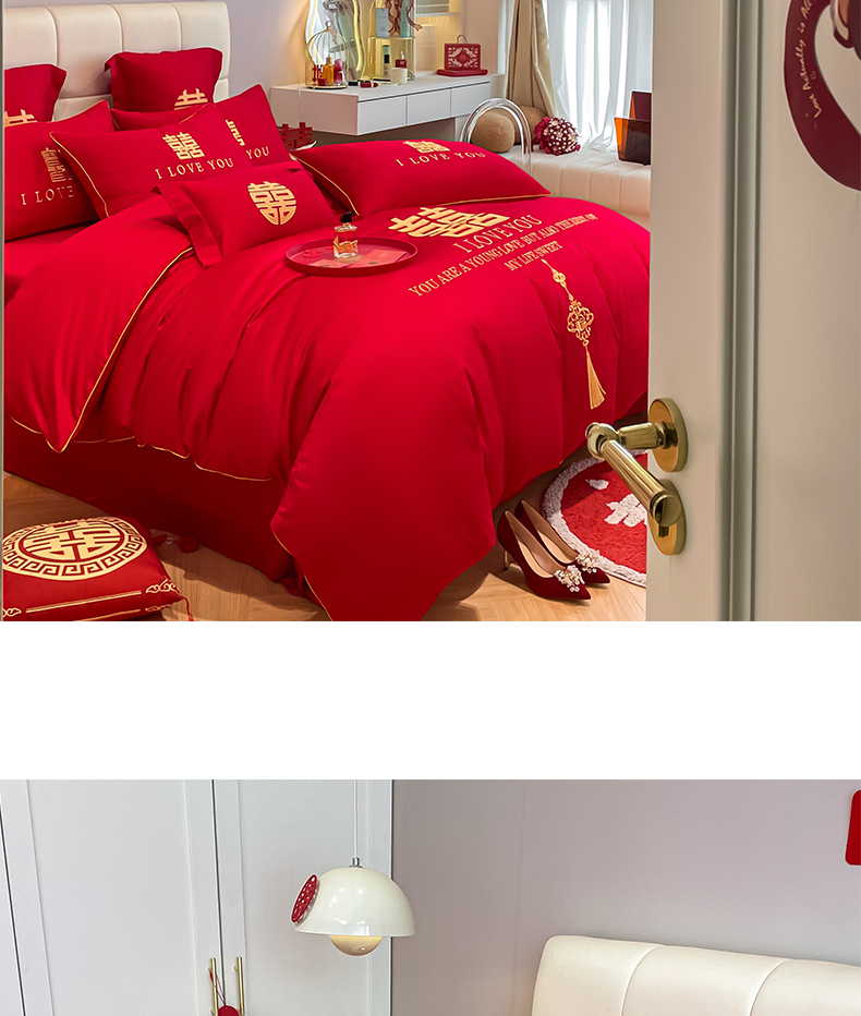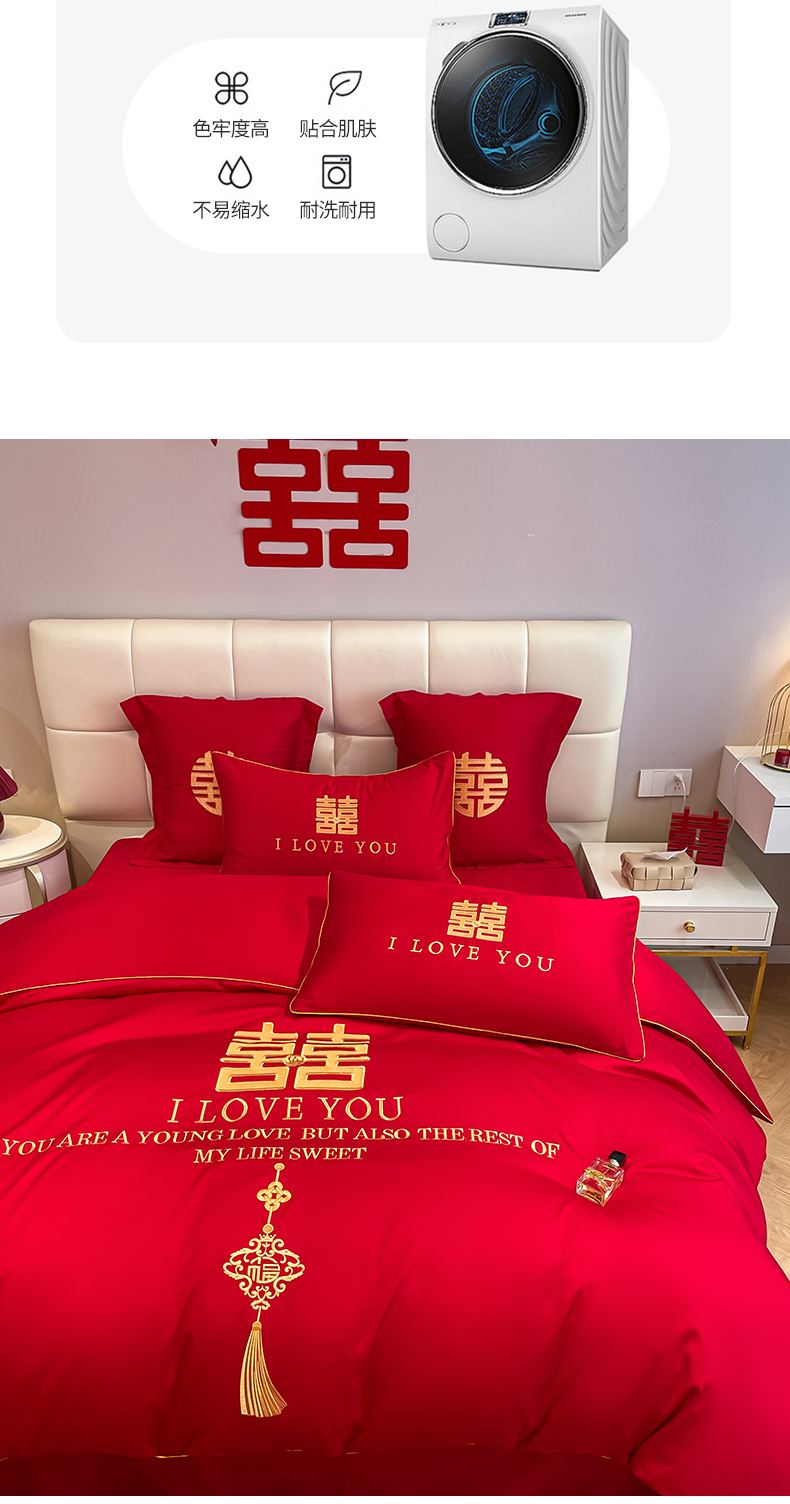 当前位置: 91家纺网 > 商品网购 > 床品套件 > 四件套 > 长绒棉四件套 > 欧乐蒂 2025新款亲肤棉刺绣婚庆四件套 今生今世