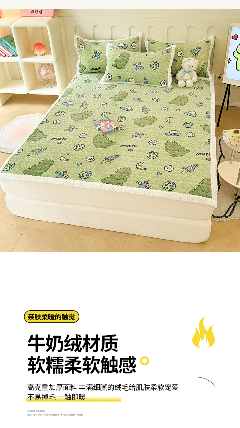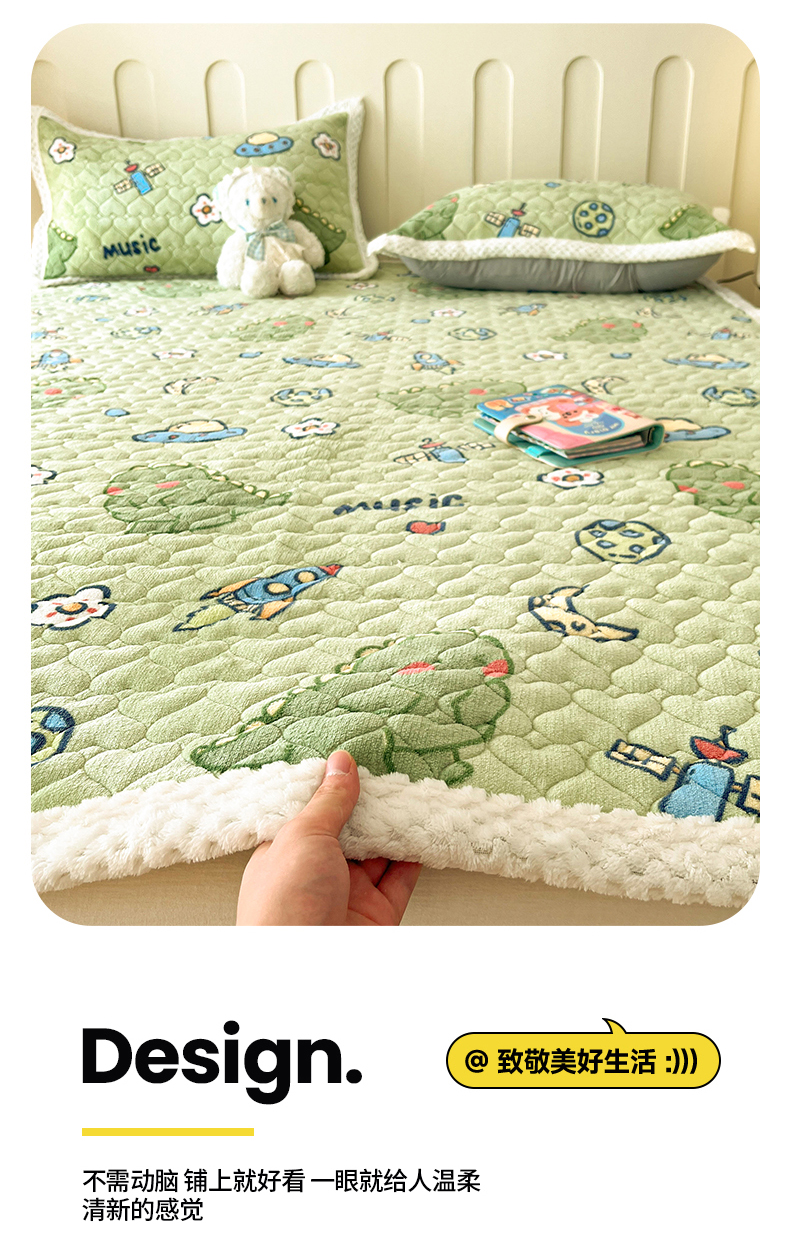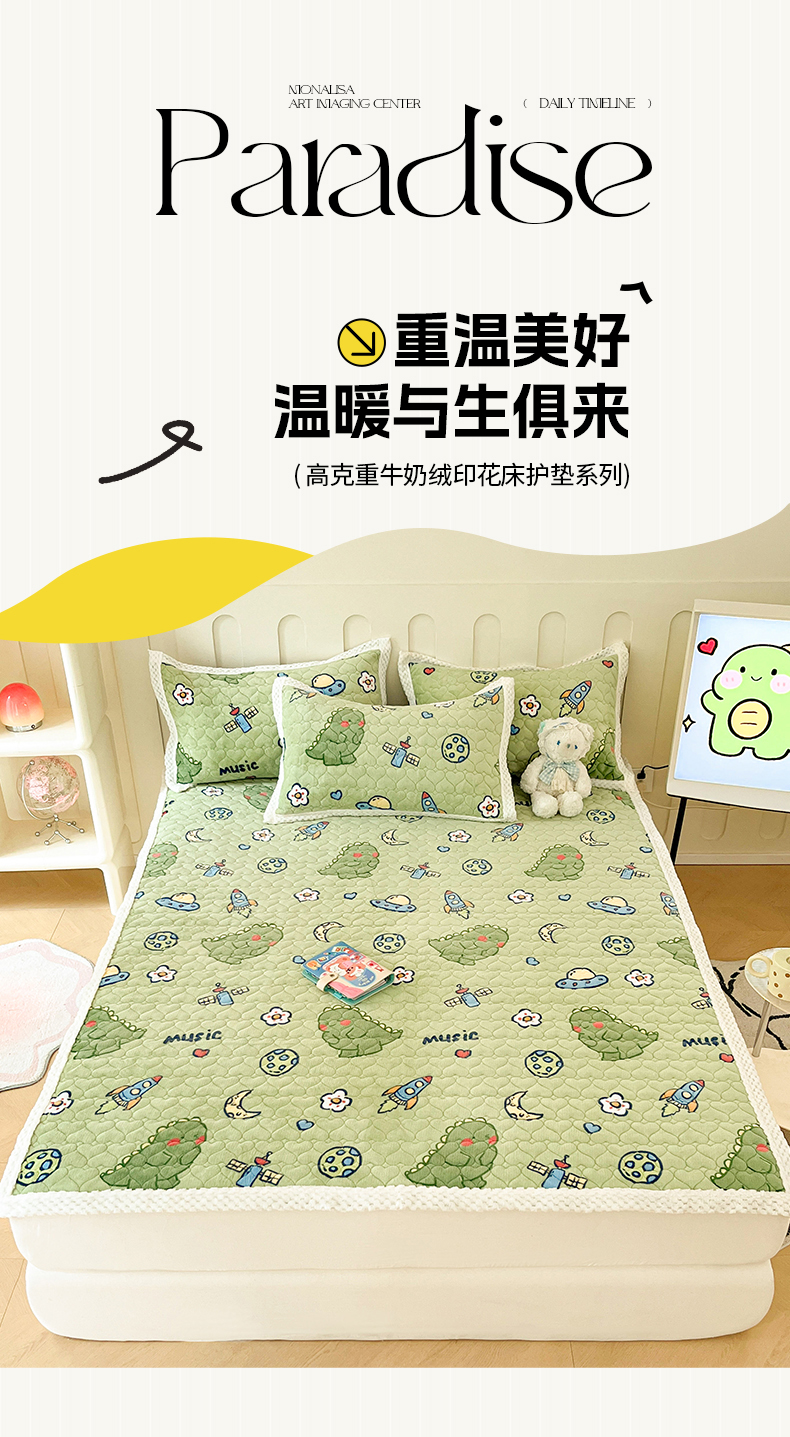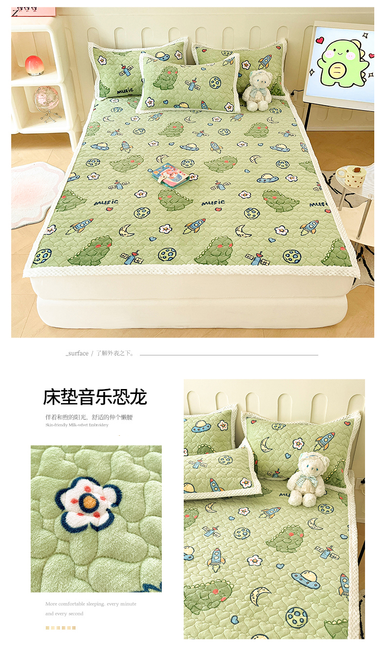 商品名称:川悦生活 2023新款A类印花牛奶绒床垫加厚绒保暖床护垫 音乐恐龙