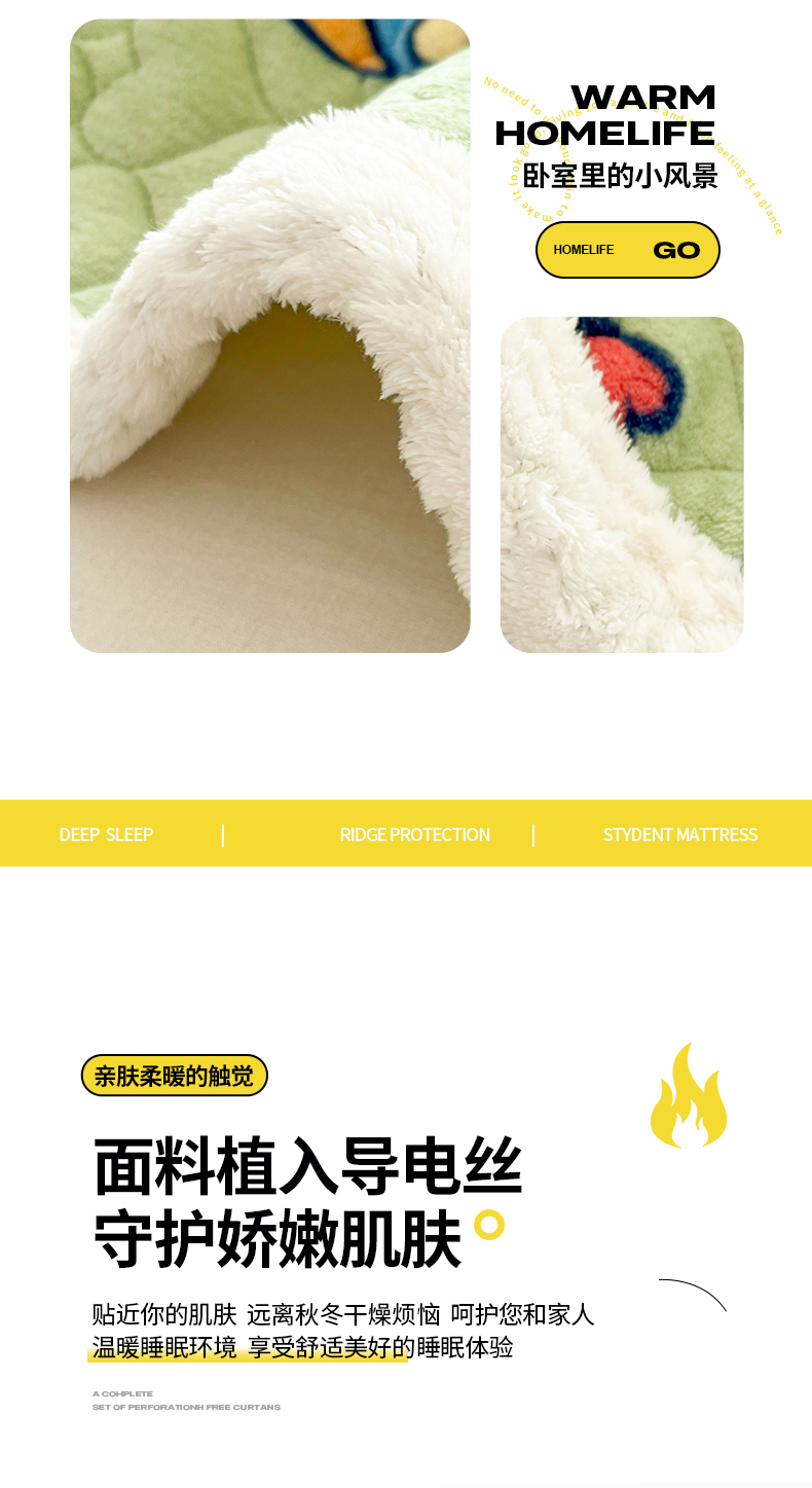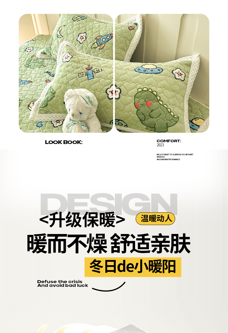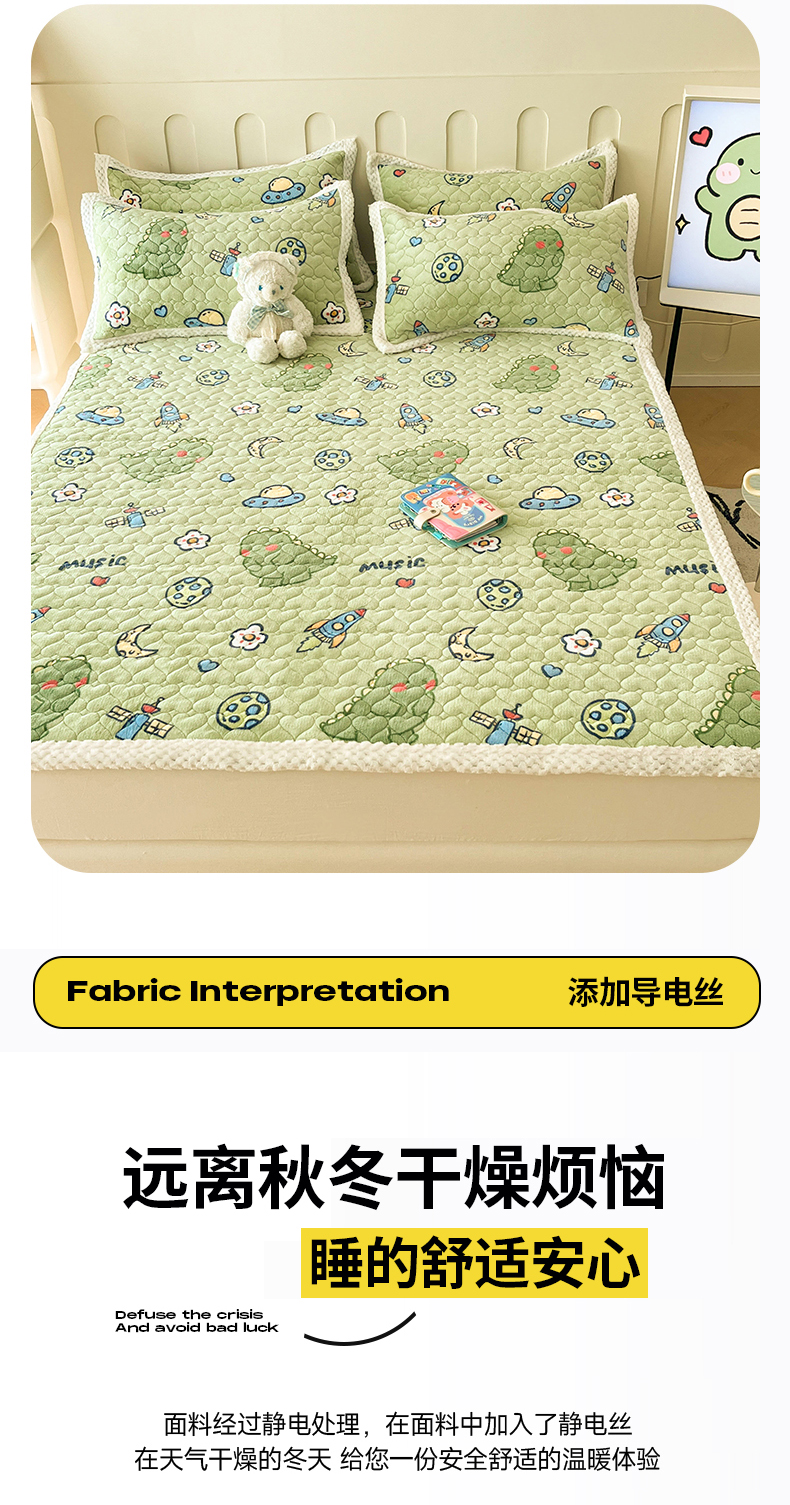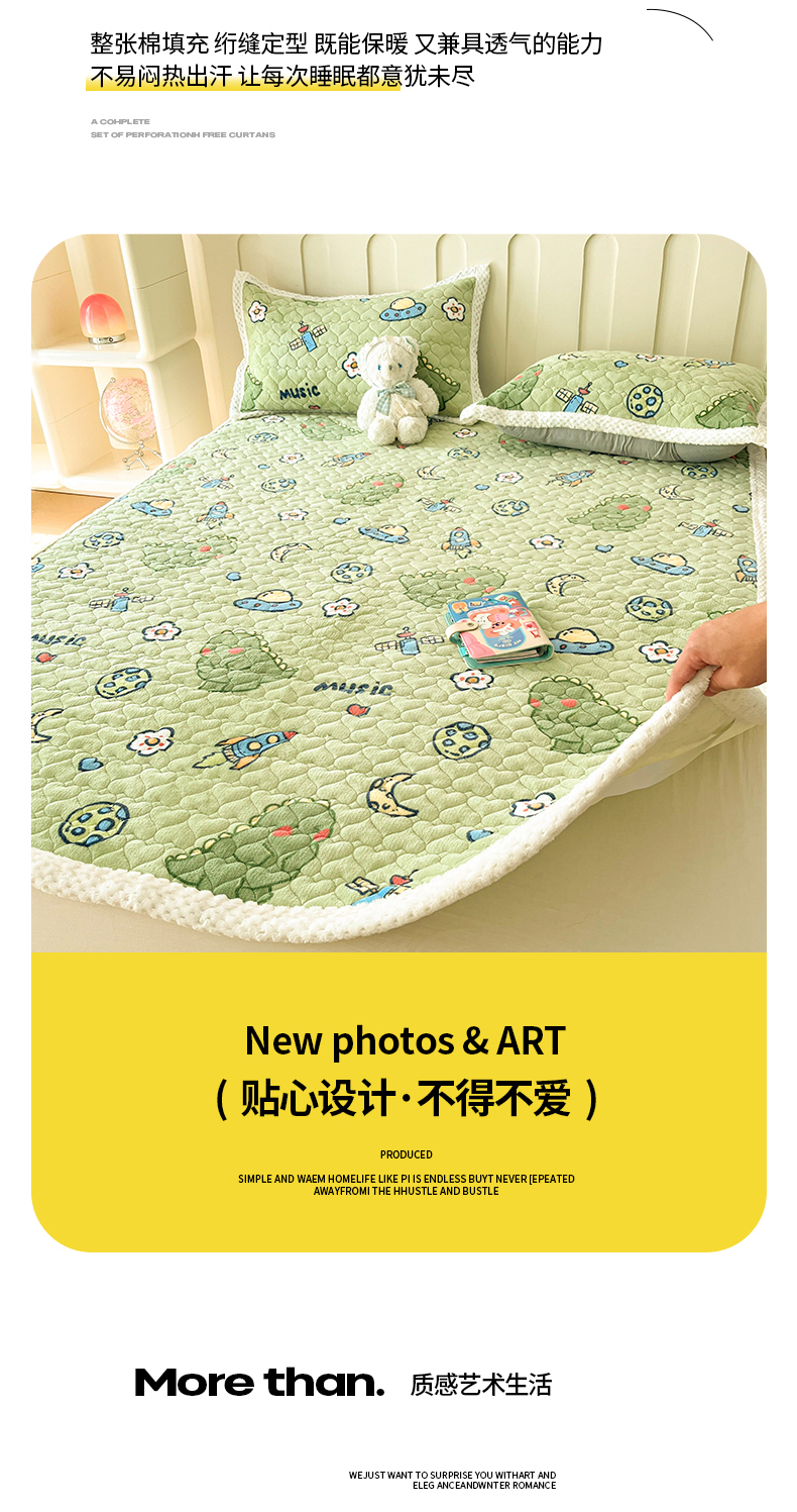 商品名称:川悦生活 2023新款A类印花牛奶绒床垫加厚绒保暖床护垫 音乐恐龙