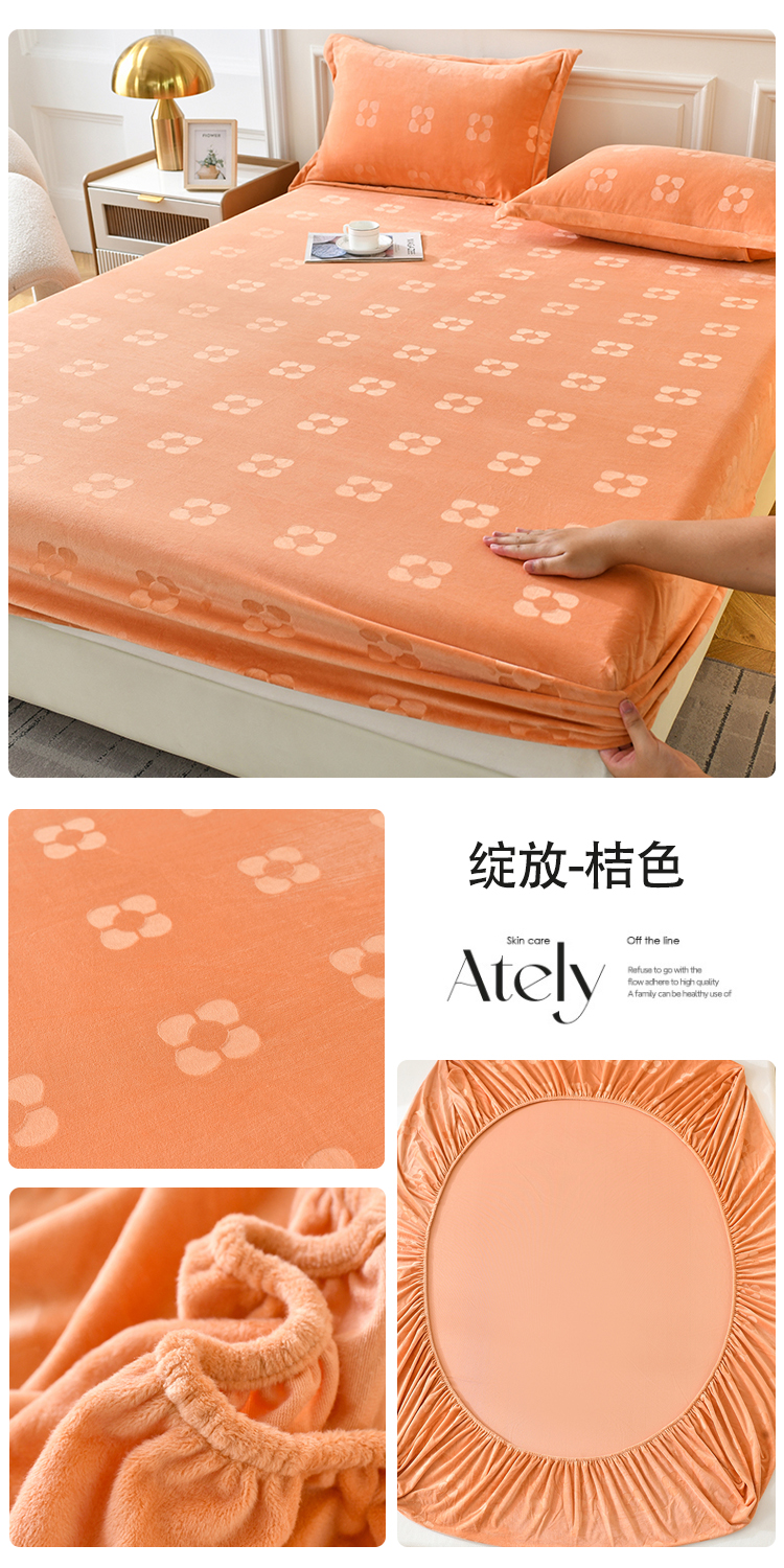 家贝爱 2023新款剪花绒床笠 绽放-桔色