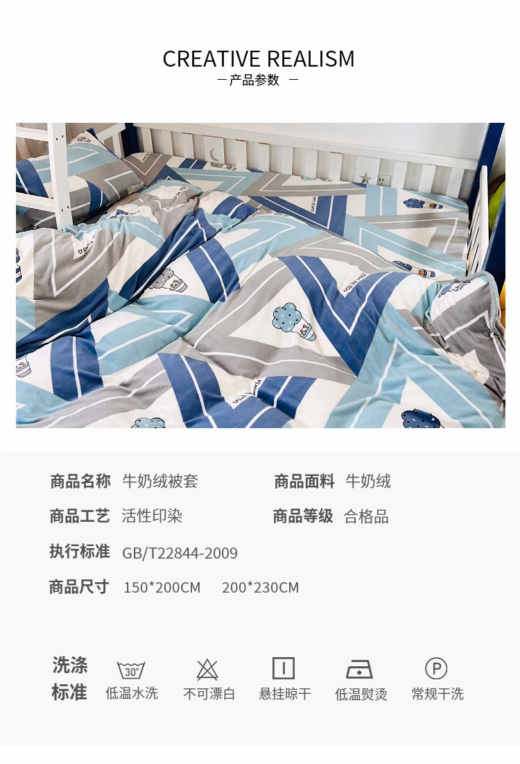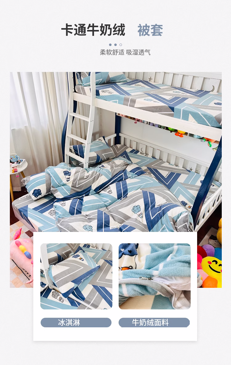 当前位置: 91家纺网 > 商品网购 > 床上用品 > 被套 > 小虾米 2023新款上下床加厚牛奶绒被套 冰淇淋