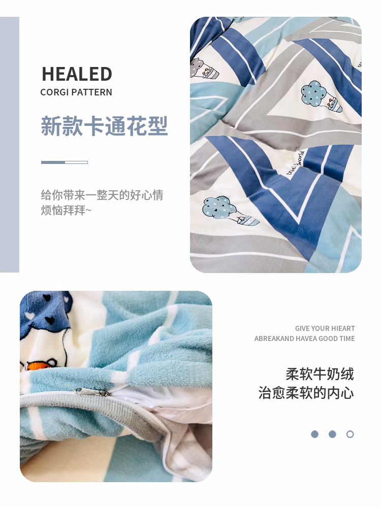 • 91家纺网 家纺一手货源 找家纺 小虾米 2023新款上下床加厚牛奶绒被套 冰淇淋