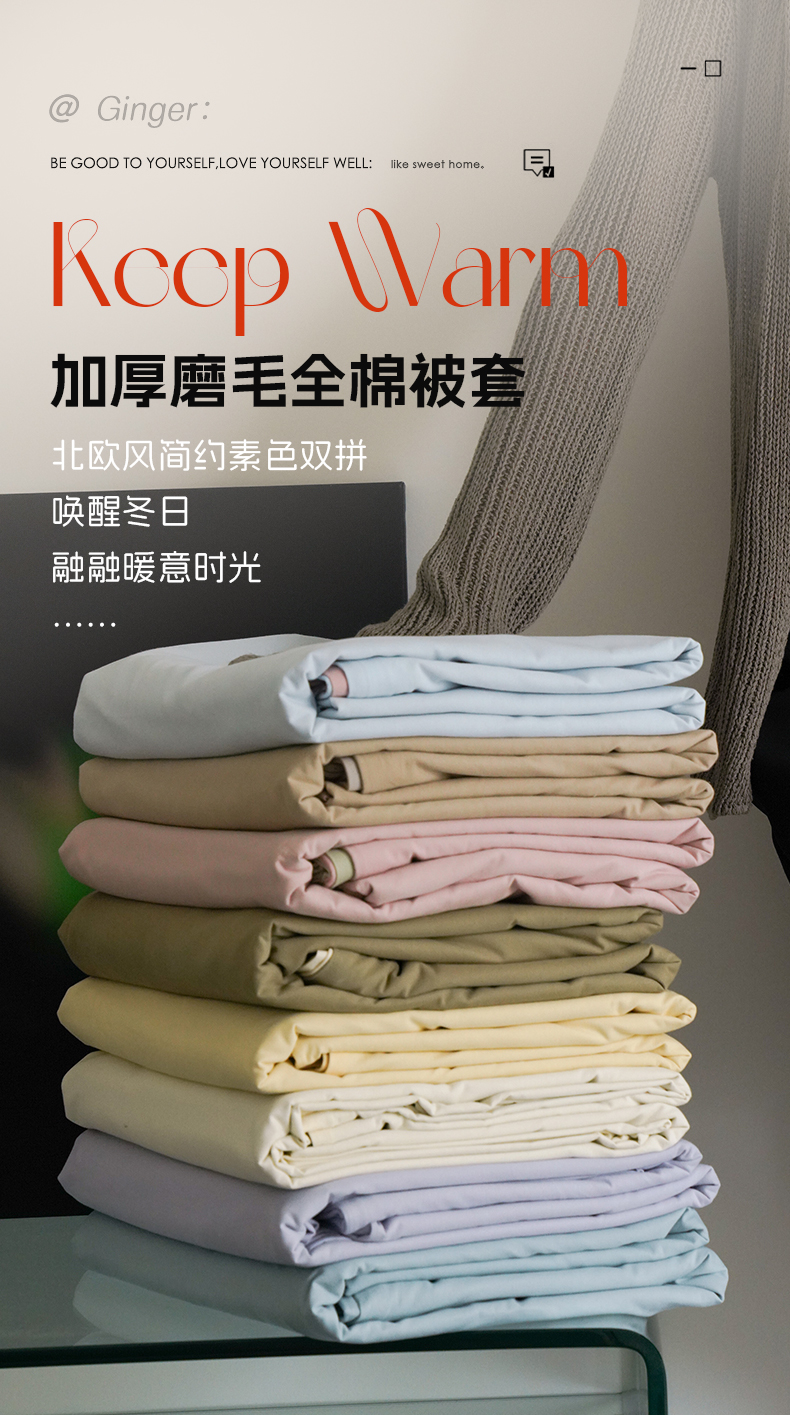 (总)时光里 2023新款双拼纯色磨毛系列单品被套