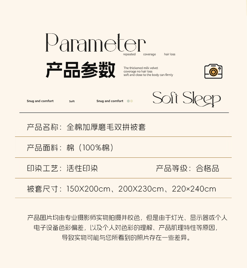 商品名称:(总)时光里 2023新款双拼纯色磨毛系列单品被套