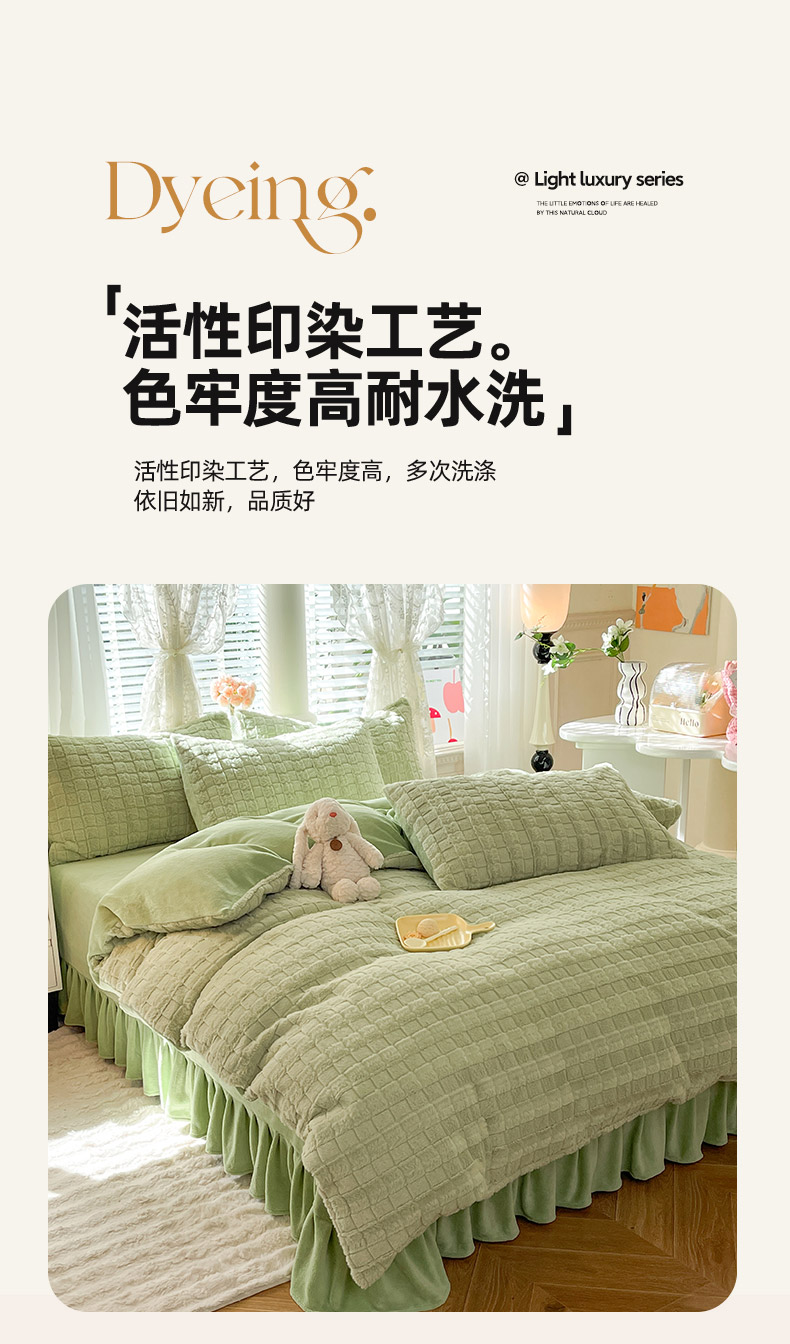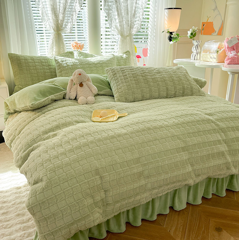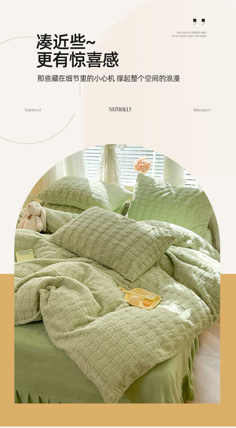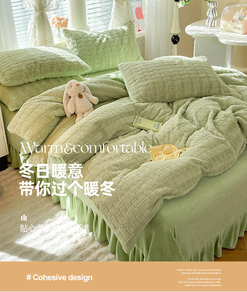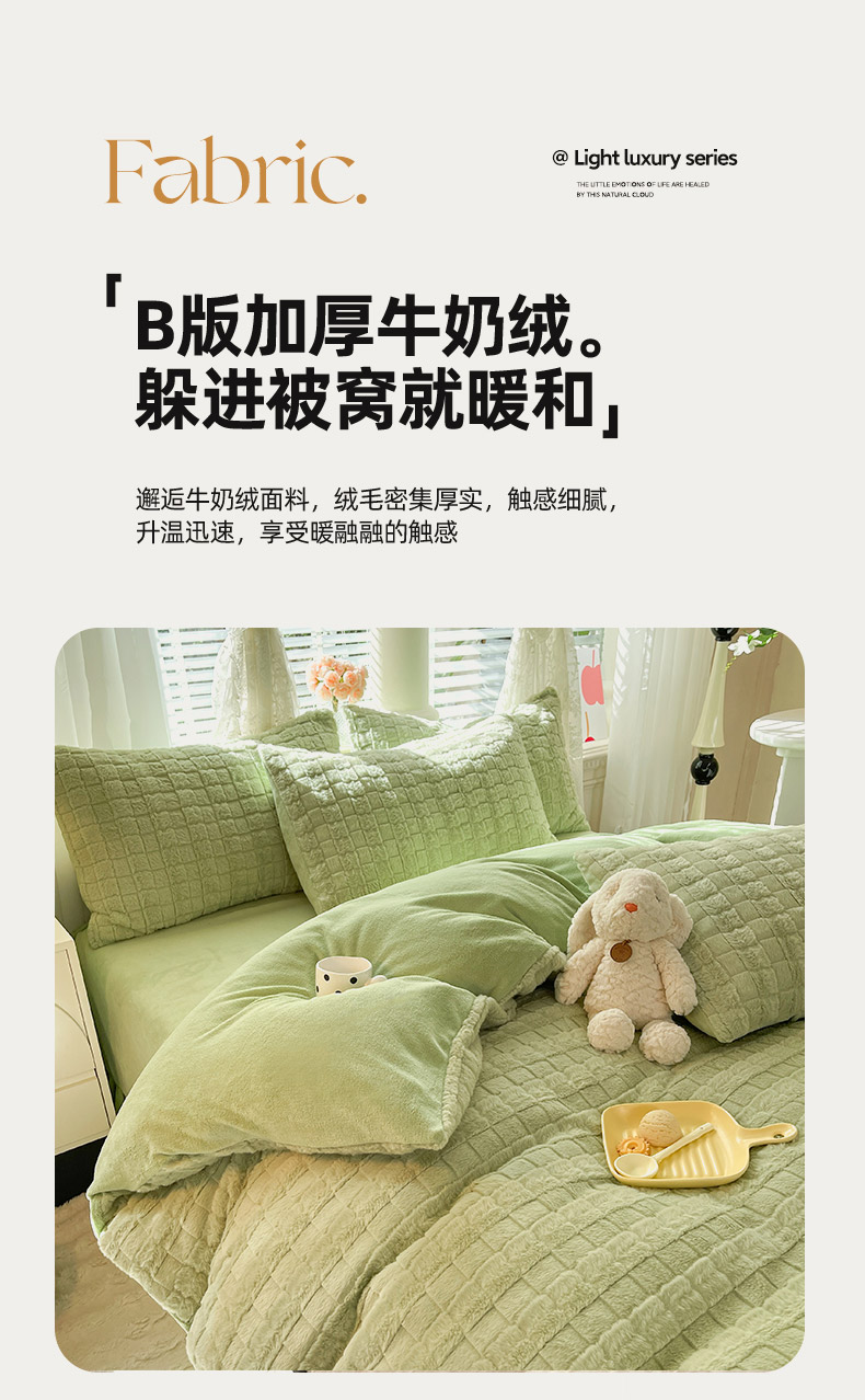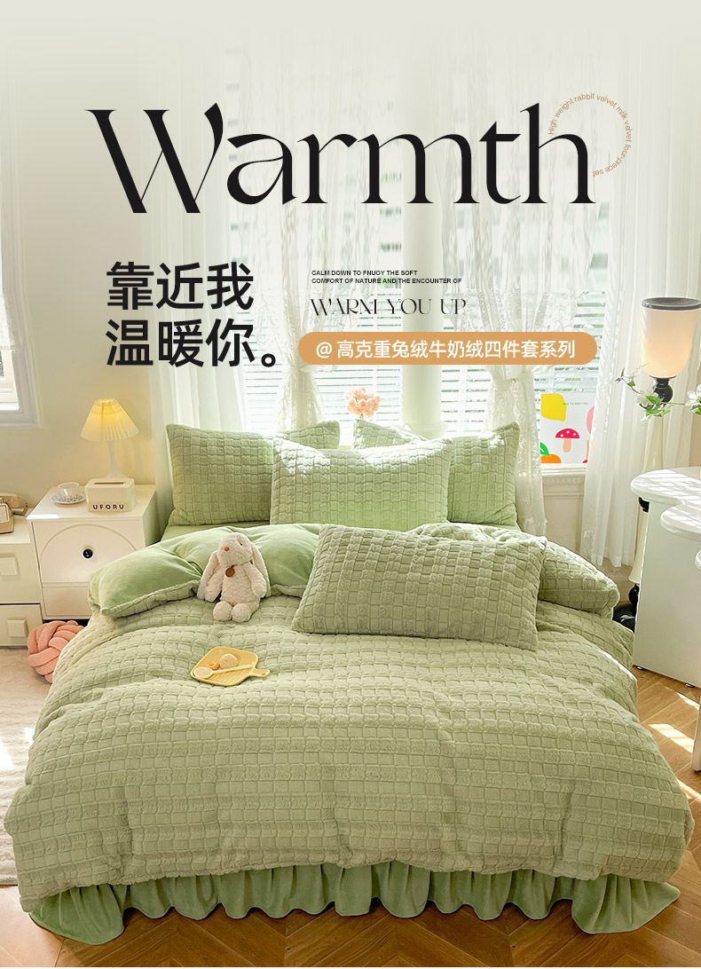 欧冠家纺 2023新款高克重兔绒牛奶绒四件套 抹茶绿