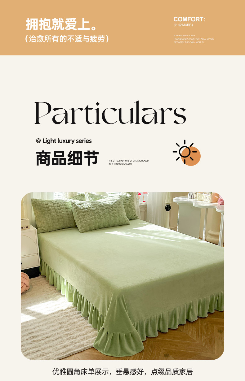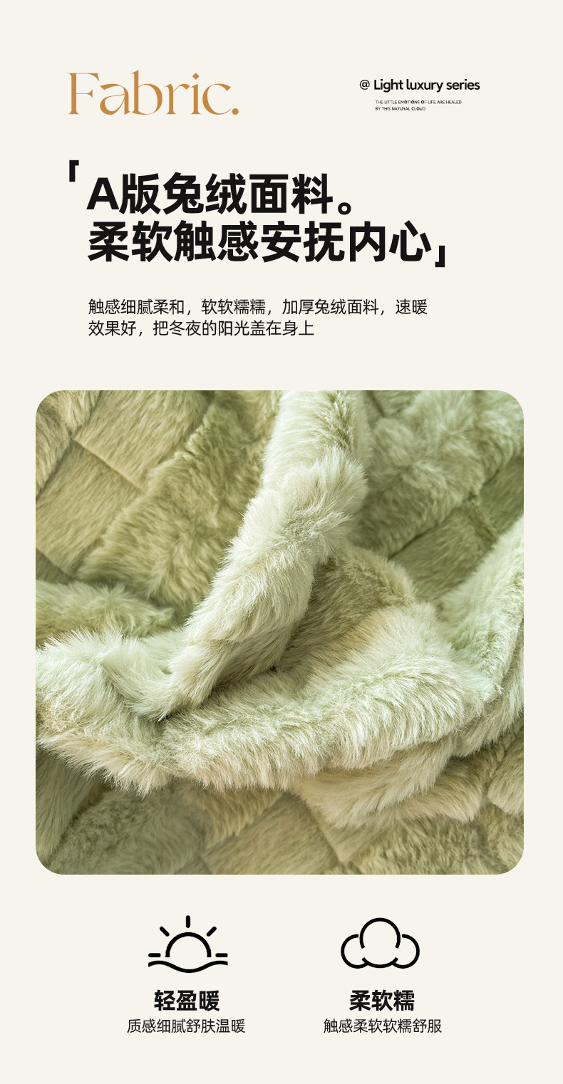 商品名称:欧冠家纺 2023新款高克重兔绒牛奶绒四件套 抹茶绿
