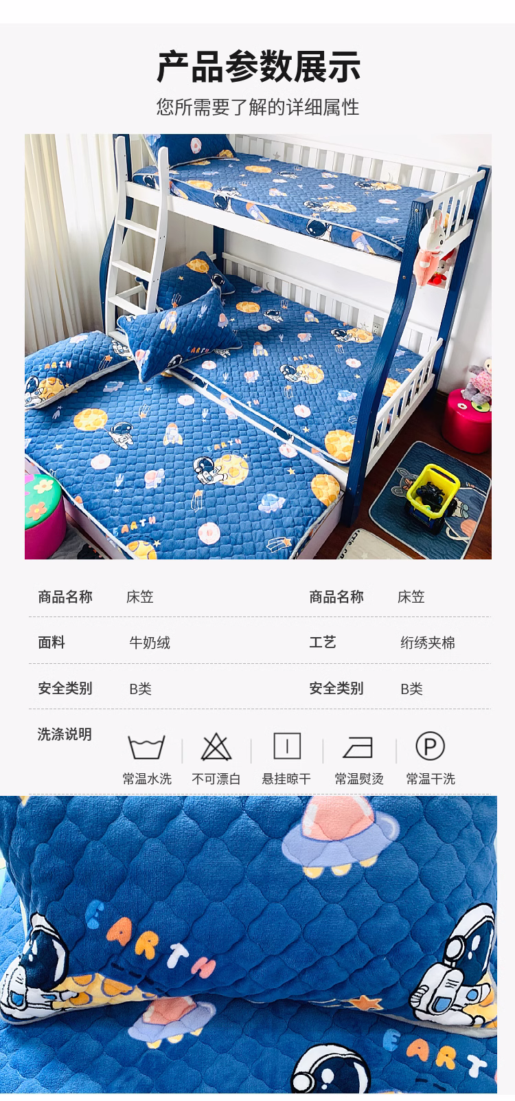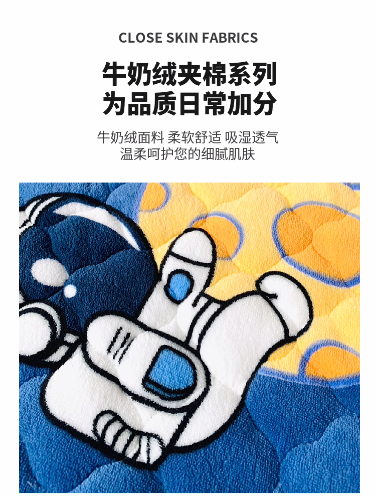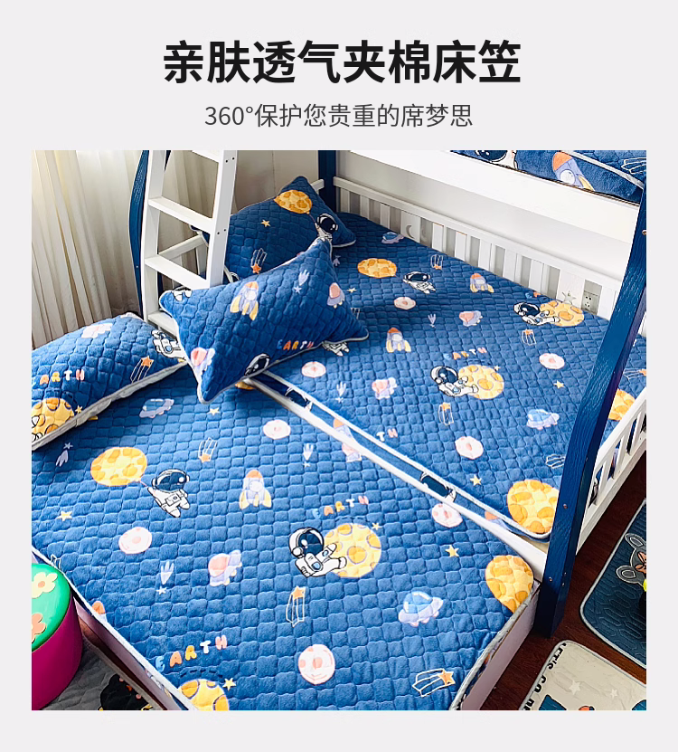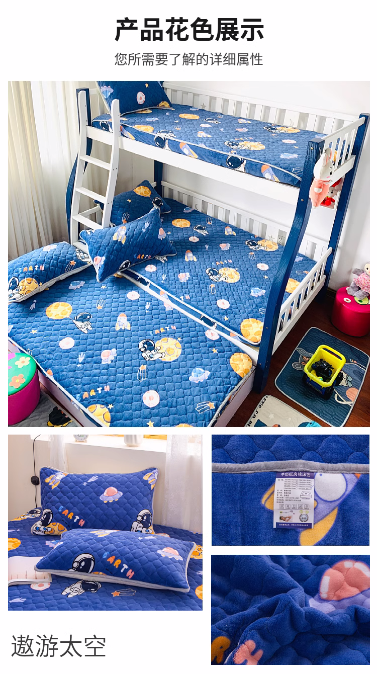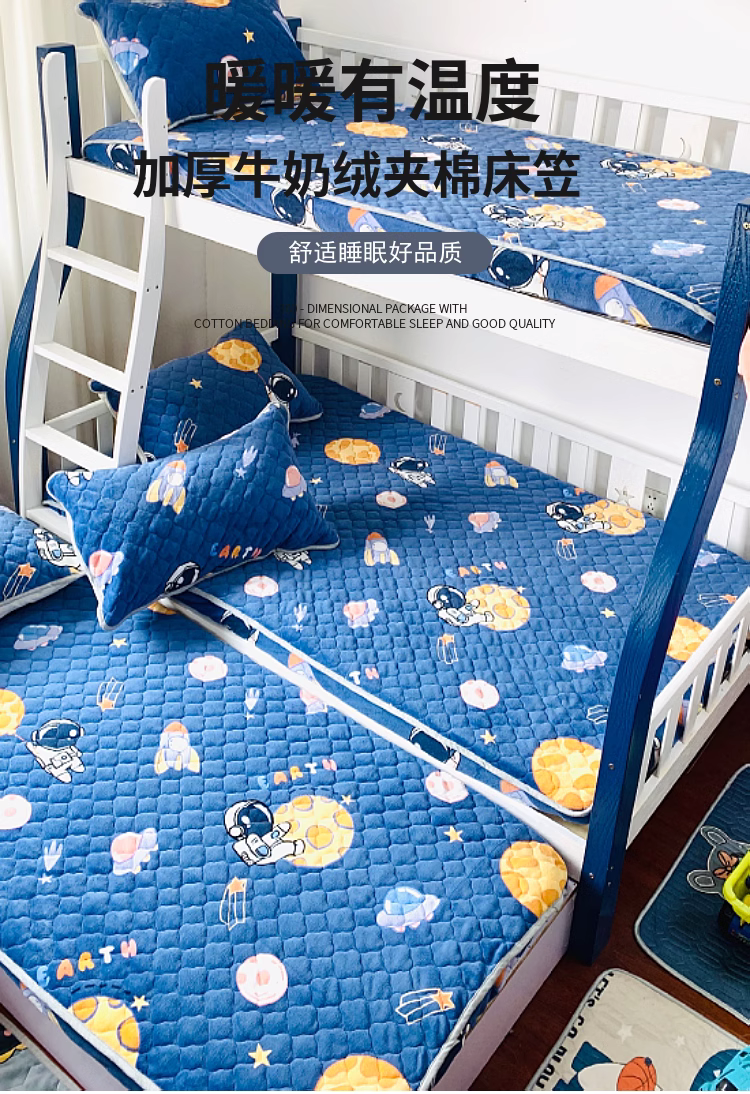 • 91家纺网 家纺一手货源 找家纺 小虾米 2023新款上下床加厚牛奶绒夹棉床笠 遨游太空