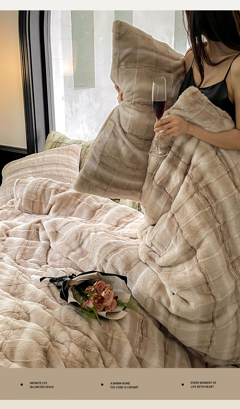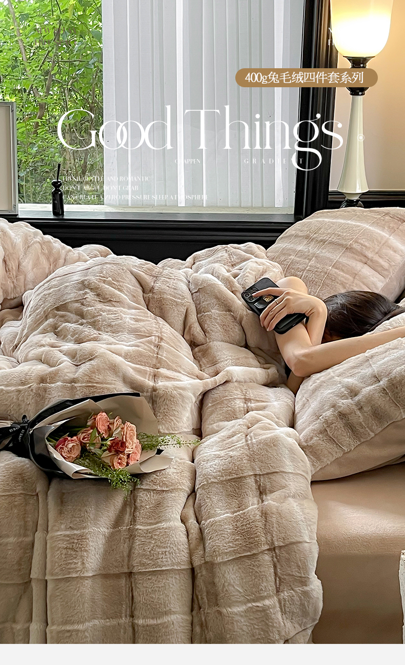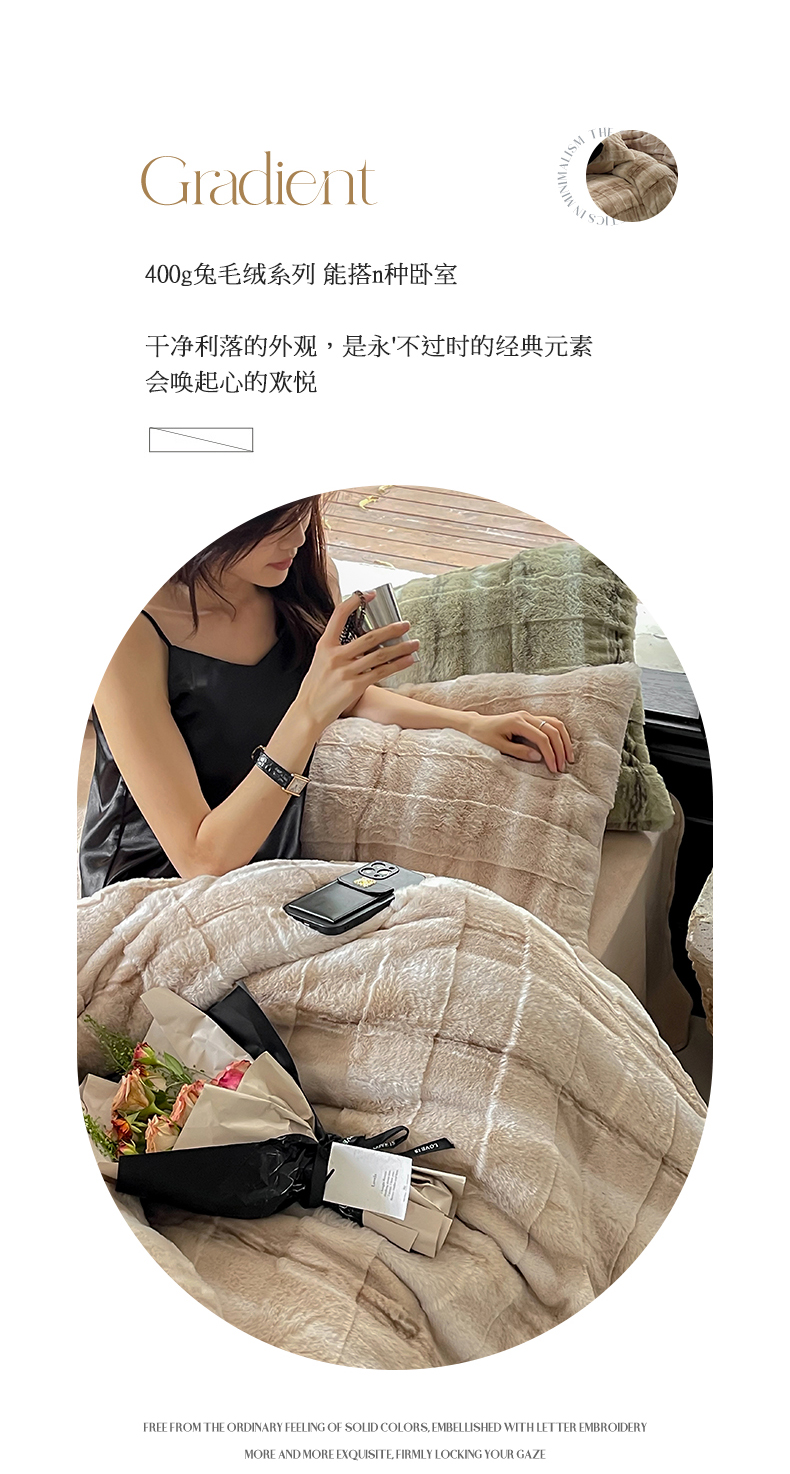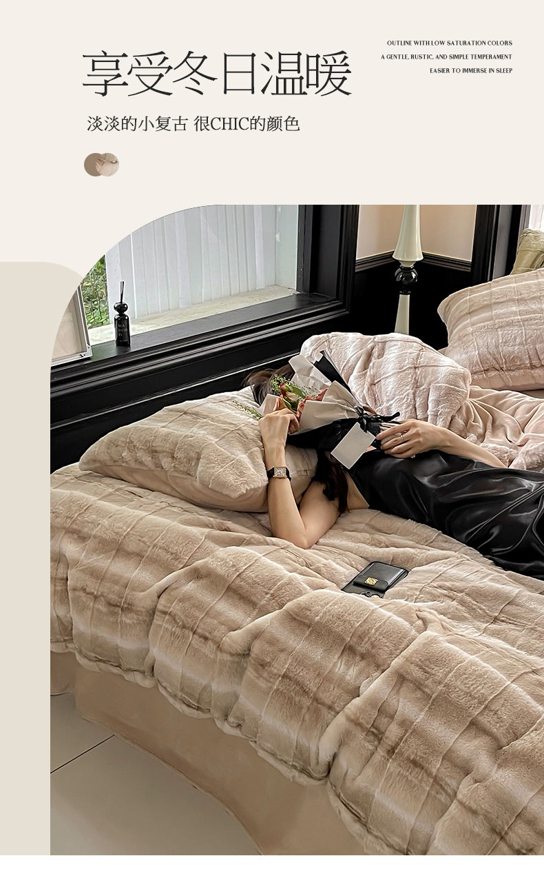 名品优仓 2023新款400g兔毛绒四件套-维也纳 奶咖