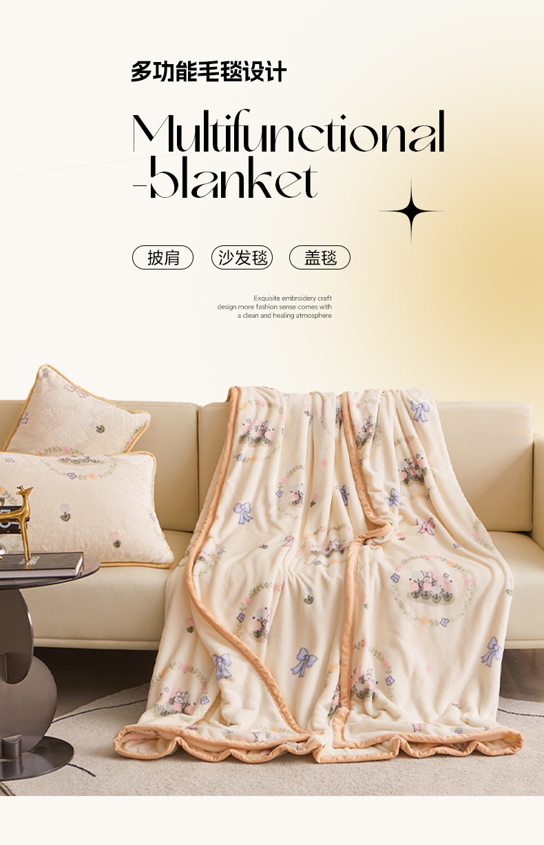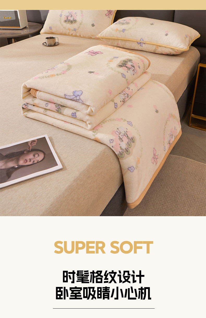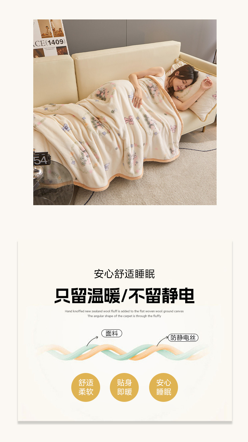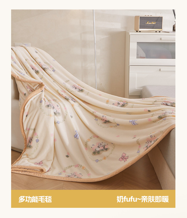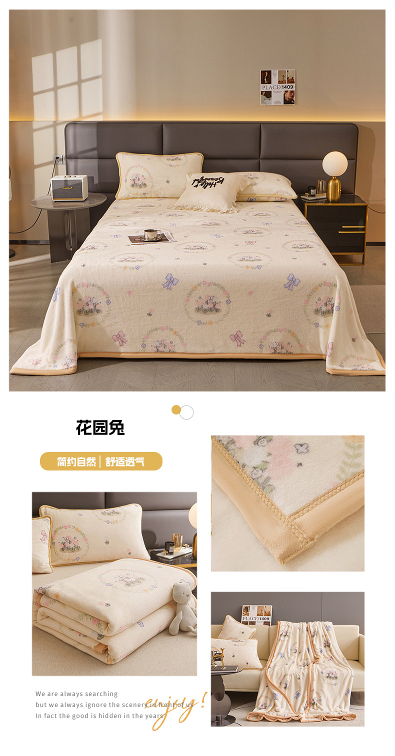 当前位置: 91家纺网 > 商品网购 > 毛毯休闲毯绒毯 > 毛毯 > 古吉梦 2023新款A类双面小清新系列牛奶绒毛毯 牛奶绒毯-花园兔