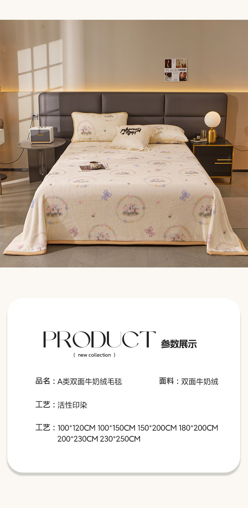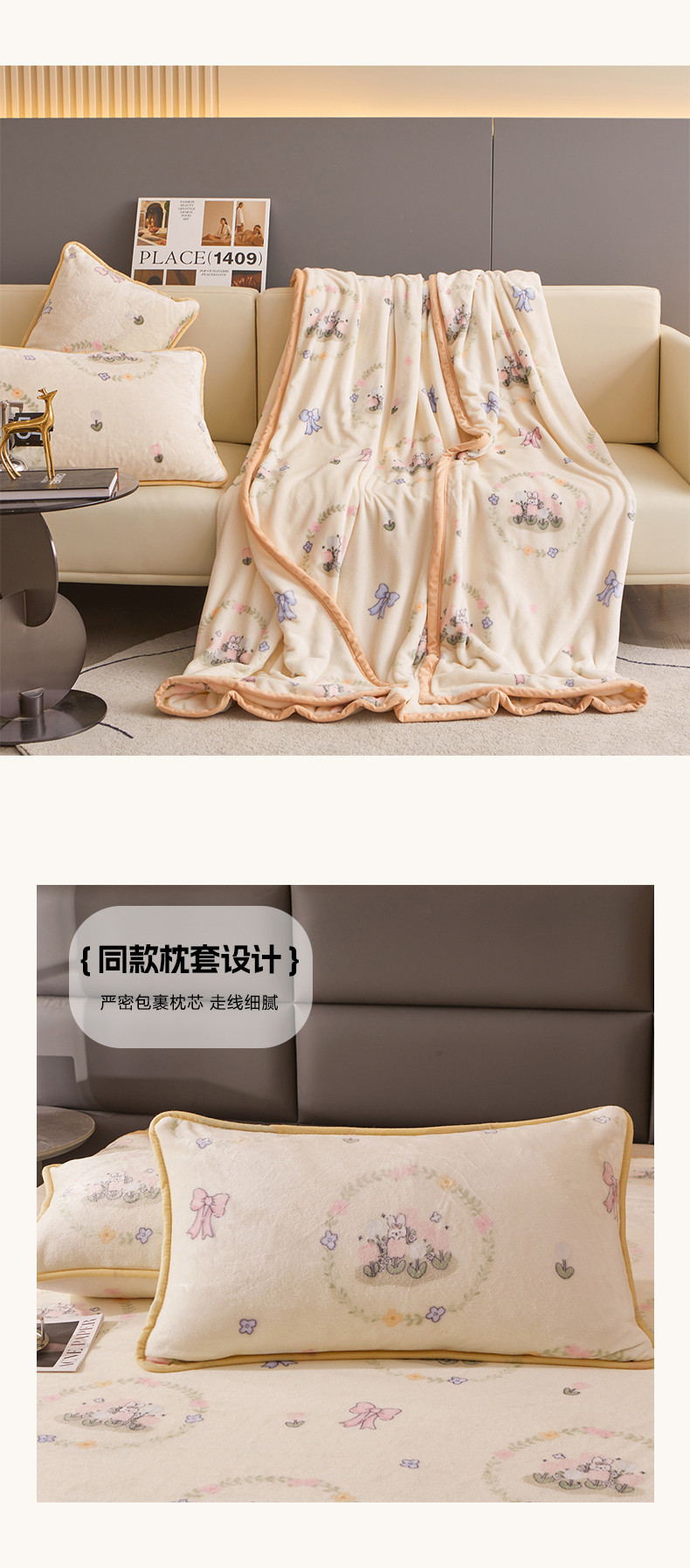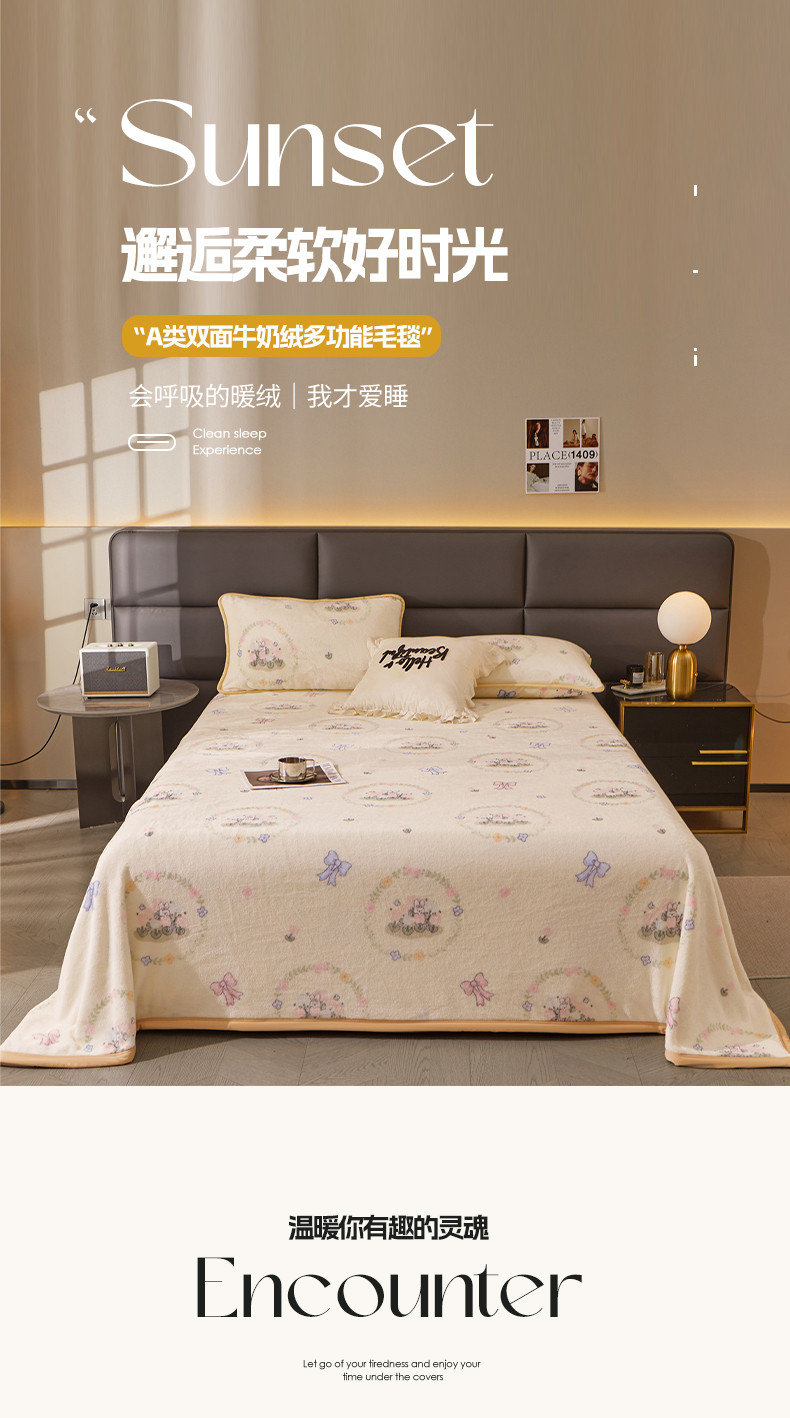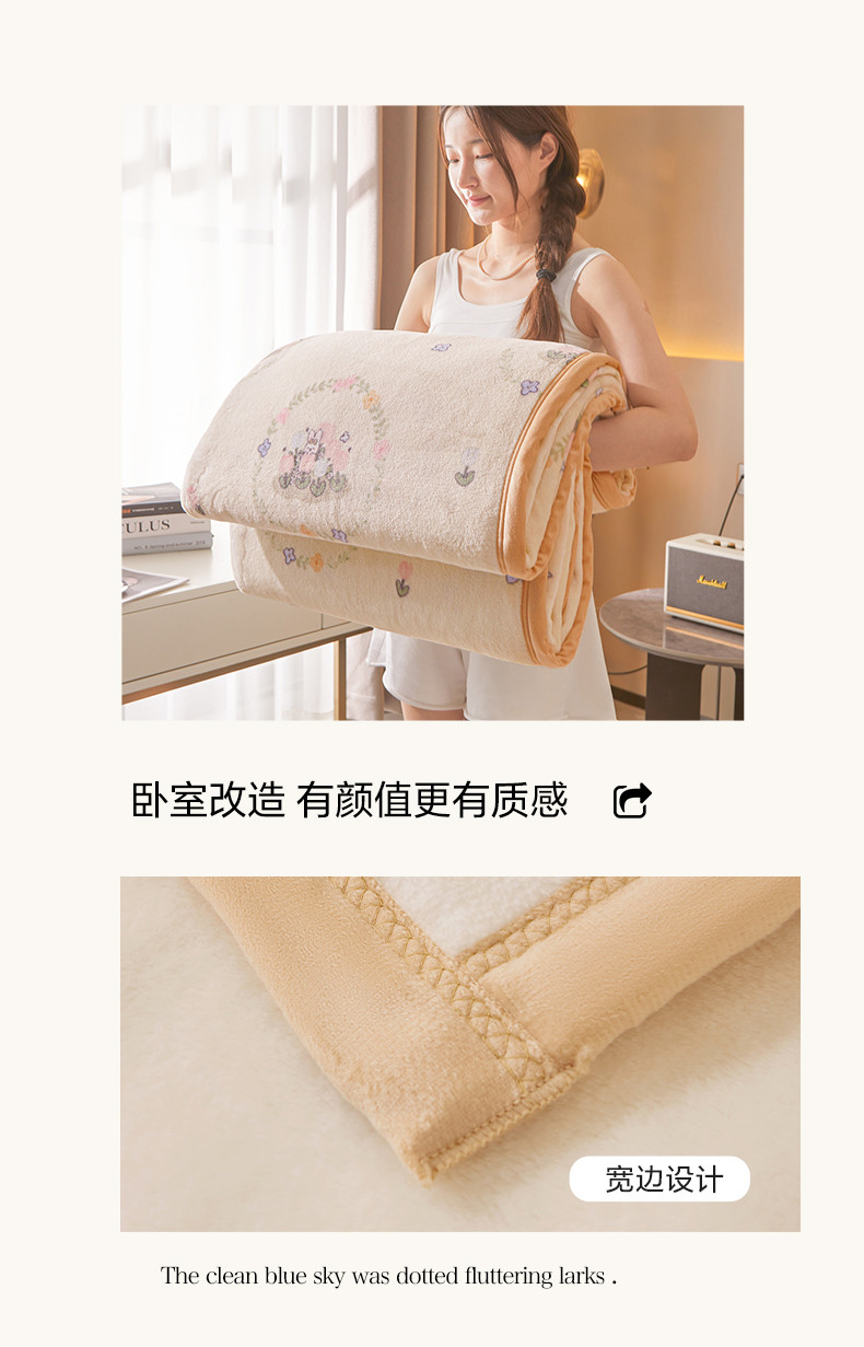 当前位置: 91家纺网 > 商品网购 > 毛毯休闲毯绒毯 > 毛毯 > 古吉梦 2023新款A类双面小清新系列牛奶绒毛毯 牛奶绒毯-花园兔