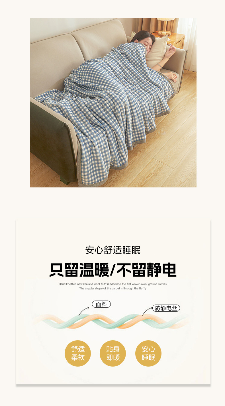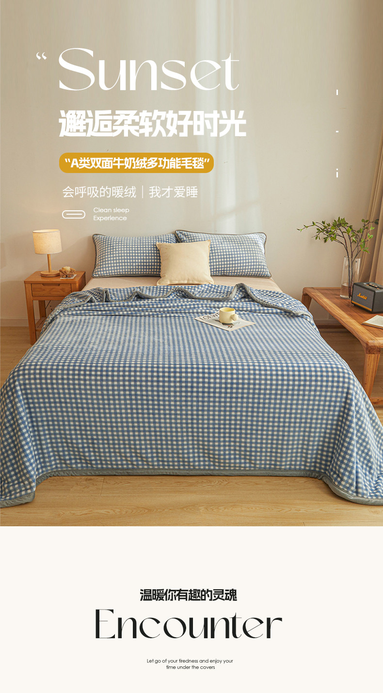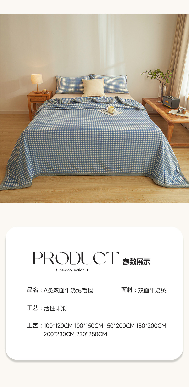 当前位置: 91家纺网 > 商品网购 > 毛毯休闲毯绒毯 > 毛毯 > 古吉梦 2023新款A类双面无印风牛奶绒毛毯 毛毯-蓝小格