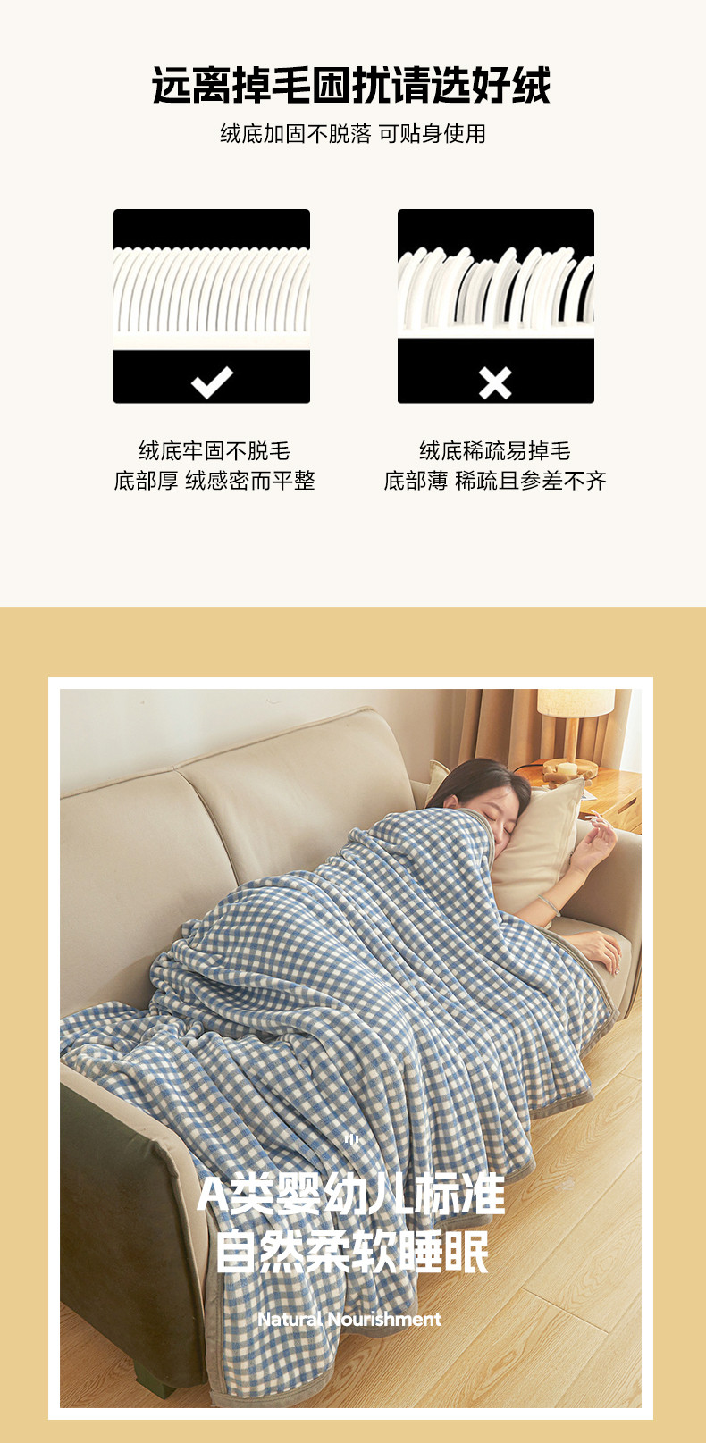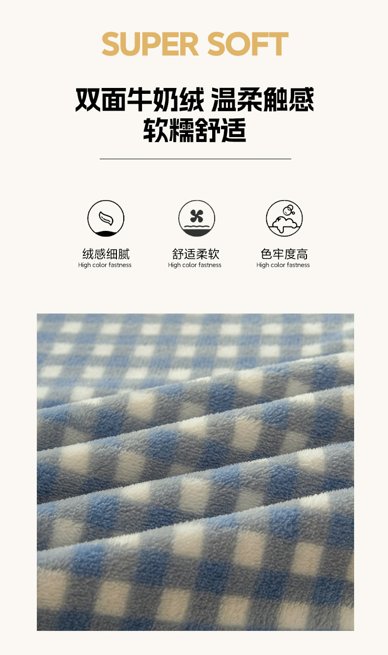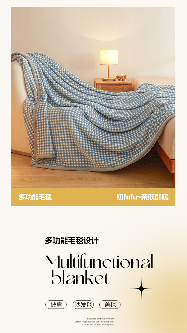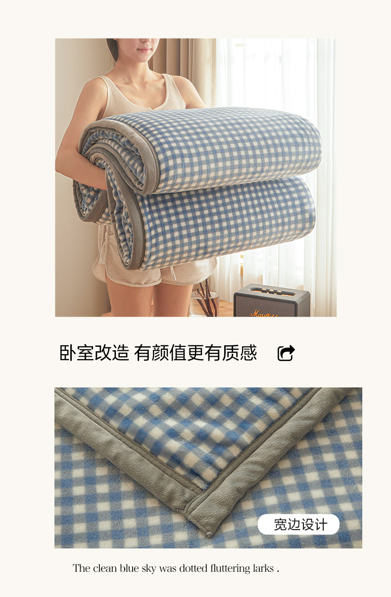 当前位置: 91家纺网 > 商品网购 > 毛毯休闲毯绒毯 > 毛毯 > 古吉梦 2023新款A类双面无印风牛奶绒毛毯 毛毯-蓝小格