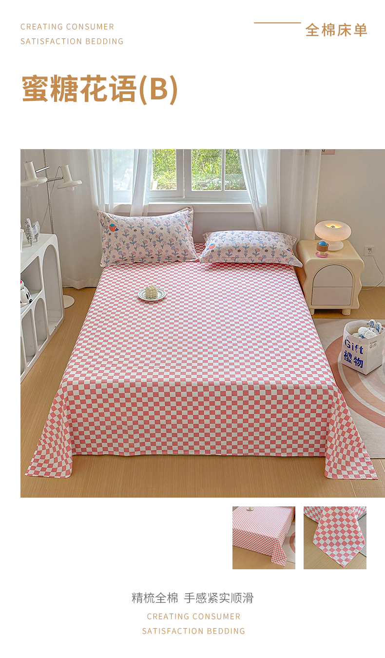 商品名称:元元被芯 2023新款全棉直角印花床单 【B版】蜜糖花语