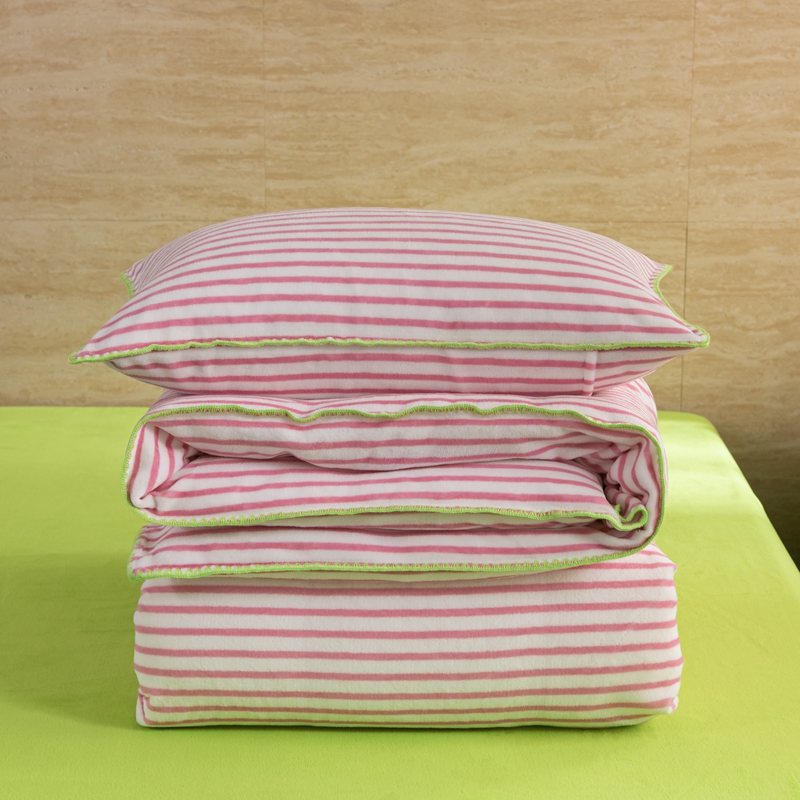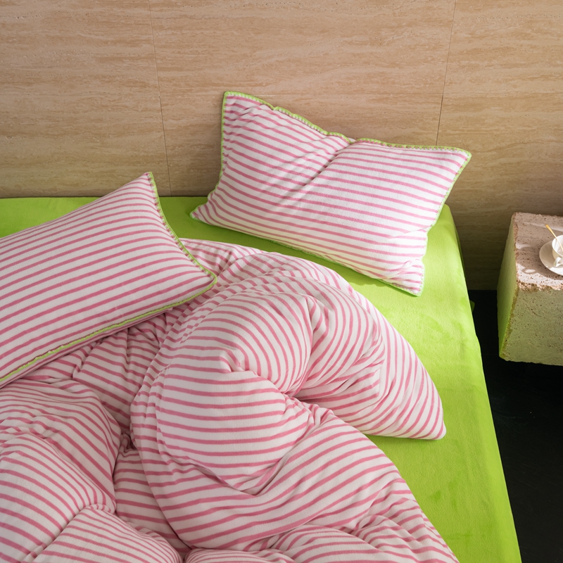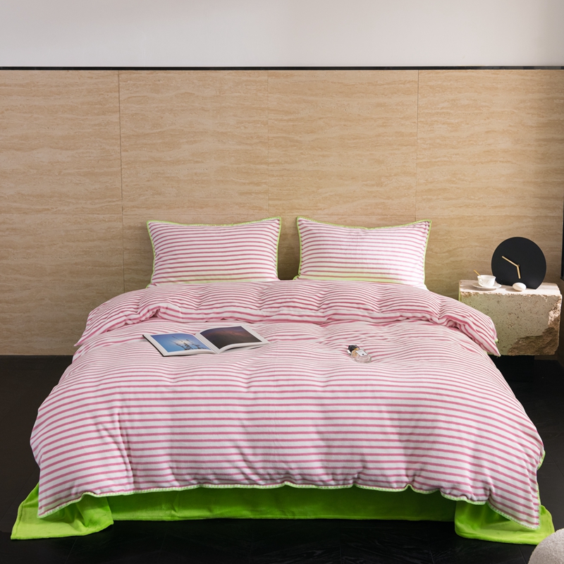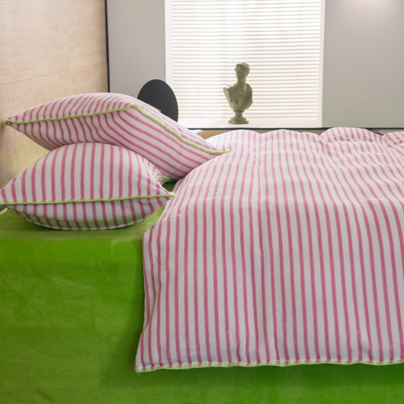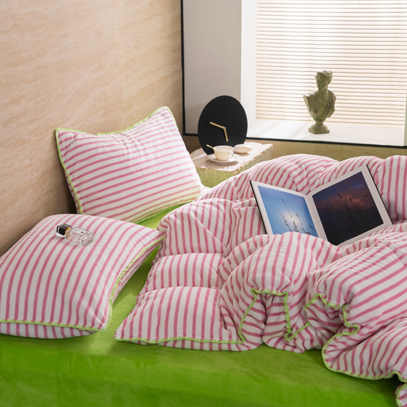 洋铭区(原狠狠爱) 2023新款ab版牛奶绒心动系列条纹四件套 心动粉白条