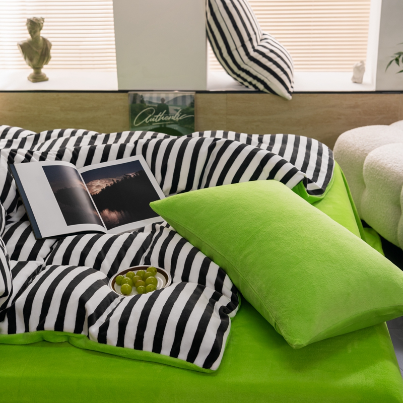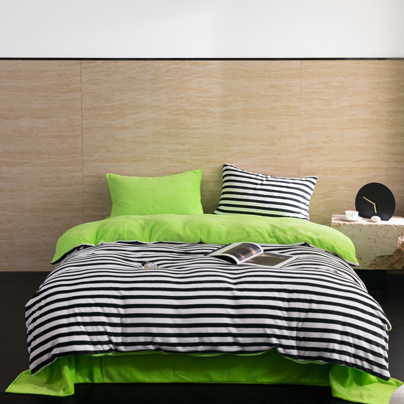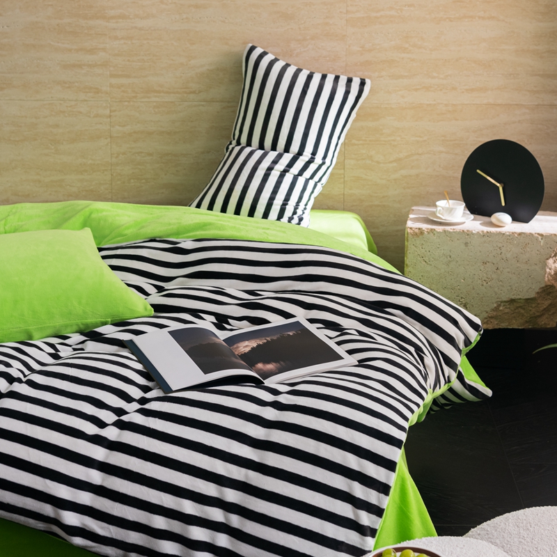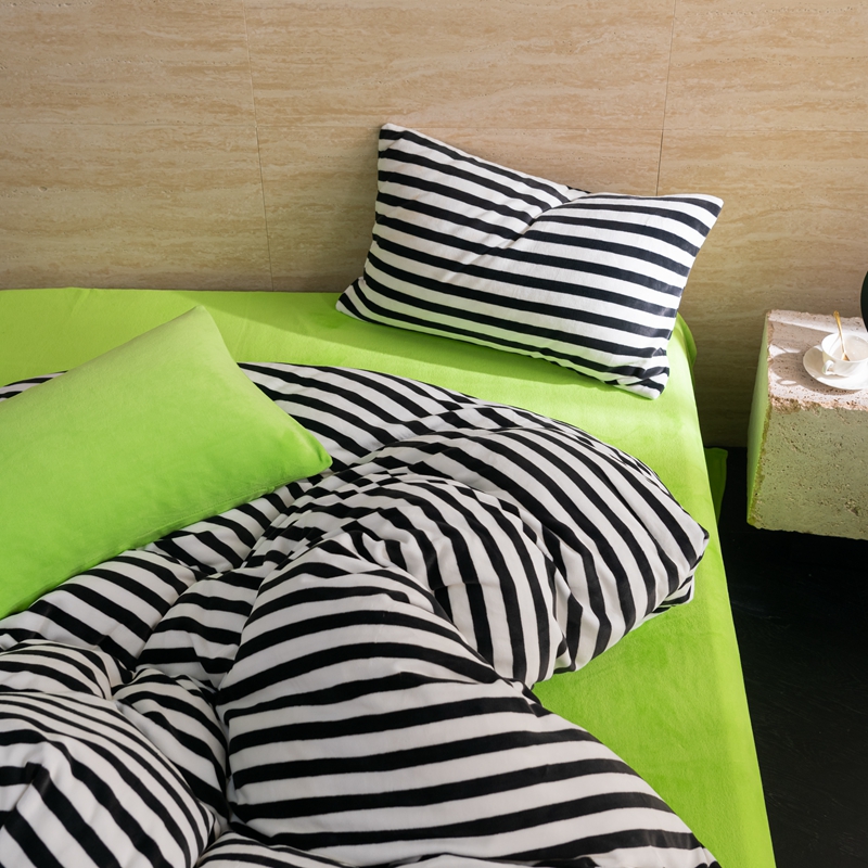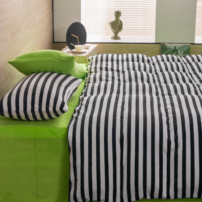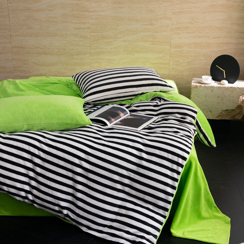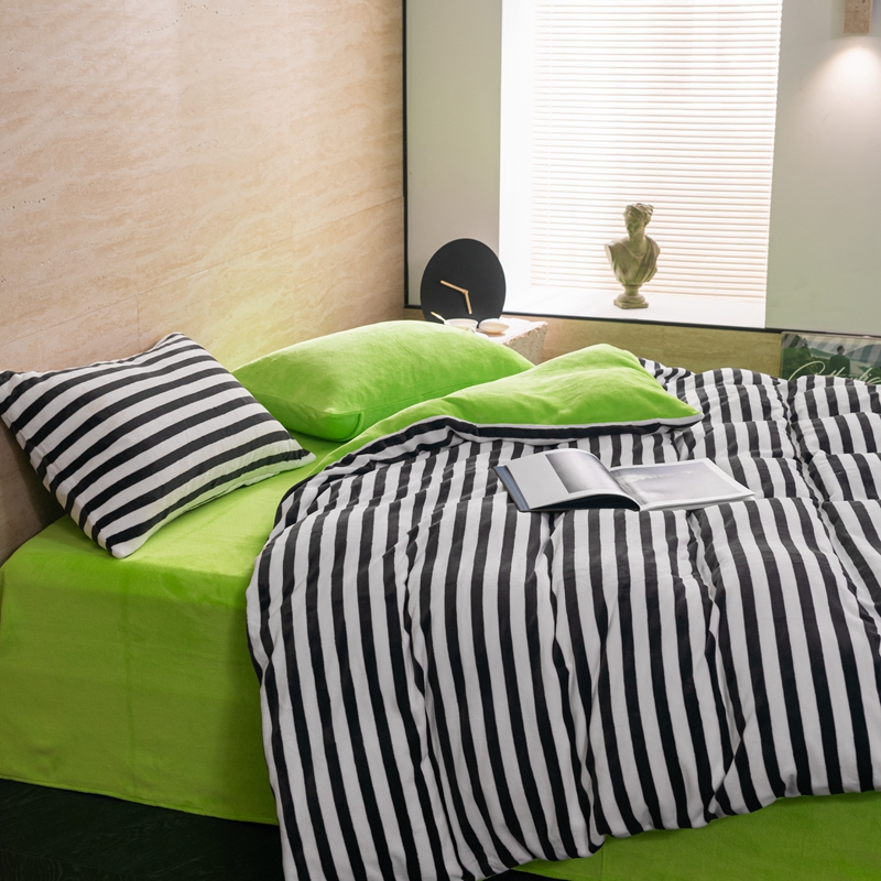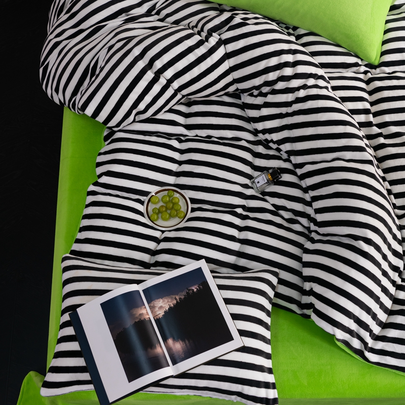 洋铭区(原狠狠爱) 2023新款ab版牛奶绒绒糖果彩条四件套 糖果黑白条