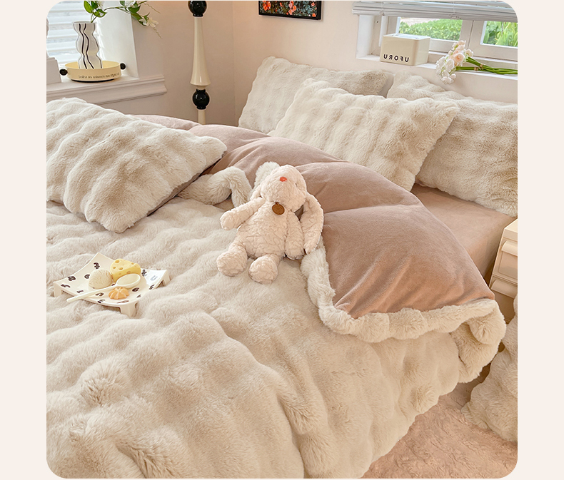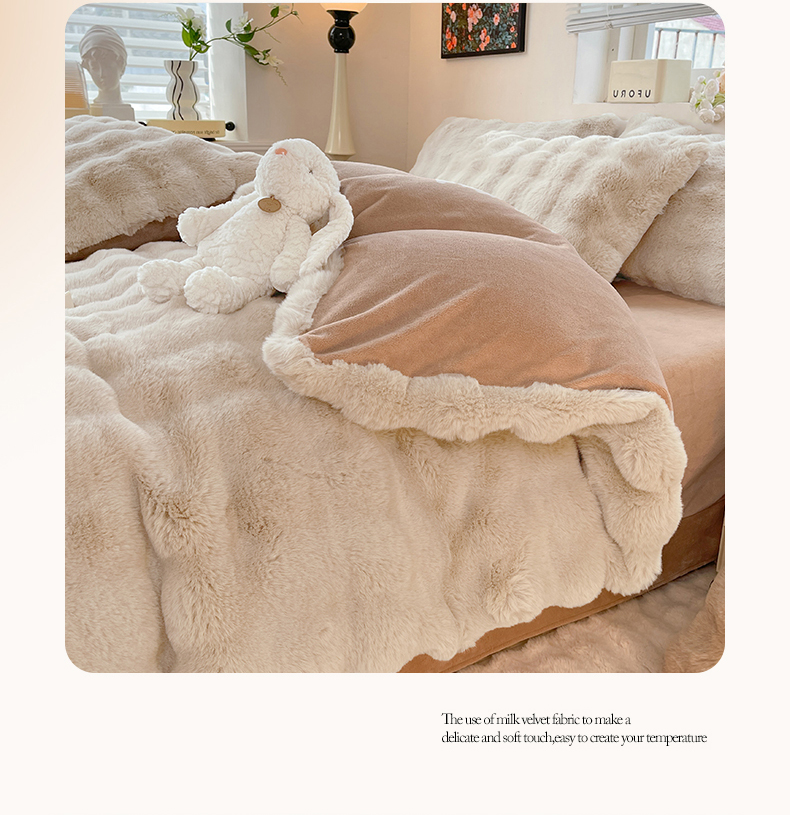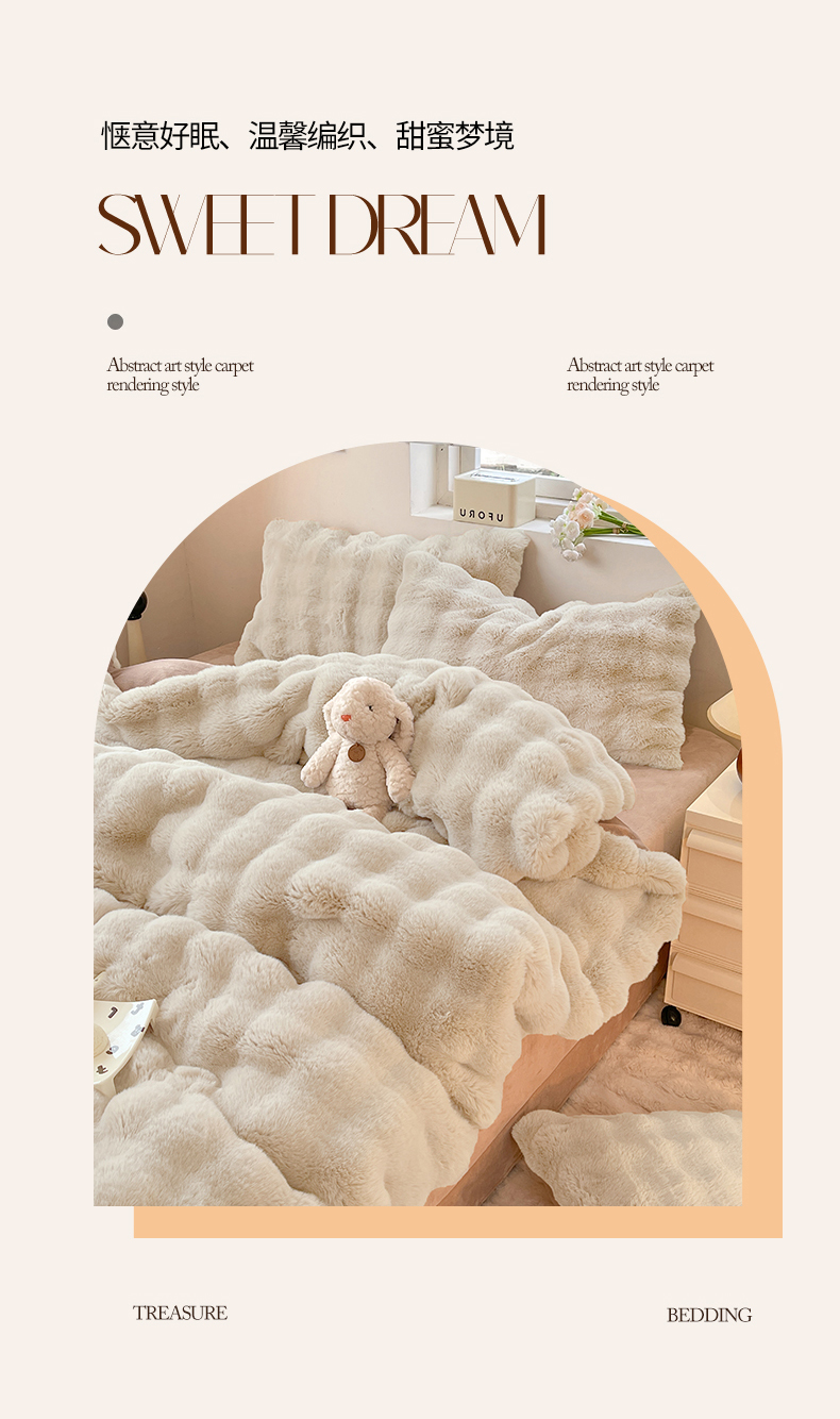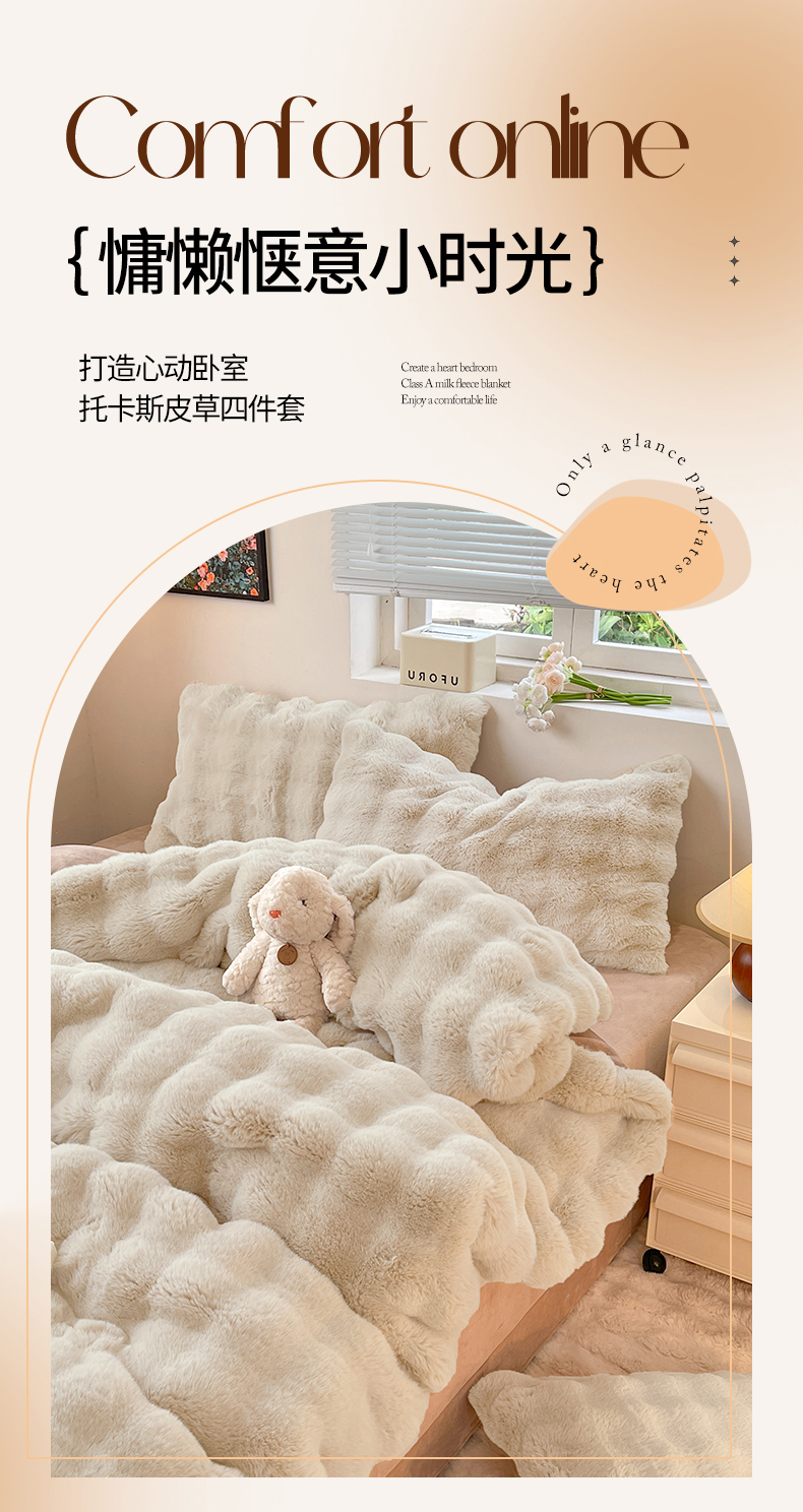 当前位置: 91家纺网 > 商品网购 > 床品套件 > 四件套 > 牛奶绒四件套 > 席之家 2024新款高克重托卡斯仿皮草大泡泡兔兔绒牛奶绒四件套 白咖
