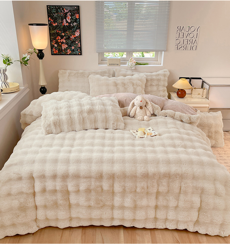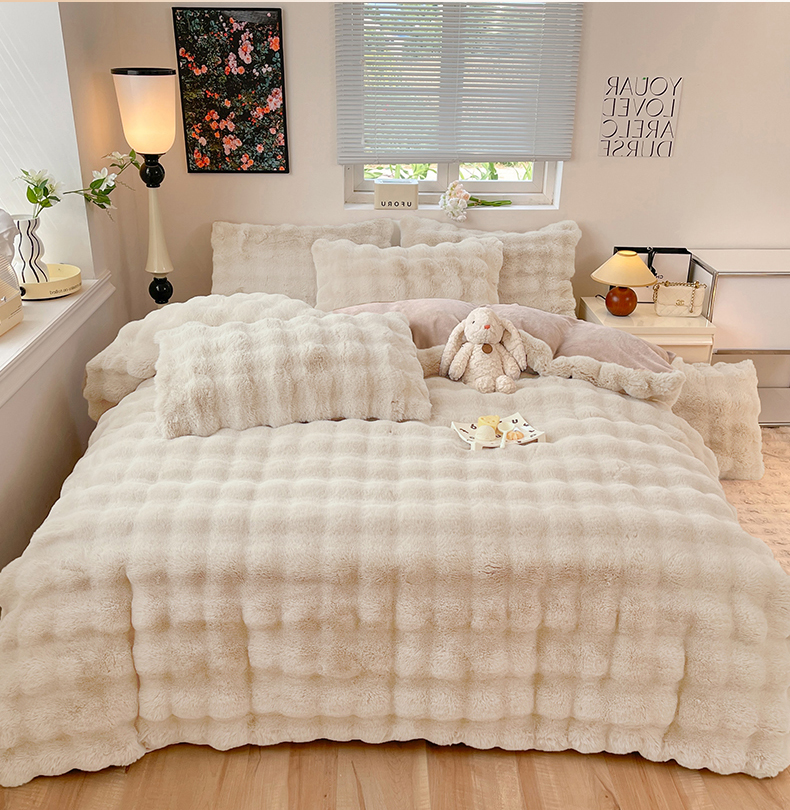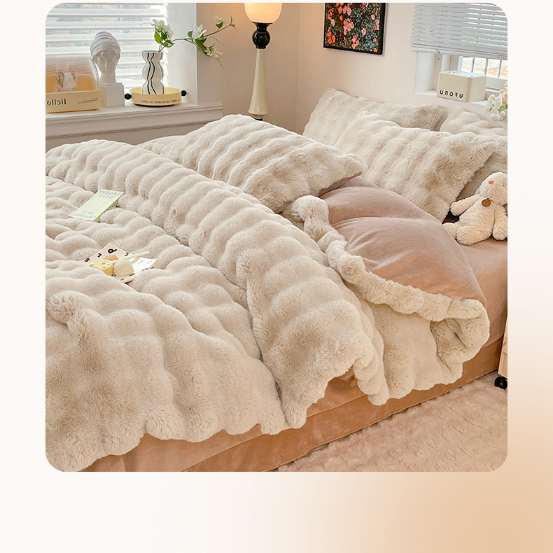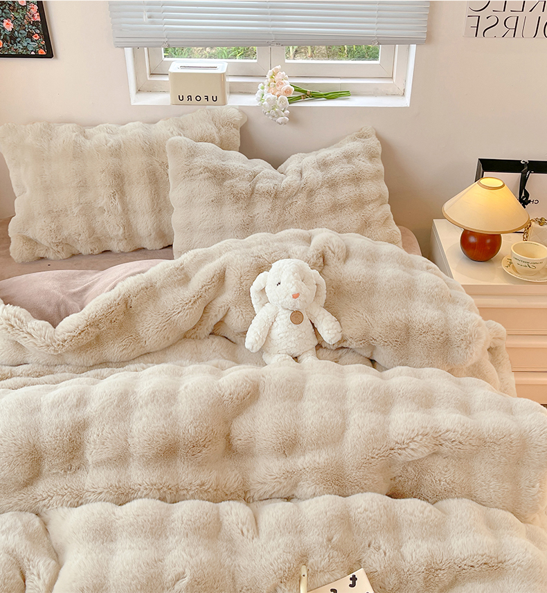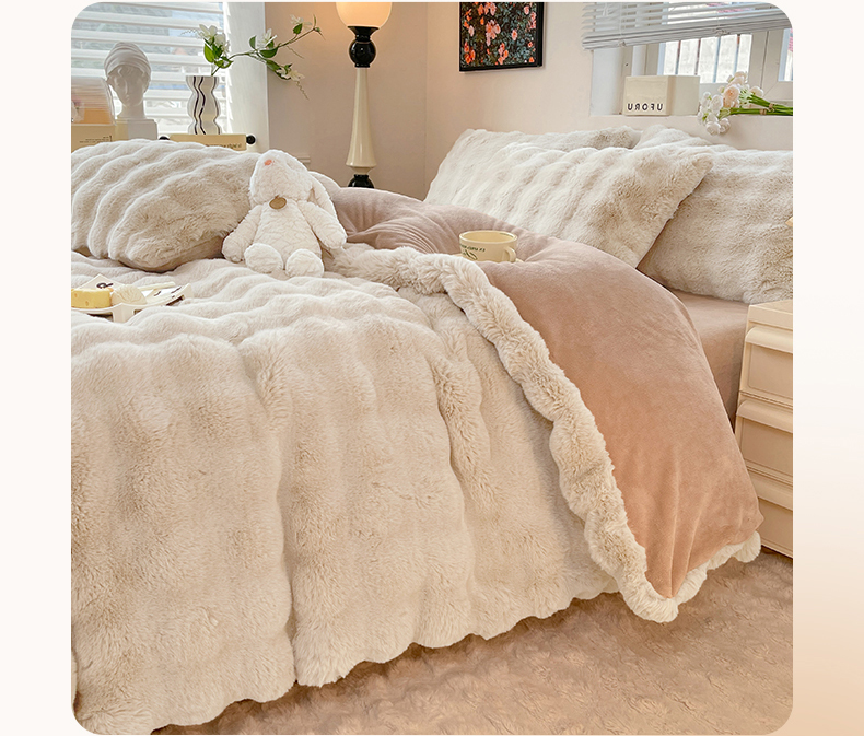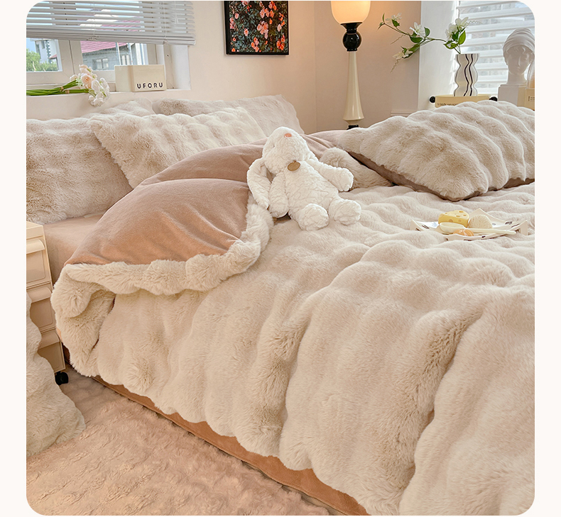 当前位置: 91家纺网 > 商品网购 > 床品套件 > 四件套 > 牛奶绒四件套 > 席之家 2024新款高克重托卡斯仿皮草大泡泡兔兔绒牛奶绒四件套 白咖