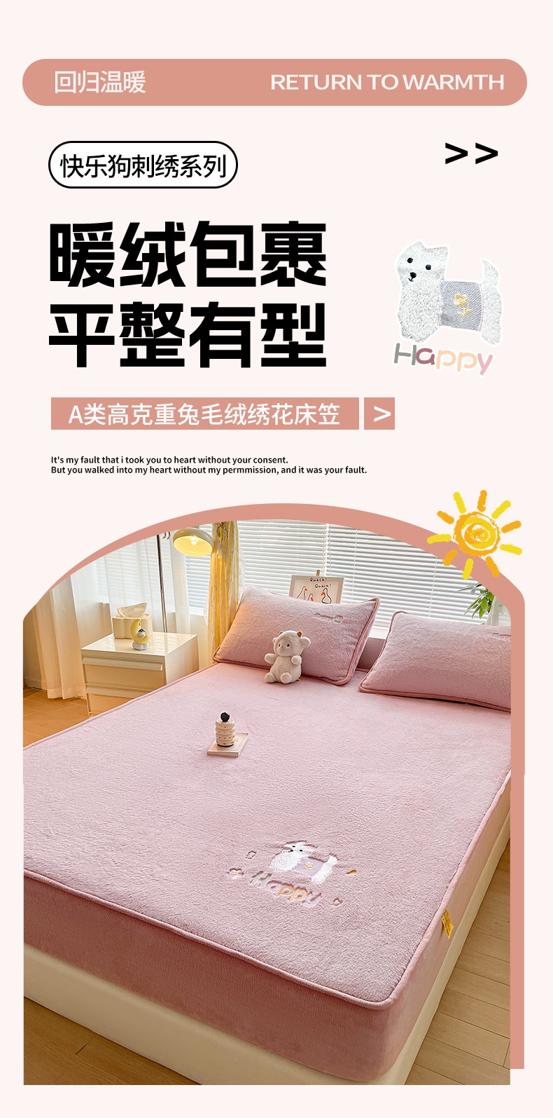 (总)鑫钰 2023新款高克重A类兔毛绒刺绣床笠