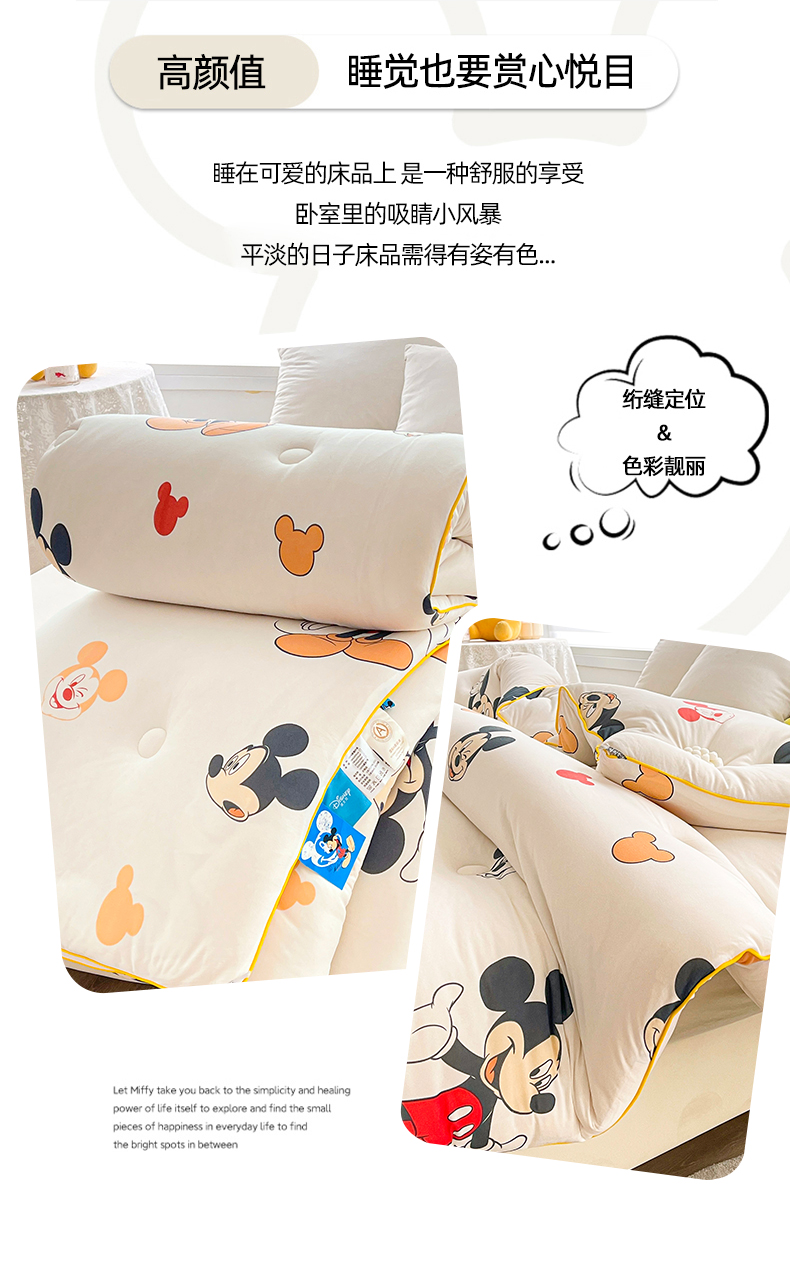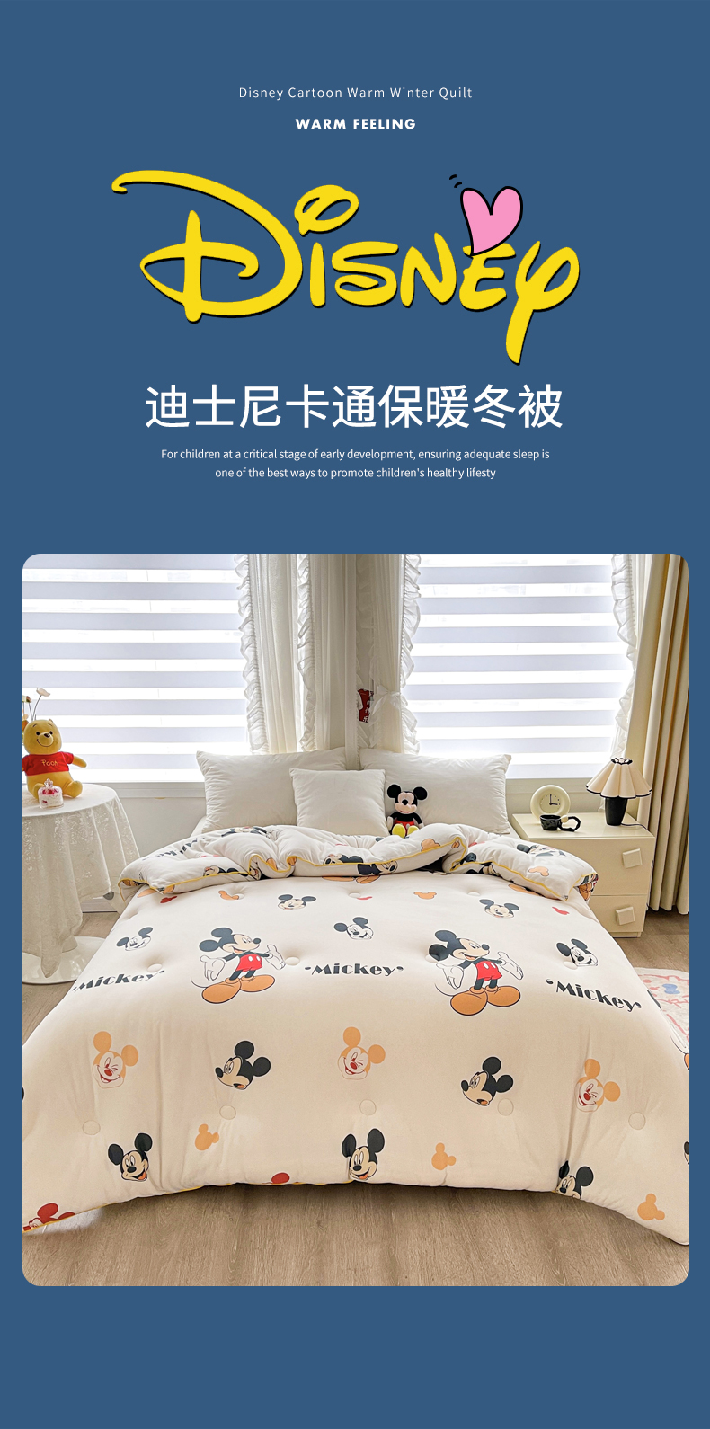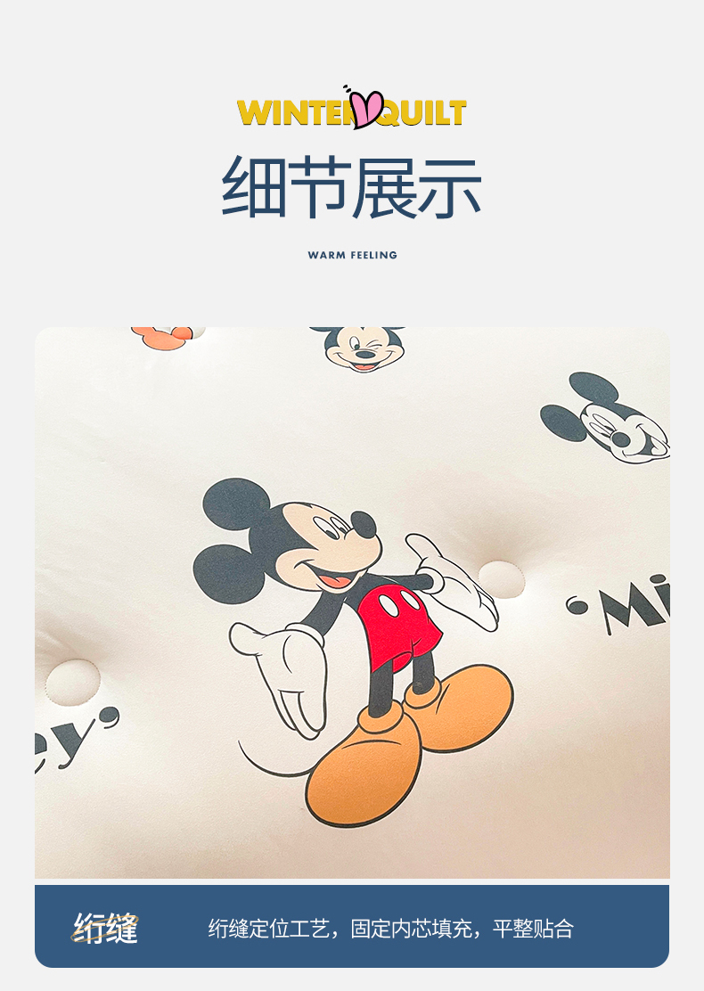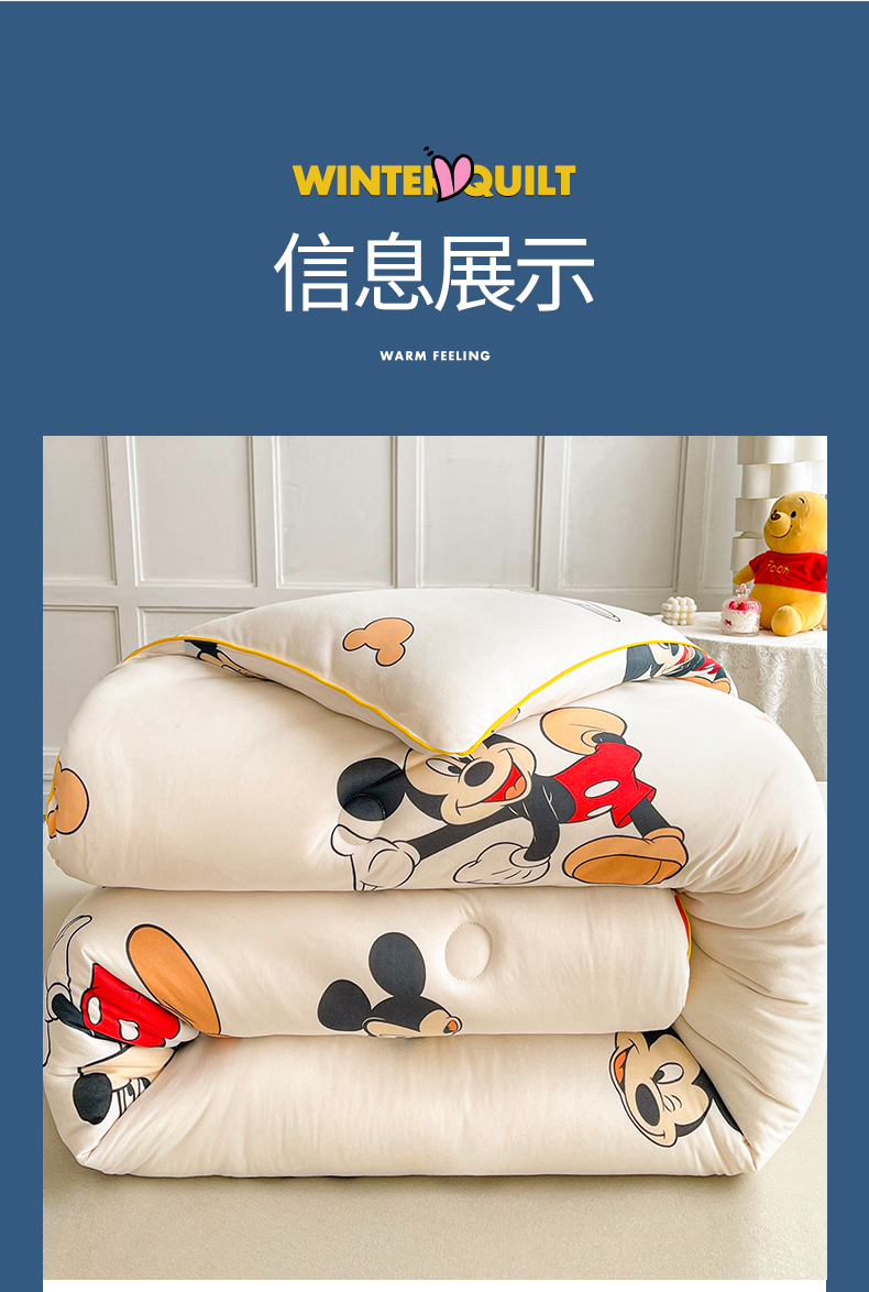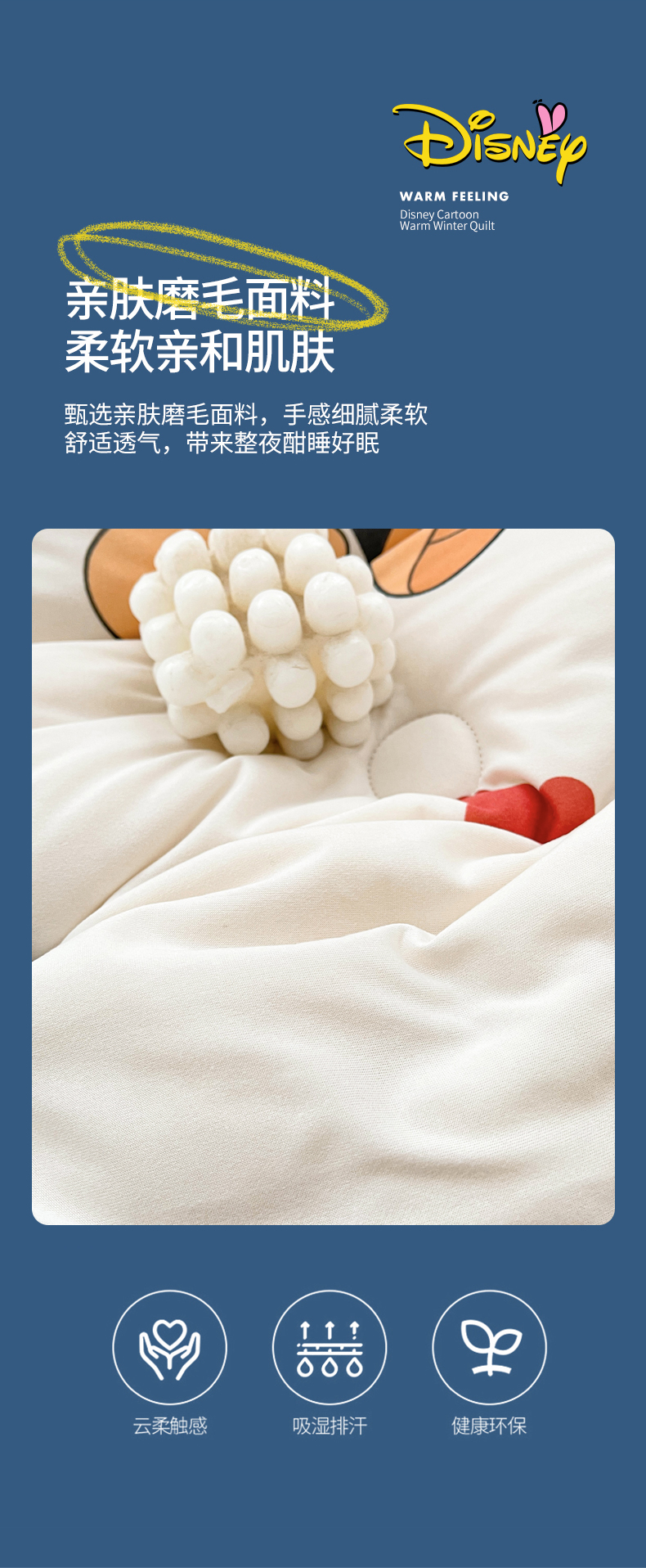 • 91家纺网 家纺一手货源 找家纺 爱上家居 2023新款迪士尼亲肤磨毛冬被被芯 米奇世界-白色