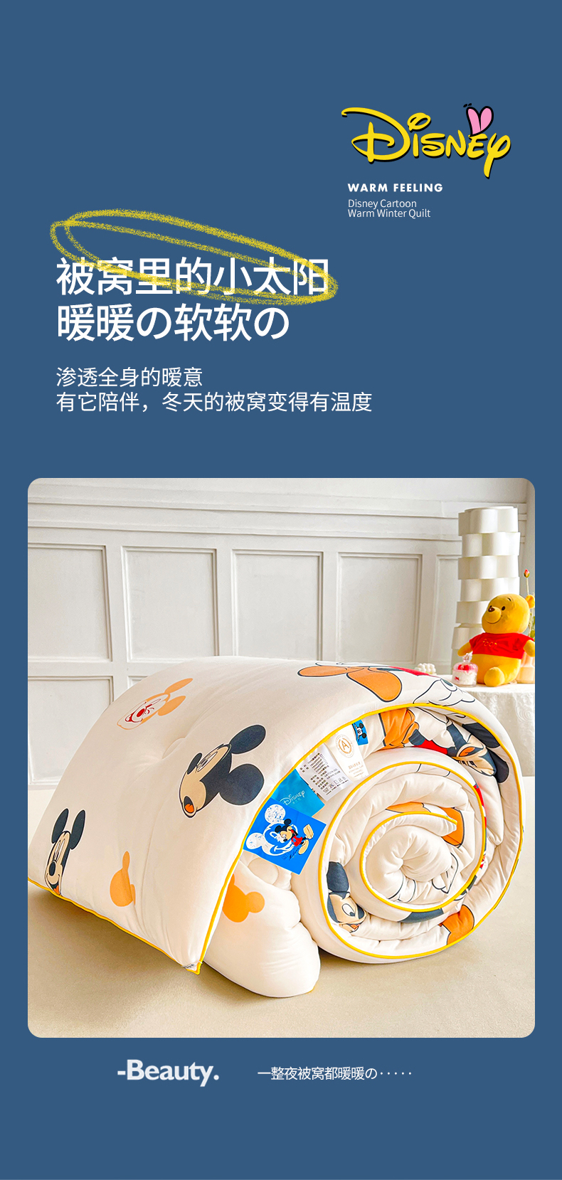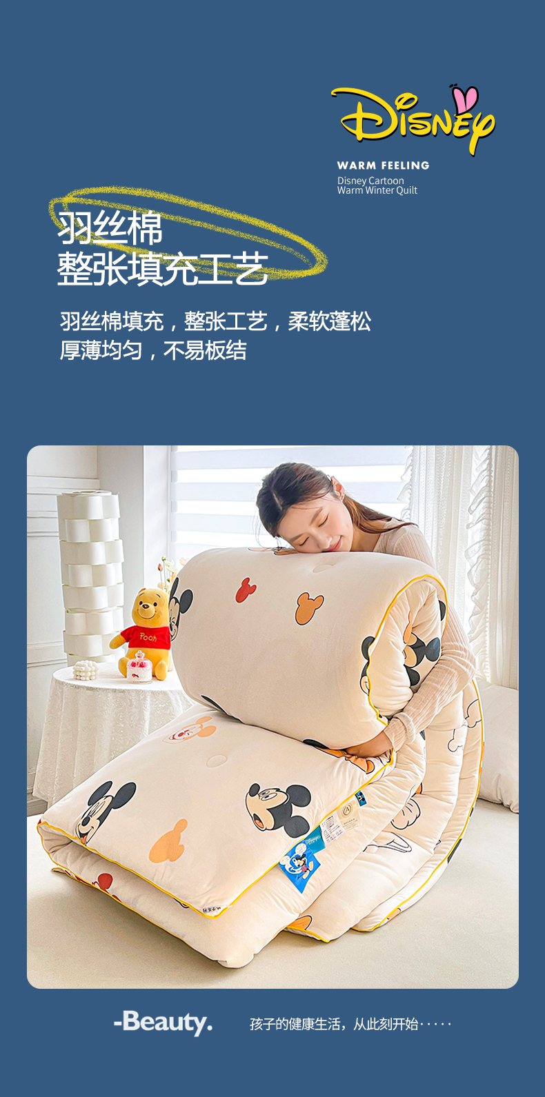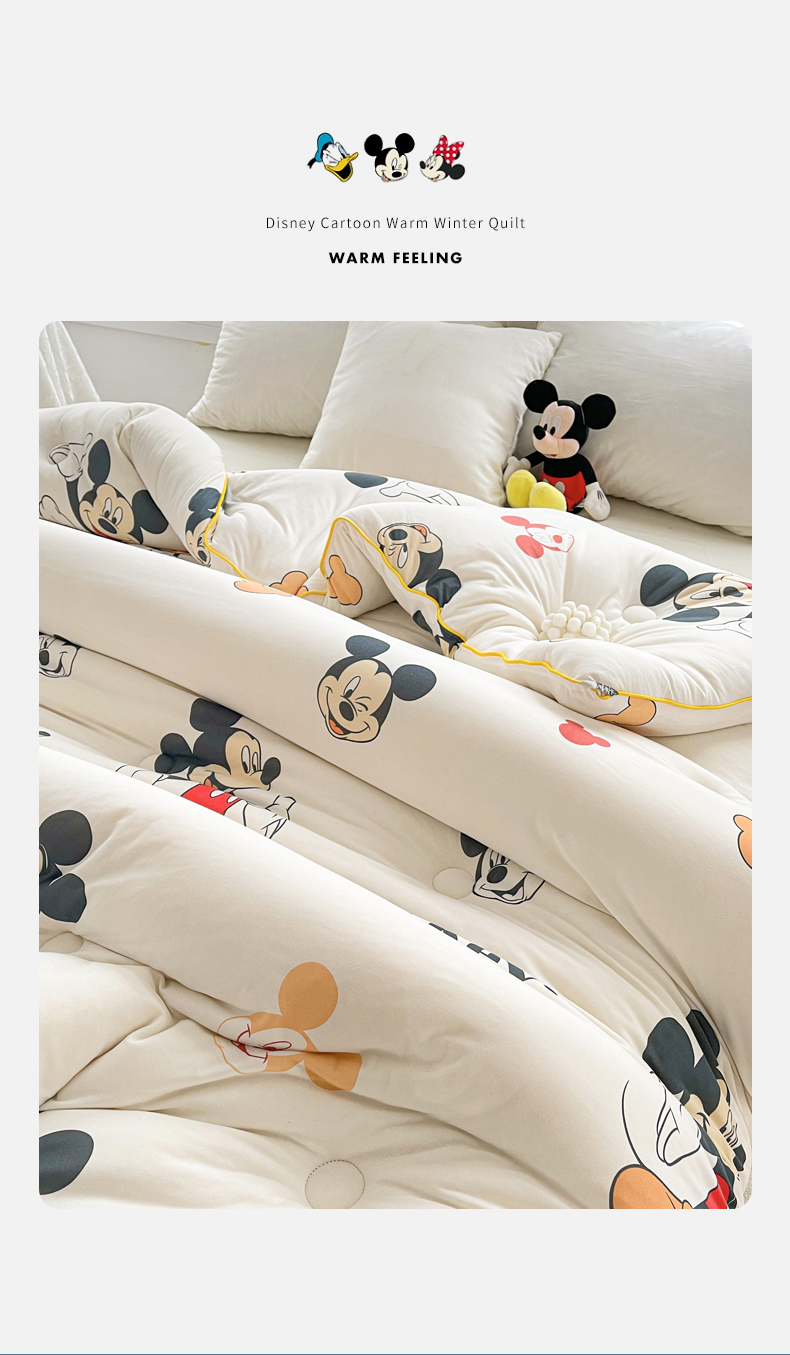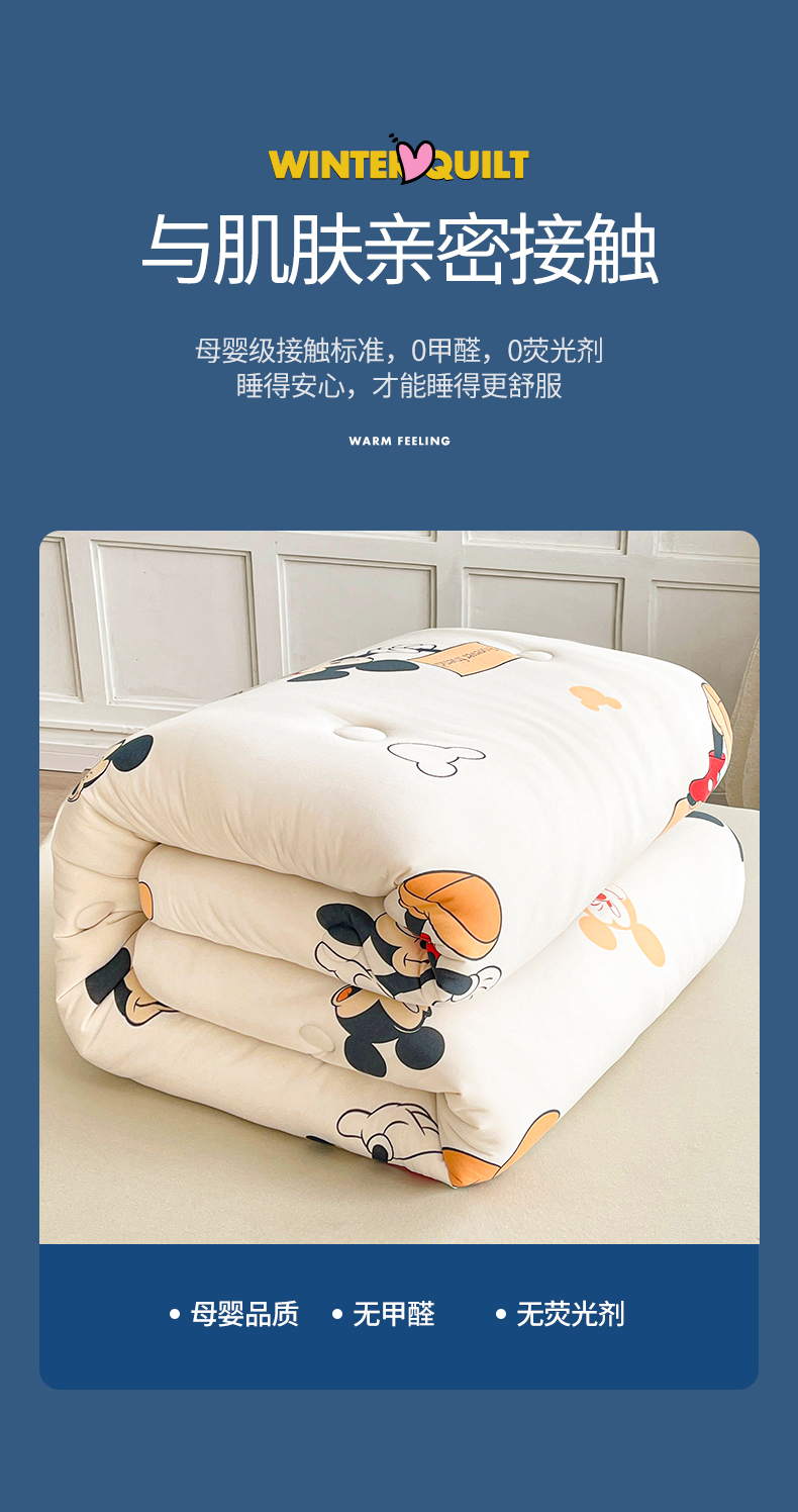 • 91家纺网 家纺一手货源 找家纺 爱上家居 2023新款迪士尼亲肤磨毛冬被被芯 米奇世界-白色