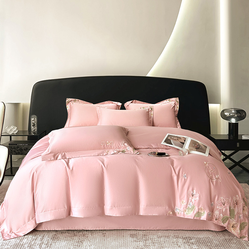 商品名称:宅家居 2024轻奢小香风双面纯棉长绒棉四件套-梦百合 香奈百合-粉玉