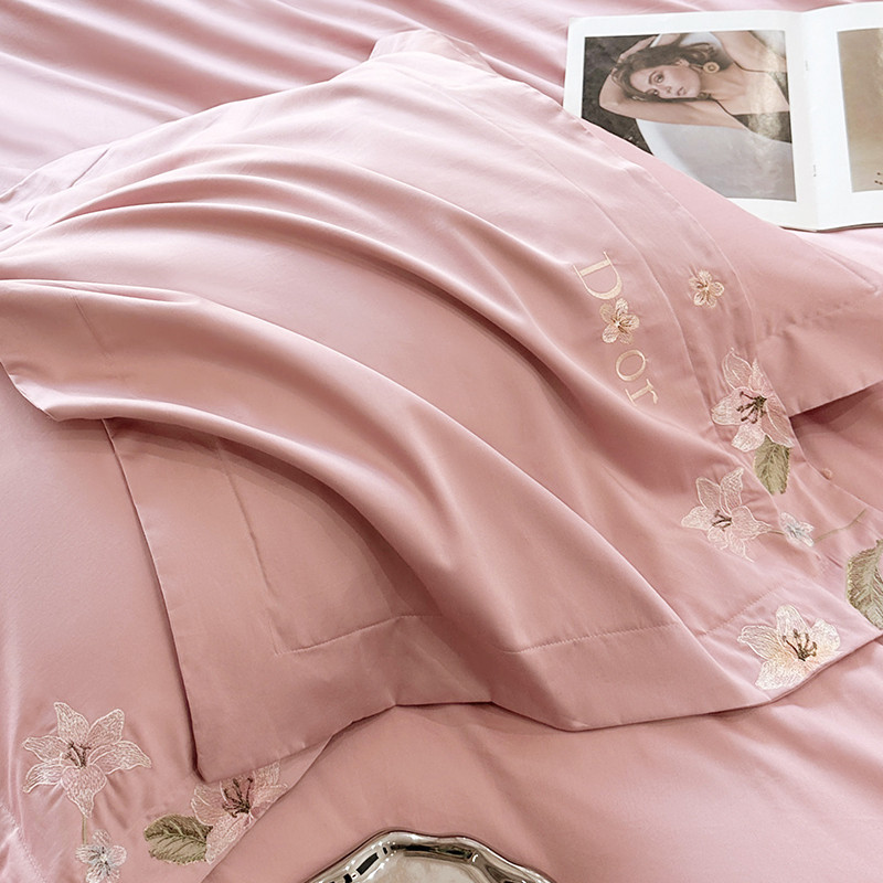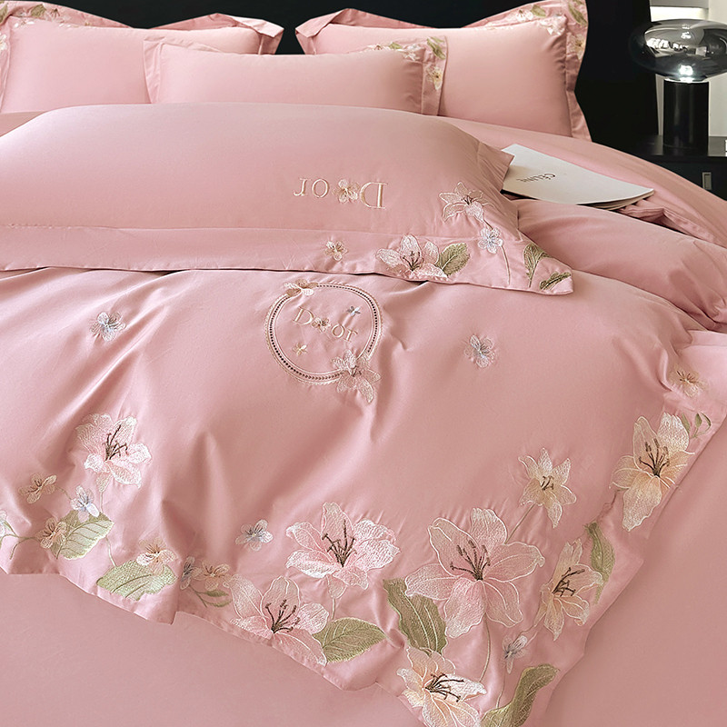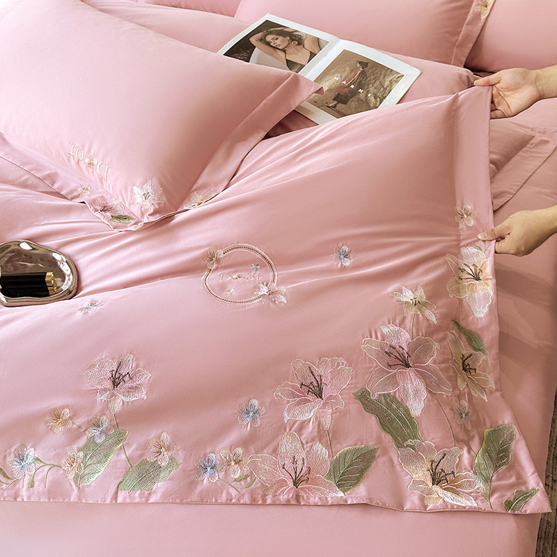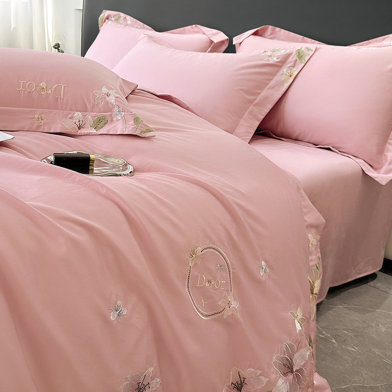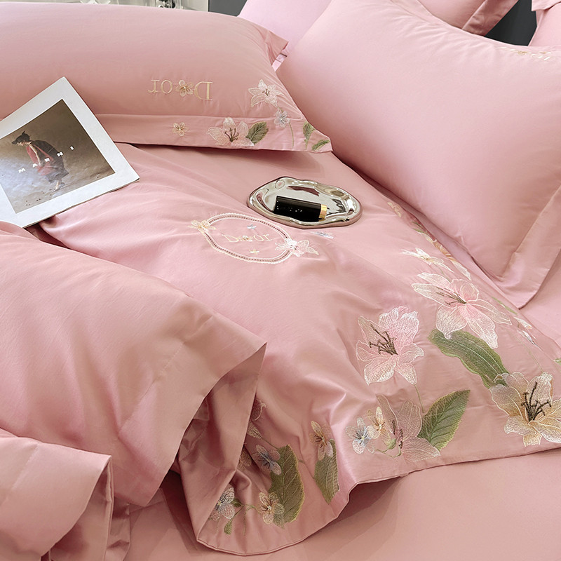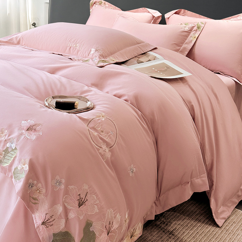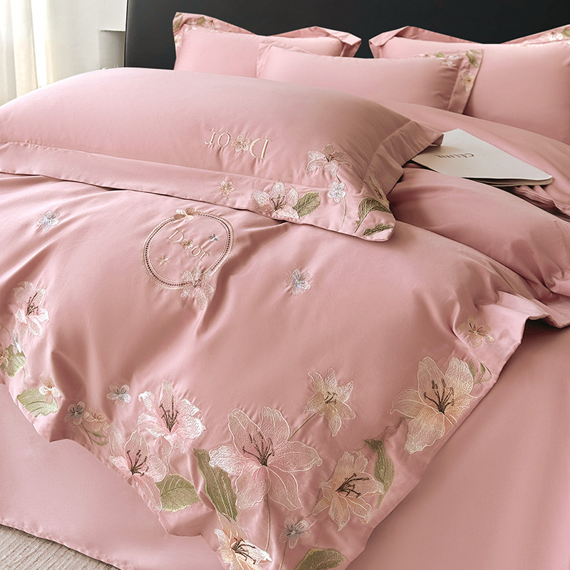 宅家居 2024轻奢小香风双面纯棉长绒棉四件套-梦百合 香奈百合-粉玉