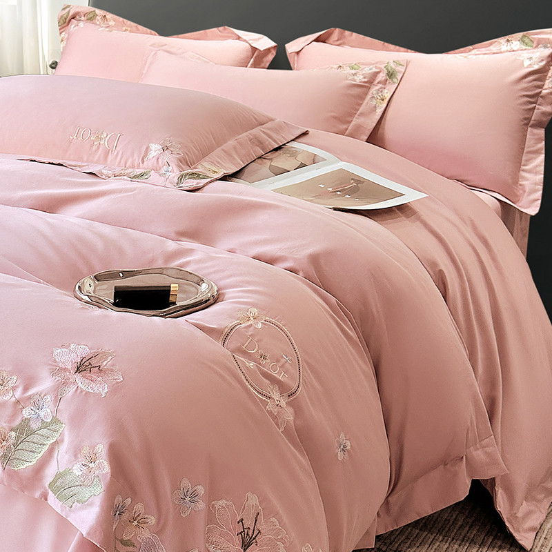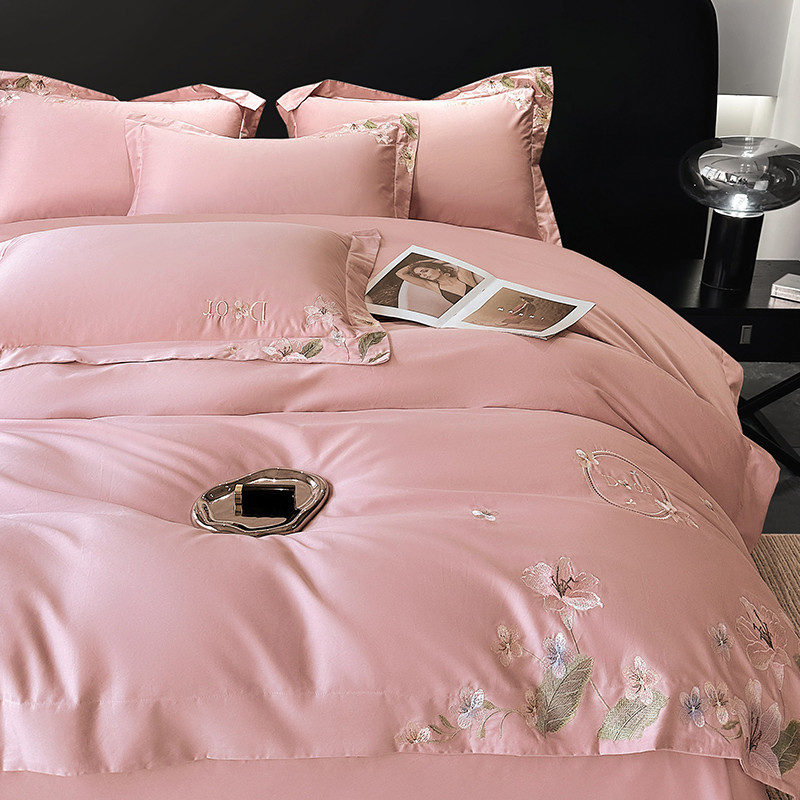总宅家居 2024新款秘密花园系列轻奢小香风纯棉刺绣长绒棉四件套,秘密花园-初夏粉,秘密花园-梵星蓝,秘密花园-贵妃绿,秘密花园-奶昔白,秘密花园-香槟金