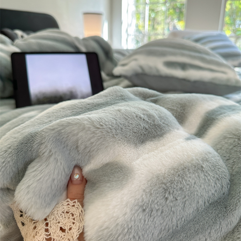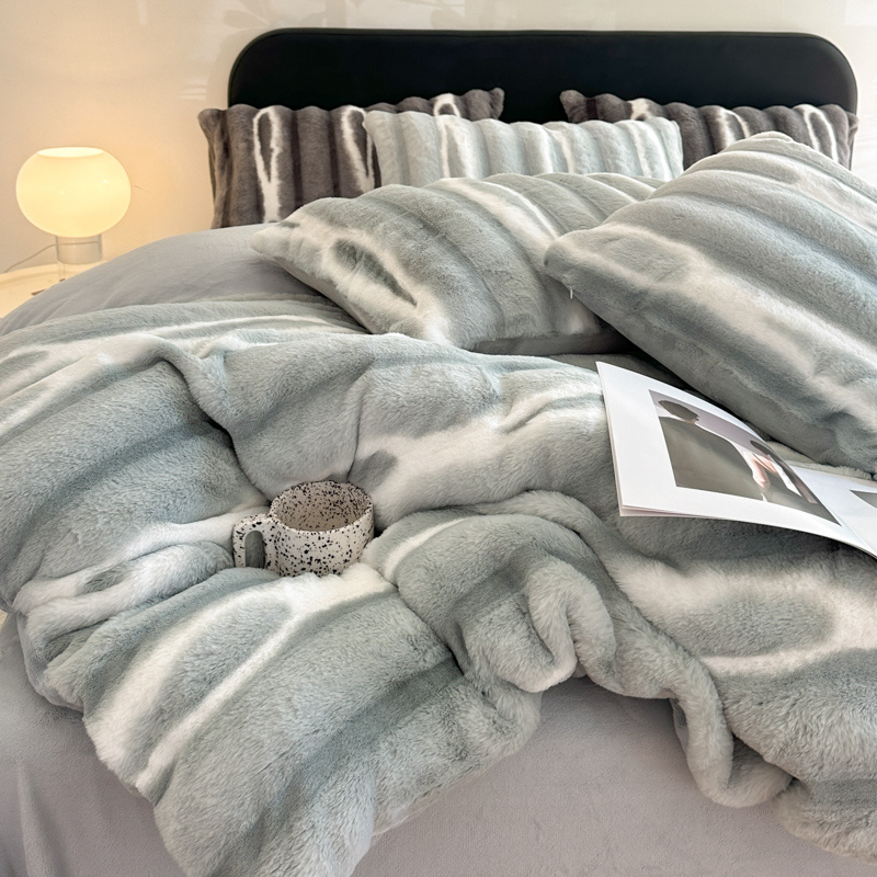 锦禾穗 2023新款丹麦貂绒兔绒四件套秘境系列 卡曼-灰绿