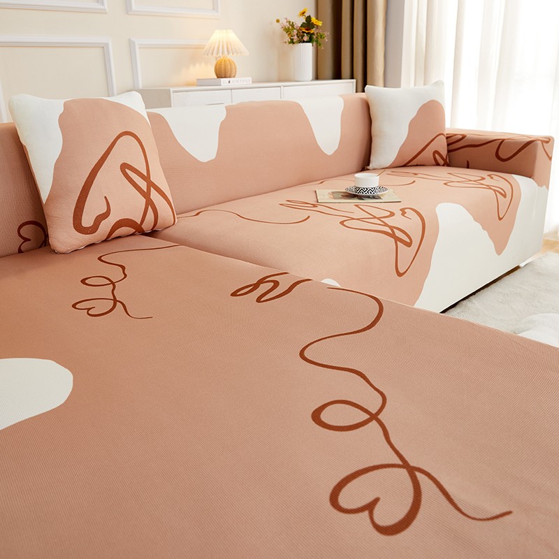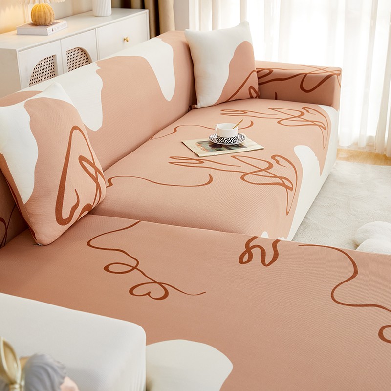 丝绮鹿2023针织柔肤格贵妃沙发套松紧款 买一个沙发套默认送一个抱枕套 简爱-杏色