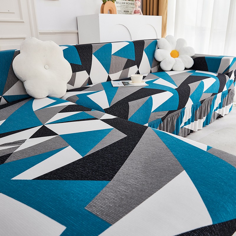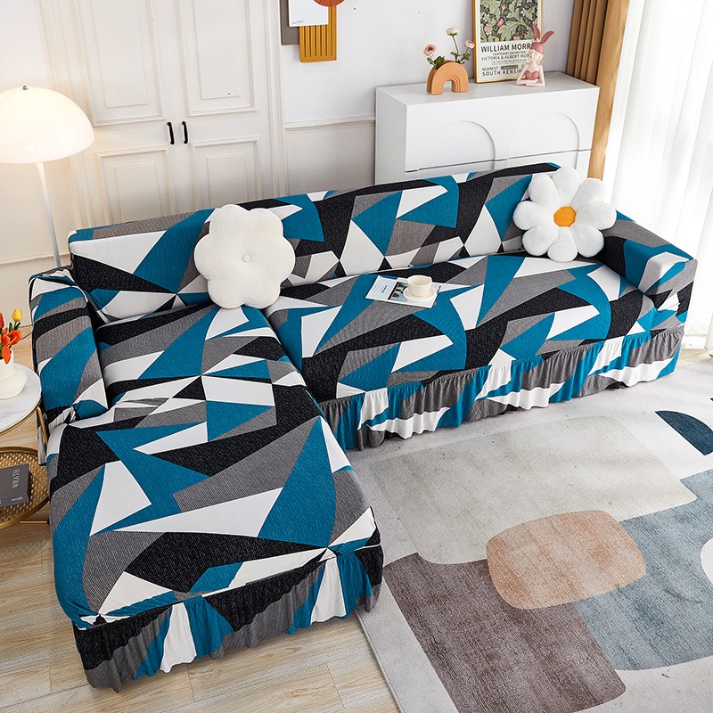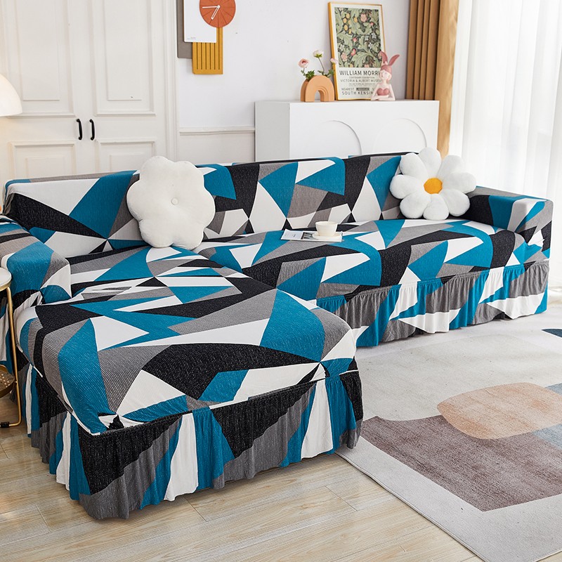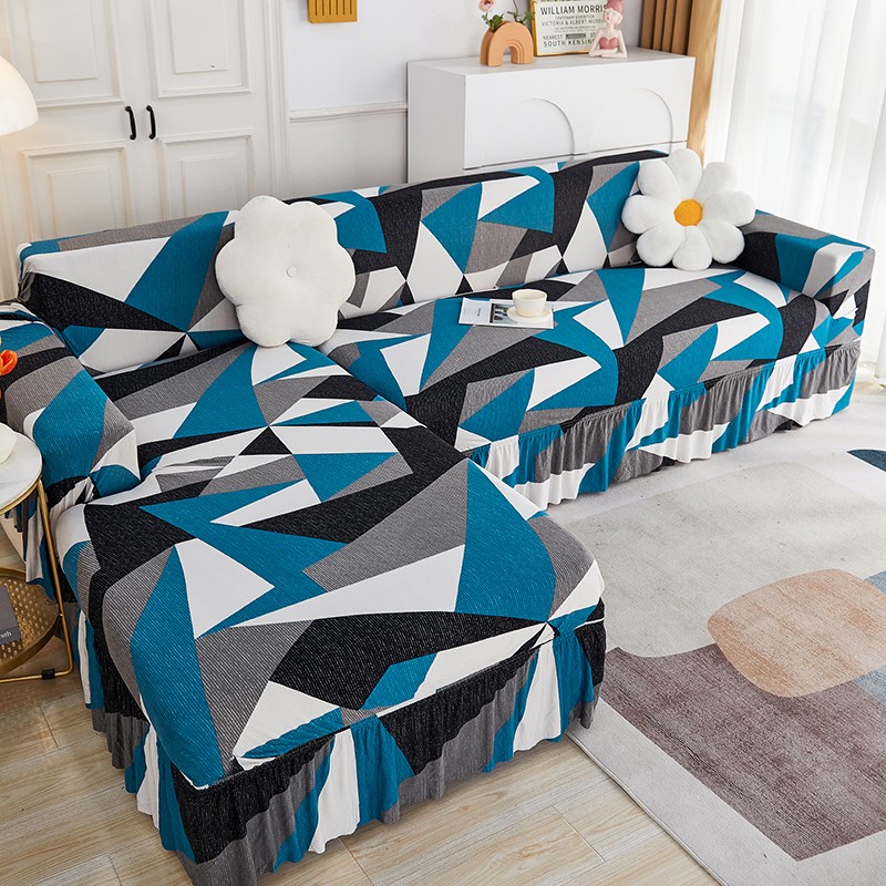 丝绮鹿 2023新款牛奶丝沙发套贵妃图(裙边款) 时光隧道