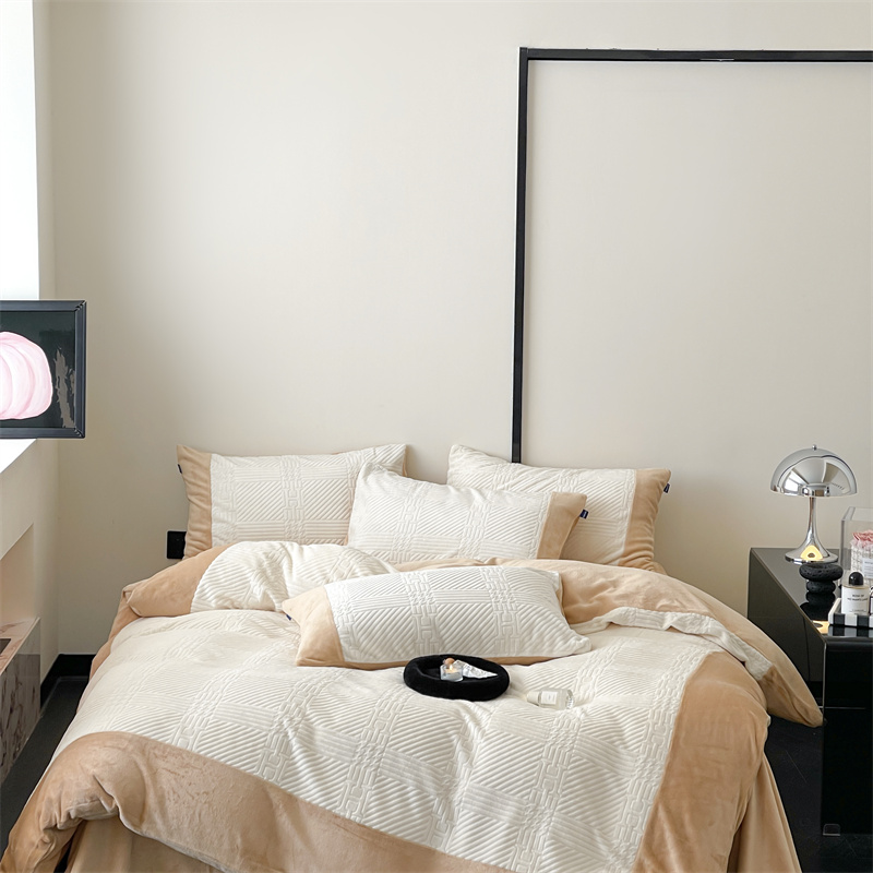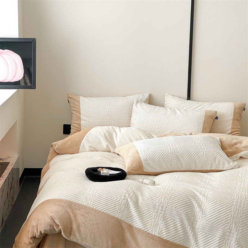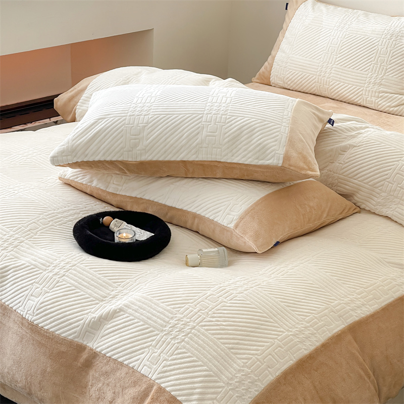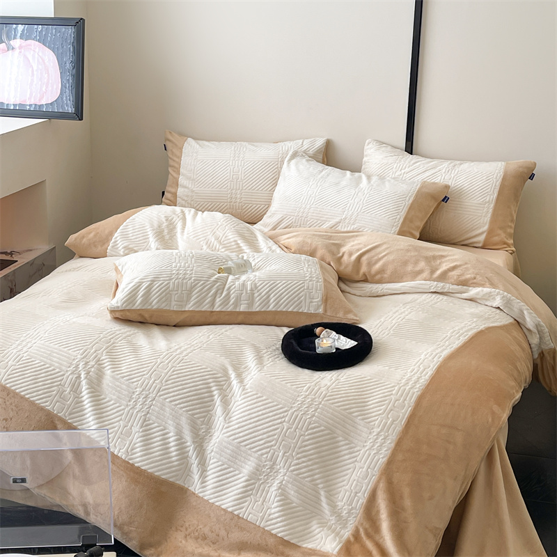商品名称:顾里 2023新款H系列雕花绒四件套 H咖
