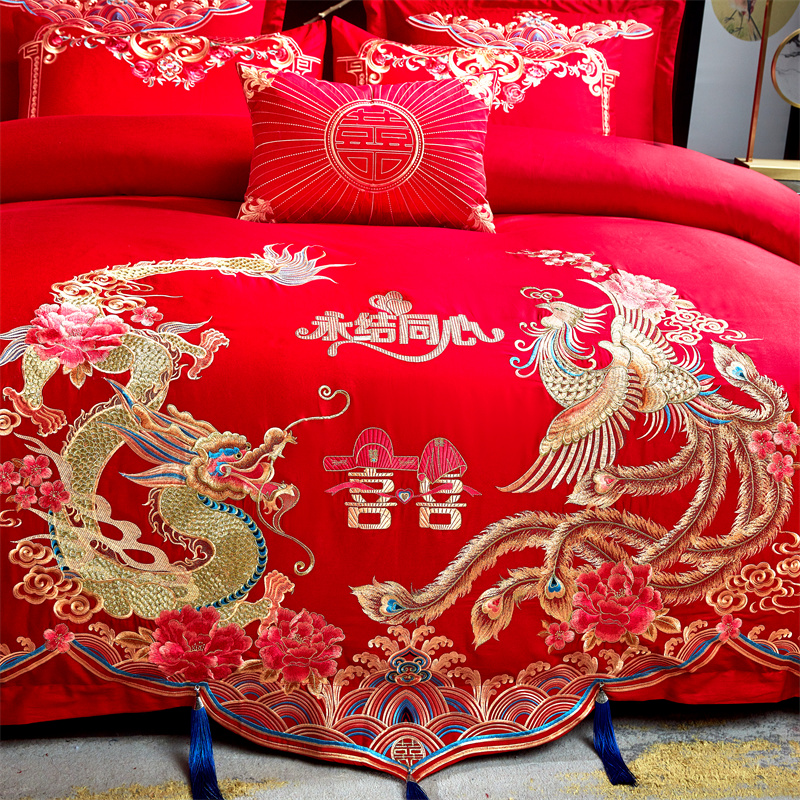 当前位置: 91家纺网 > 商品网购 > 床品套件 > 四件套 > 婚庆四件套 > 布乐意 2025新款全棉绣花大红婚庆四件套多件套直播 龙飞凤舞