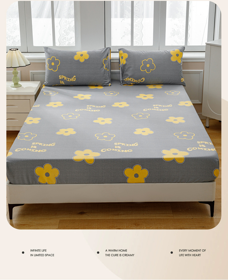 宝时兰 2025新款A类加厚全棉床笠-印花款 花蜜灰
