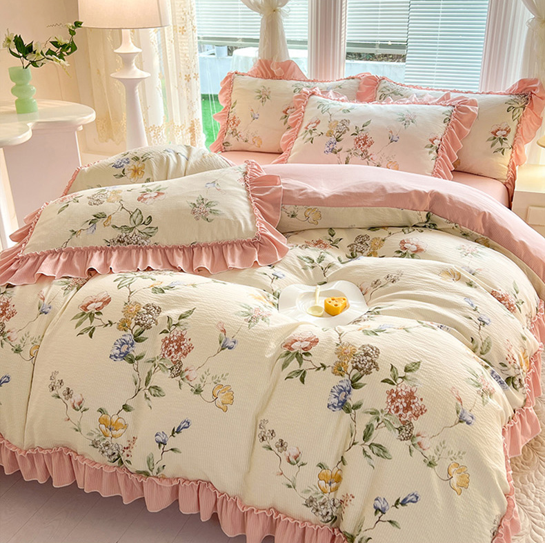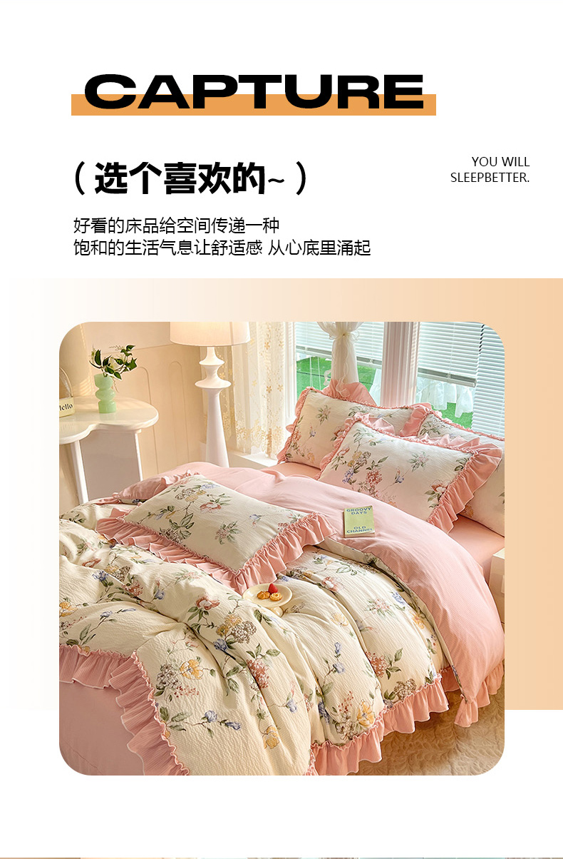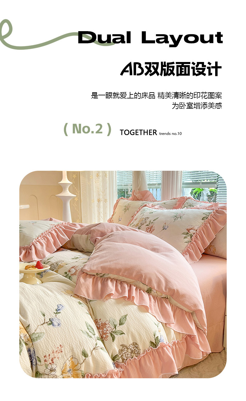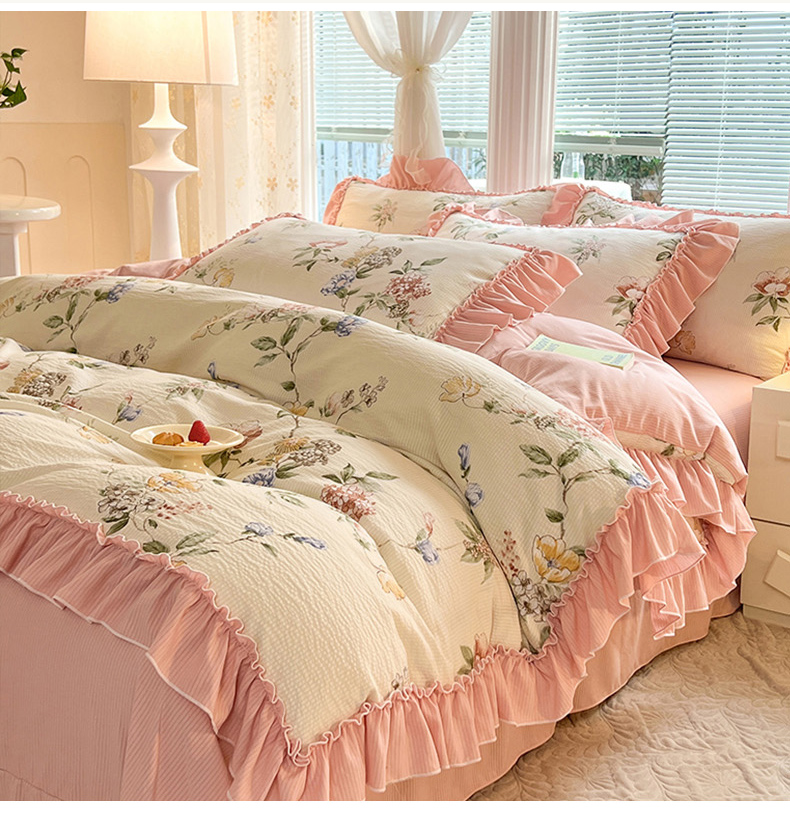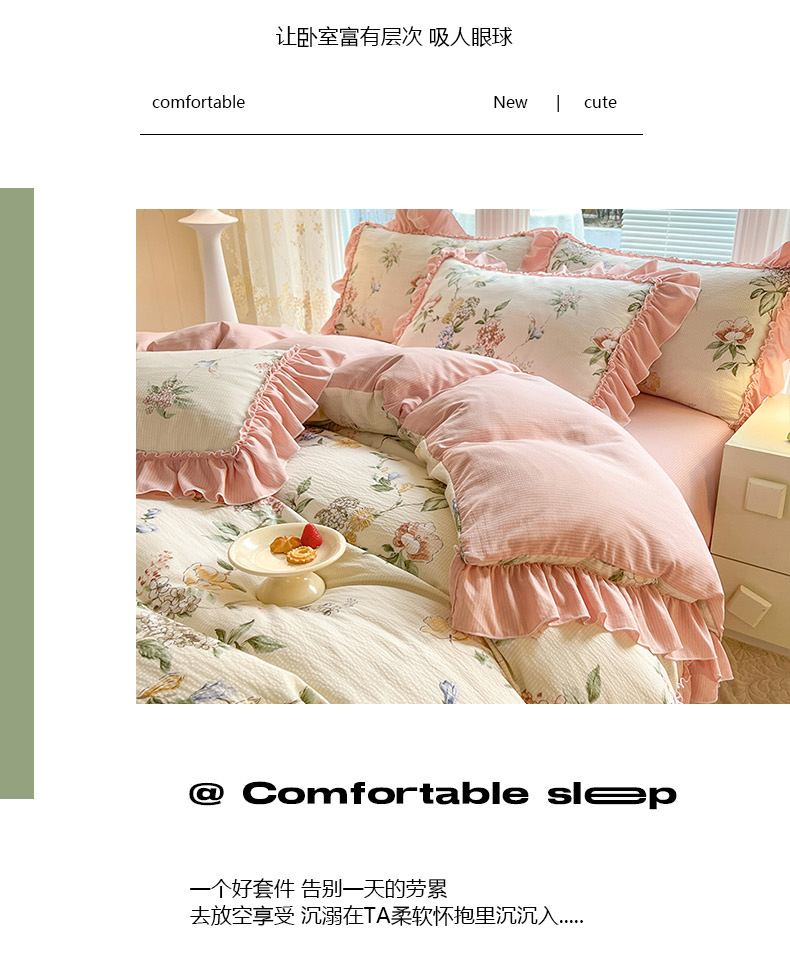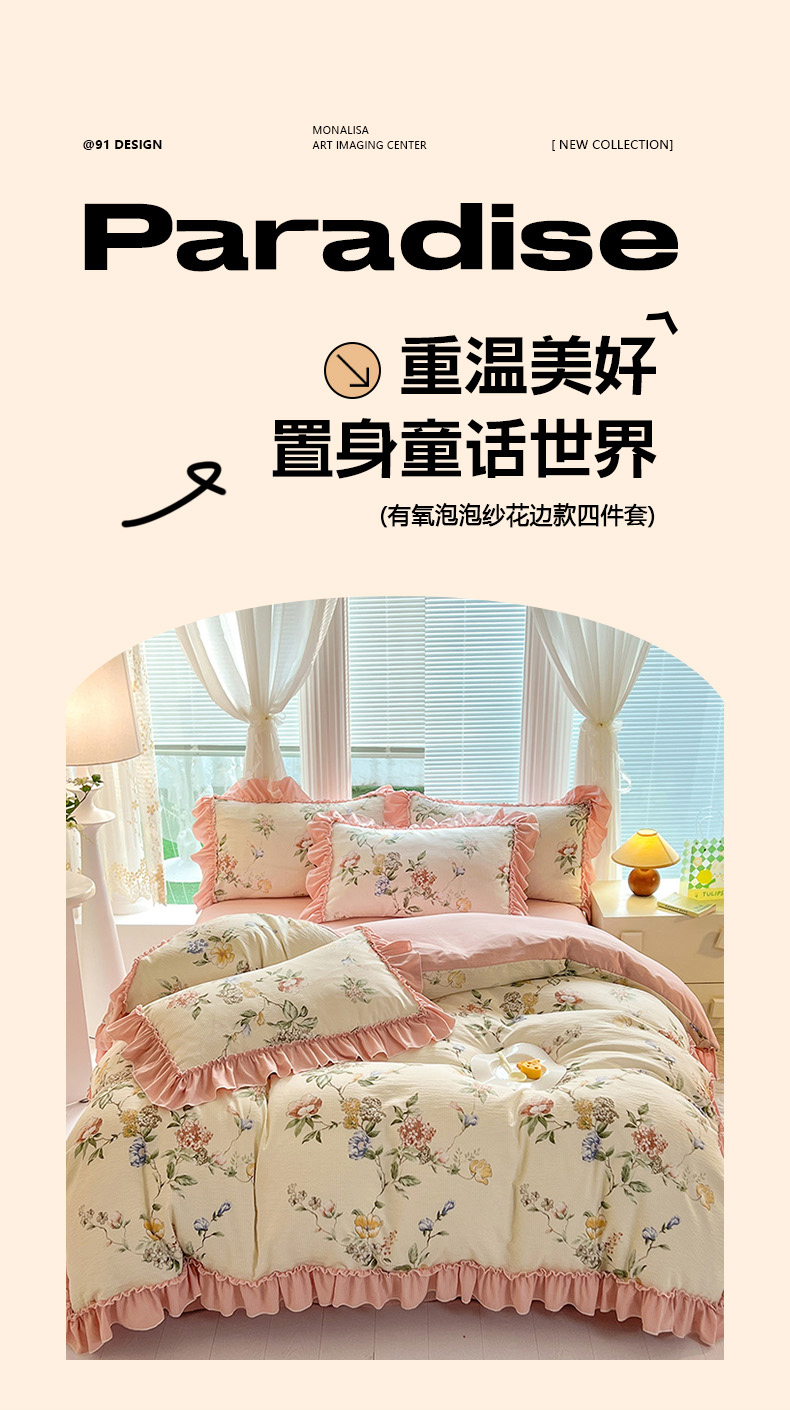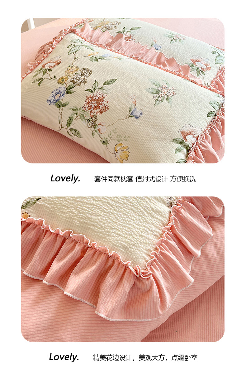 慕梵家居 2024新款泡泡纱花边款四件套 花边款-俏佳人