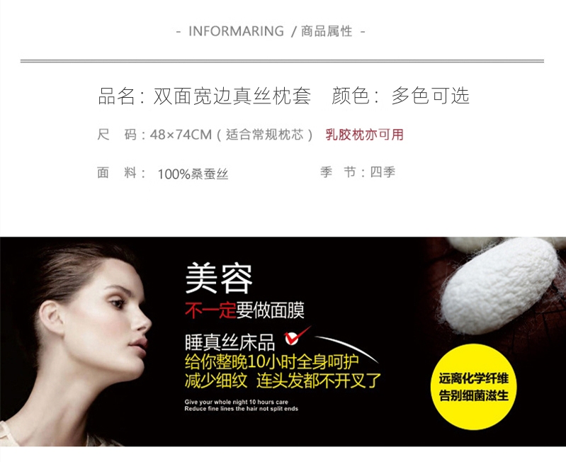 商品名称:凯森家纺 2024新款双面真丝宽边款枕头套枕芯套 双面香槟玉