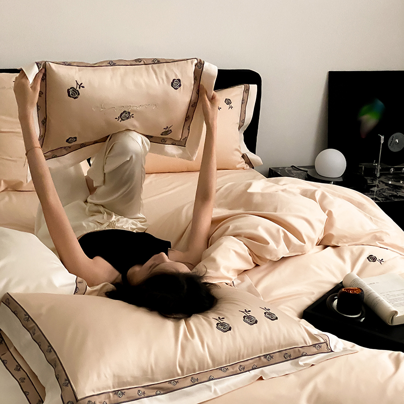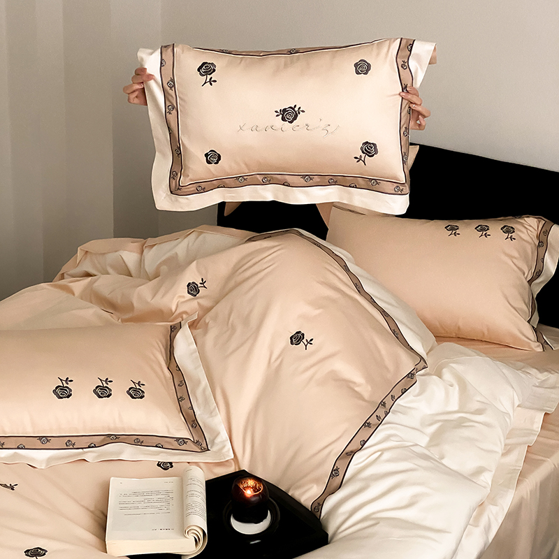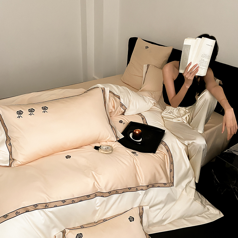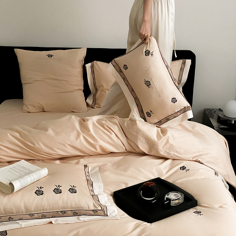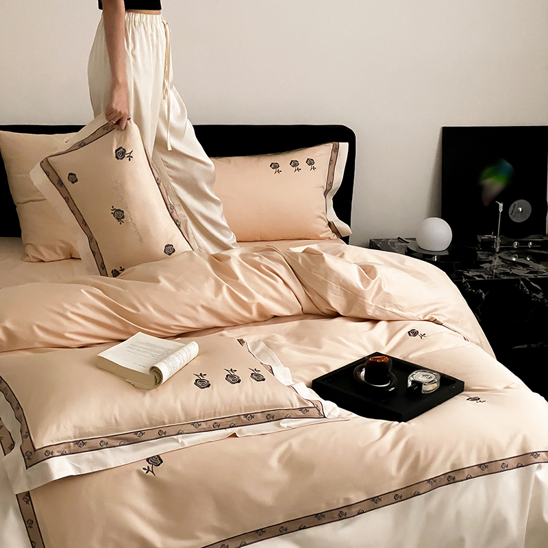 商品名称:曼布缇 2025新款工艺款100S澳棉长绒棉绣花四件套-莫奈 圣殿驼