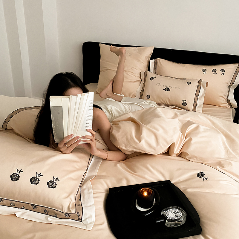 曼布缇 2025新款工艺款100S澳棉长绒棉绣花四件套-莫奈 圣殿驼
