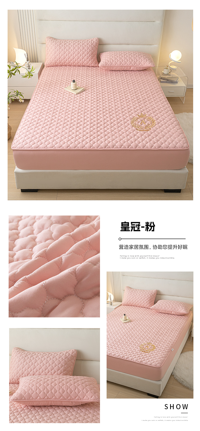 卡伦 2025新款夹棉床笠烫画系列 皇冠-粉