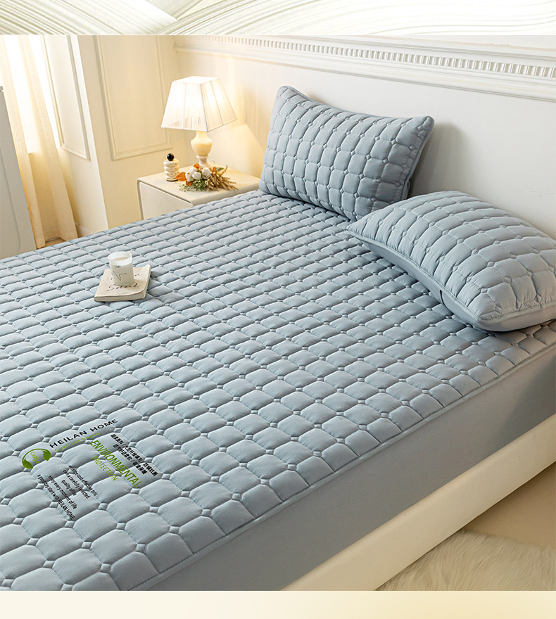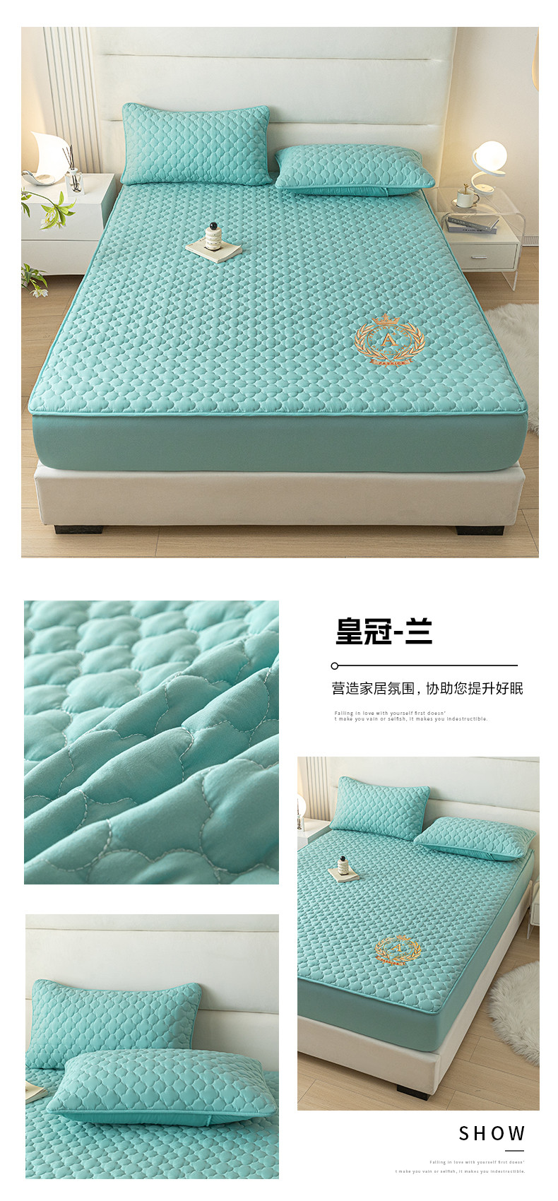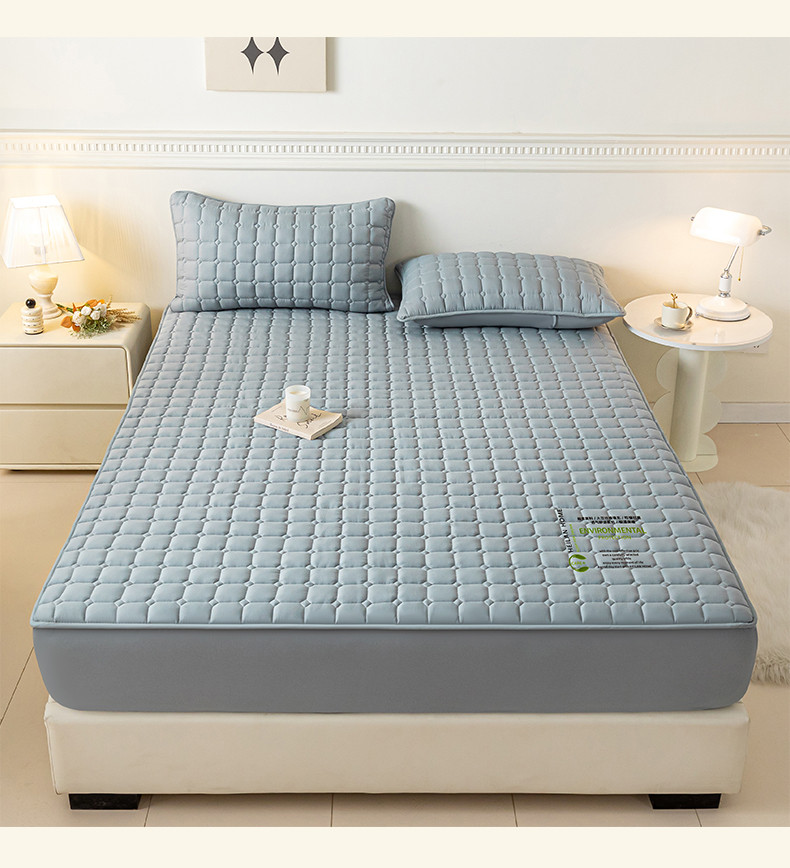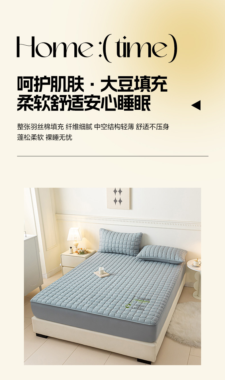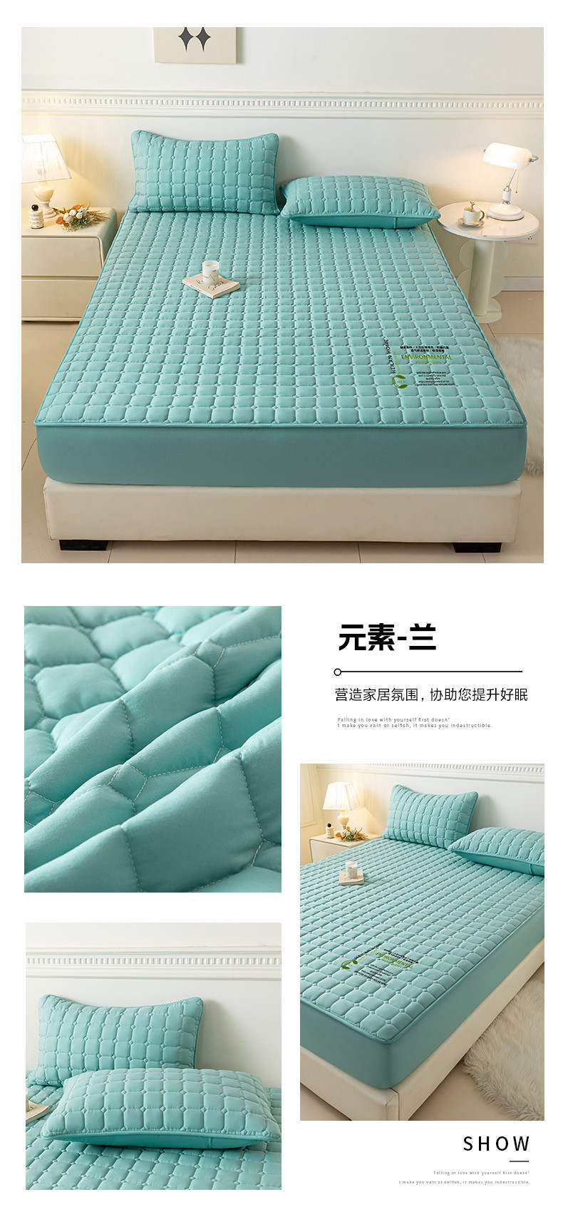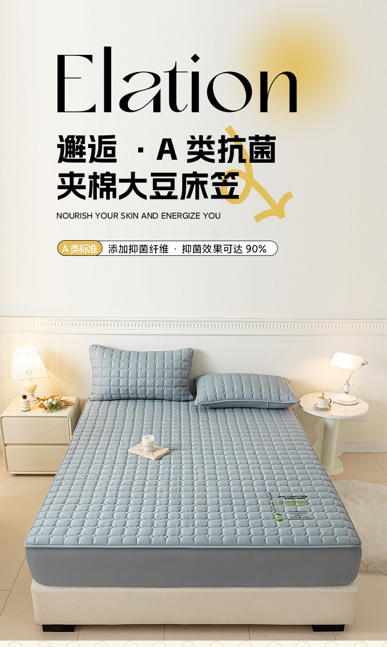 (总)卡伦 2025新款原棉抗菌大豆纤维防水夹棉床笠,白色,淡粉,果绿,卡其,水蓝,星灰