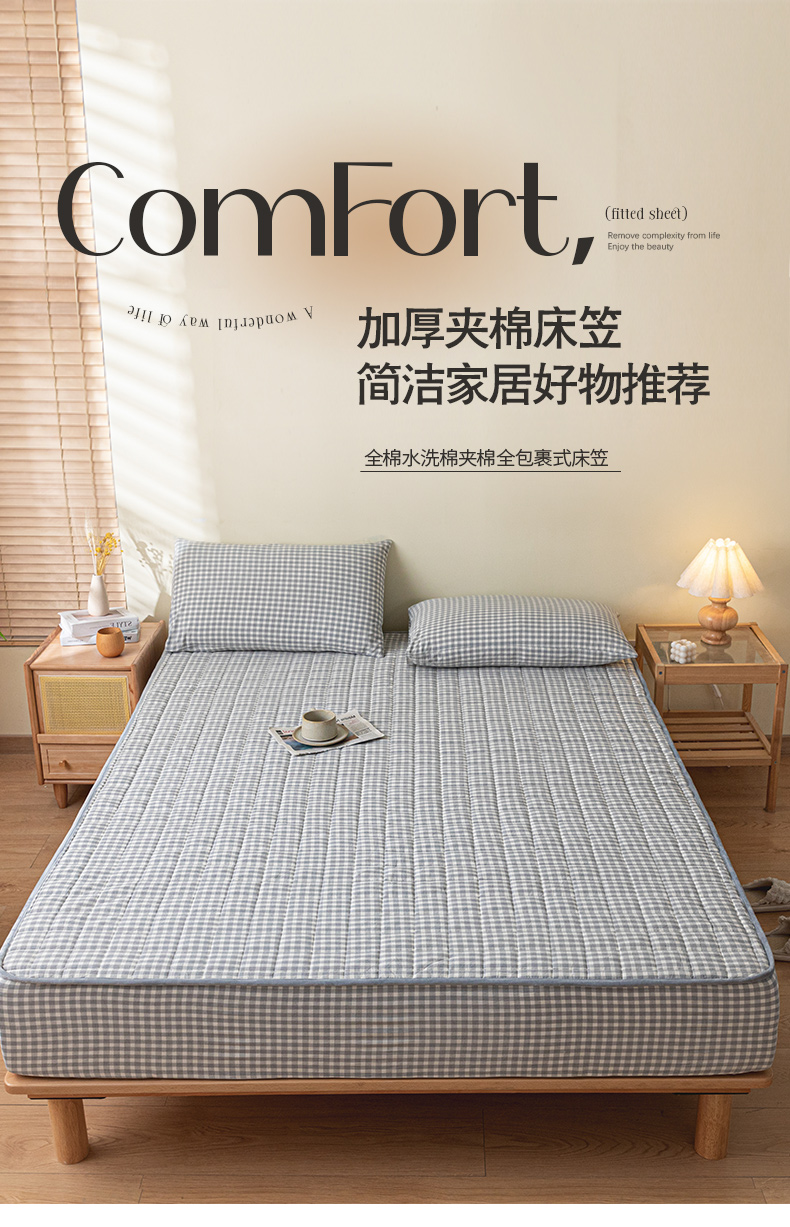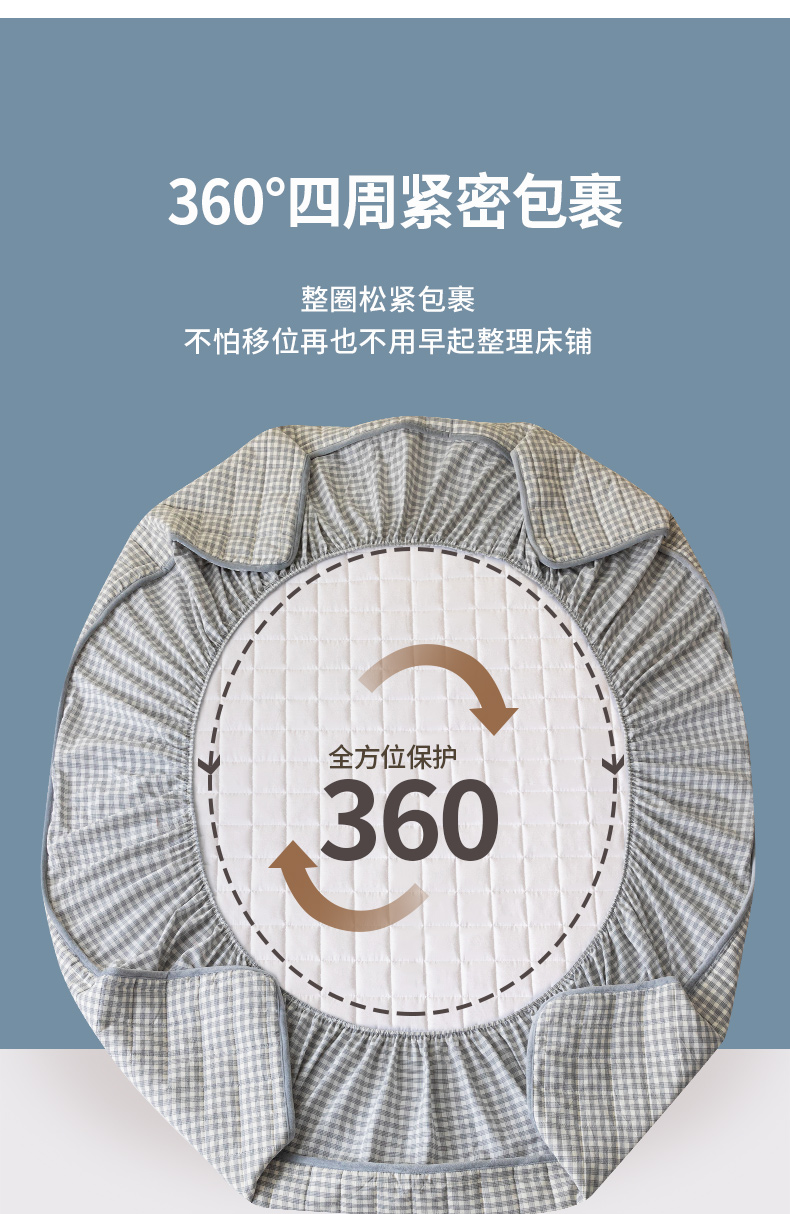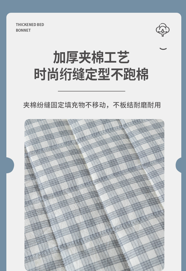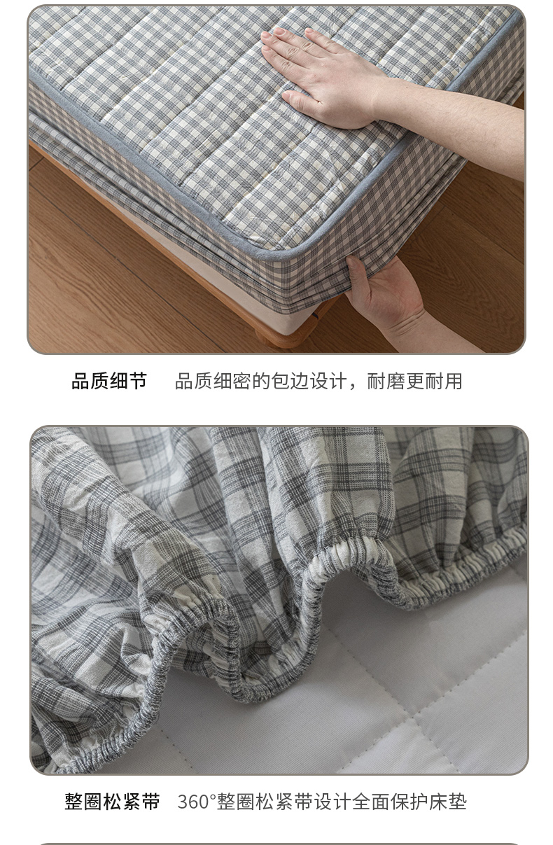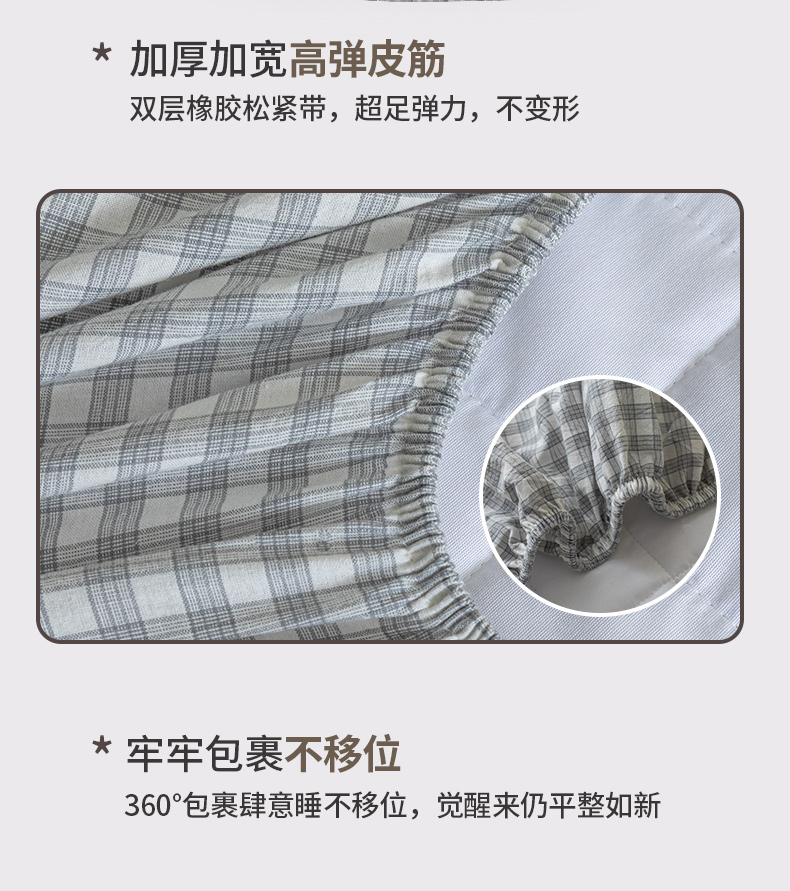 商品名称:ab家纺 2024新款色织全棉夹棉床笠 未央-灰