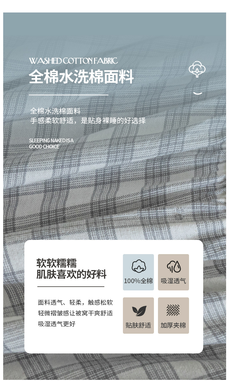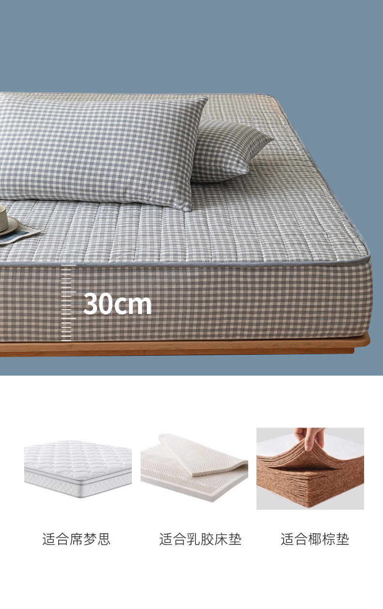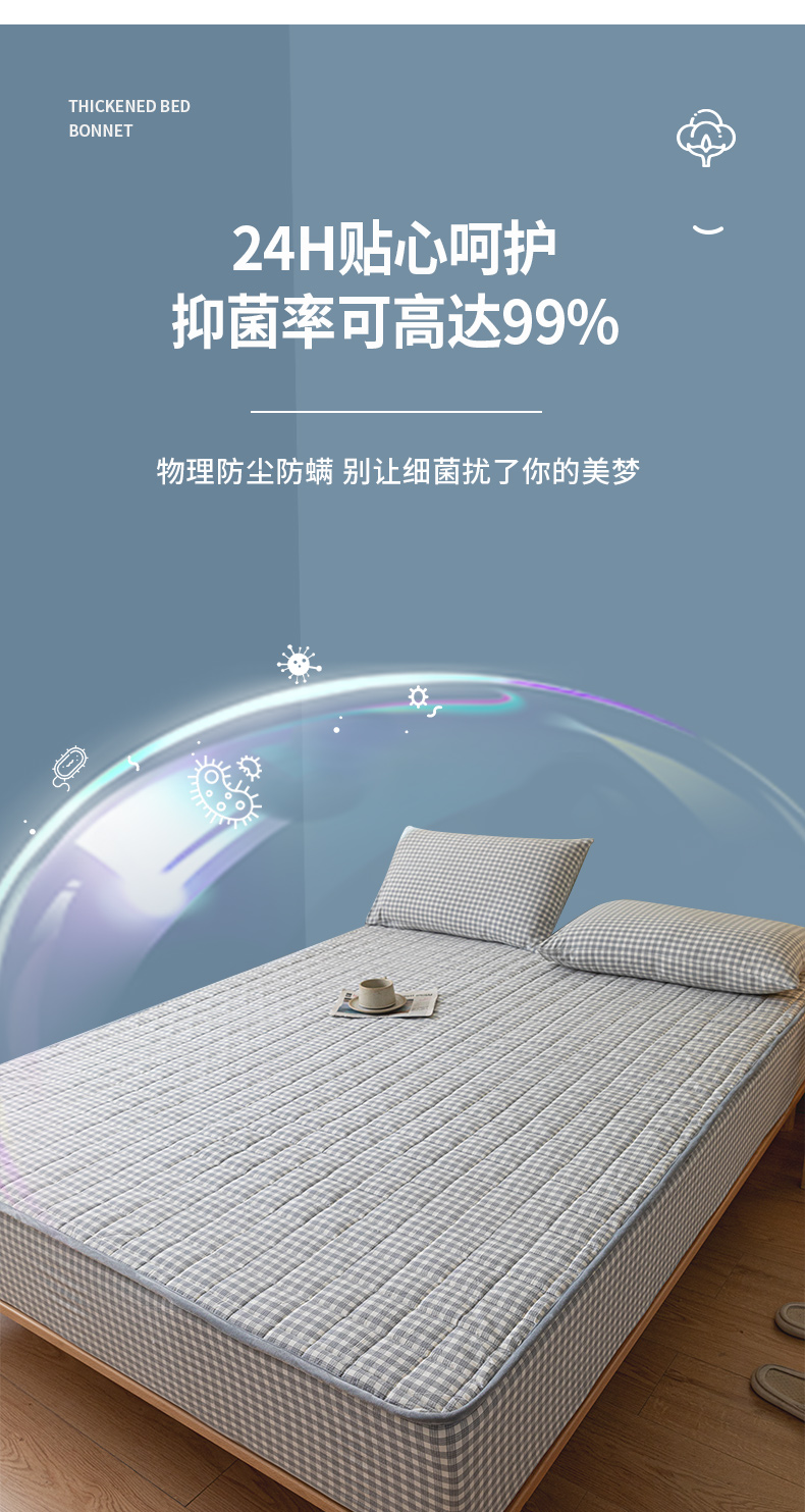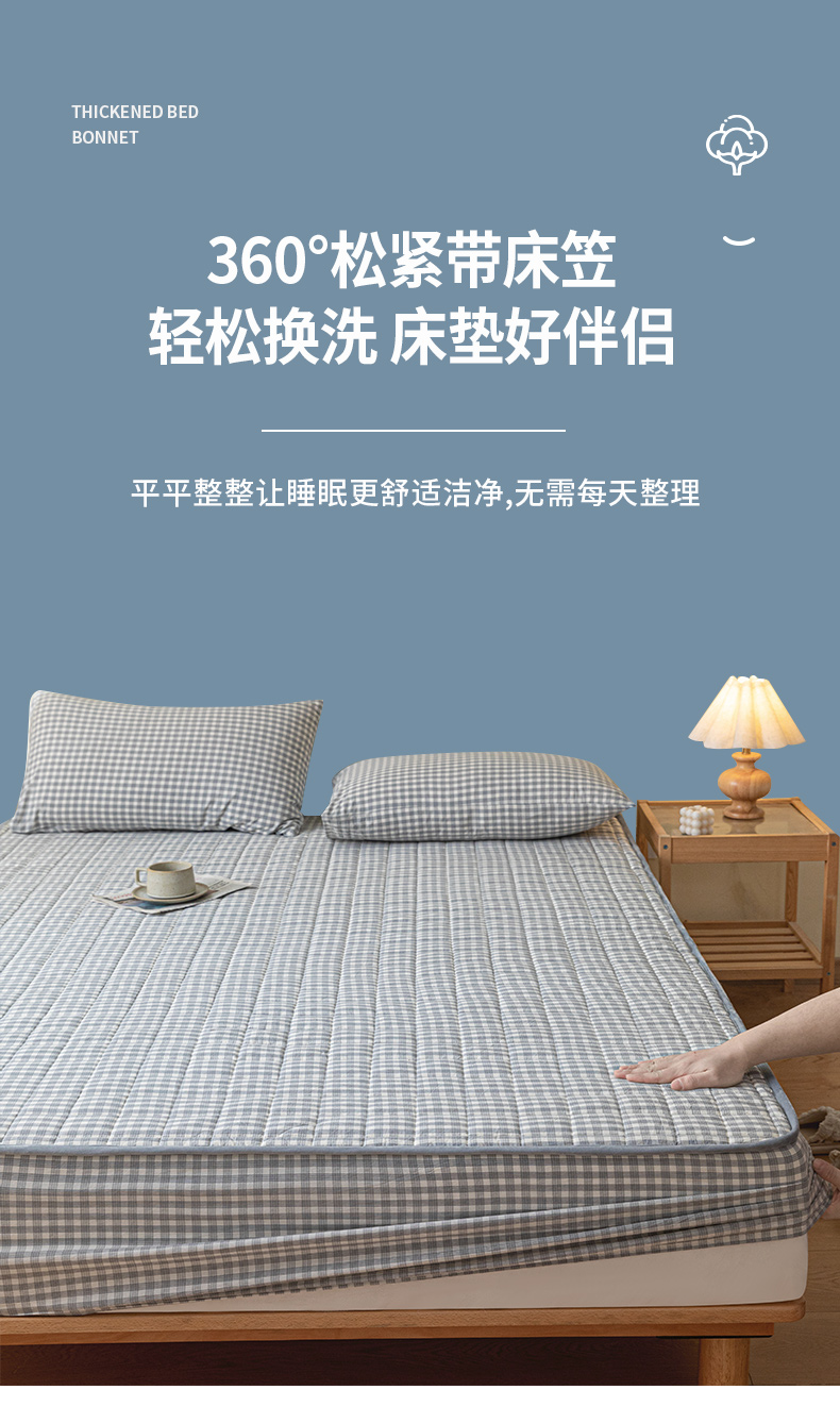 商品名称:ab家纺 2024新款色织全棉夹棉床笠 未央-灰