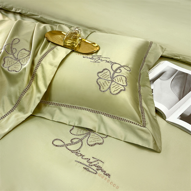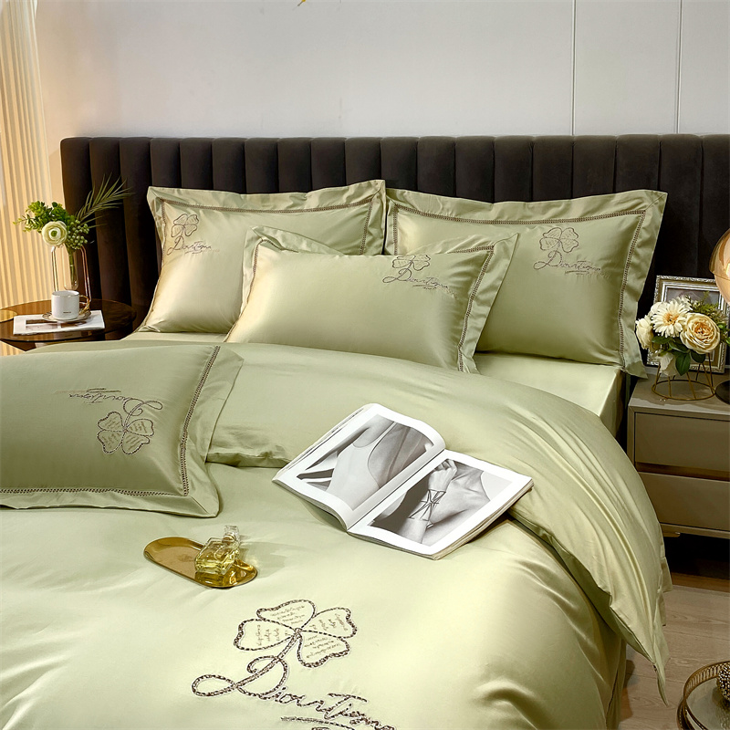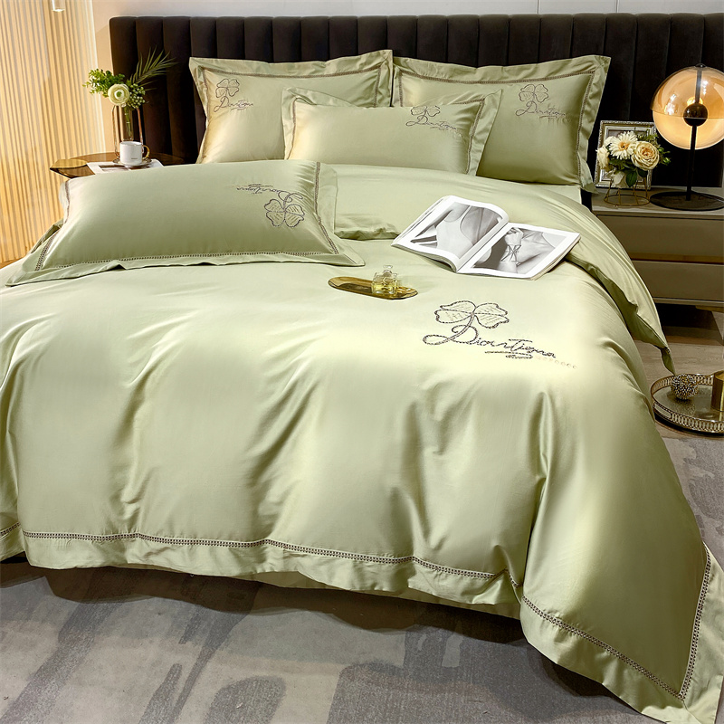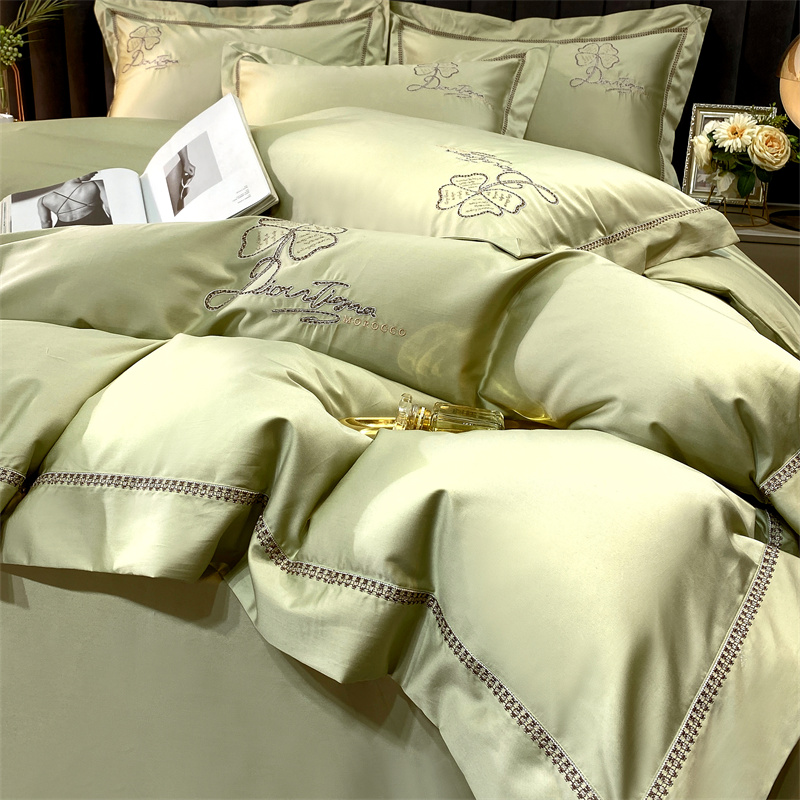 玖玖爱家纺 2024新款160支双股长绒棉小香风系列四件套 小香风抹茶绿