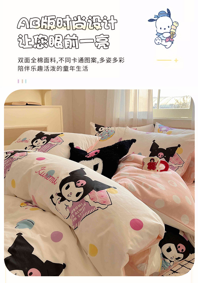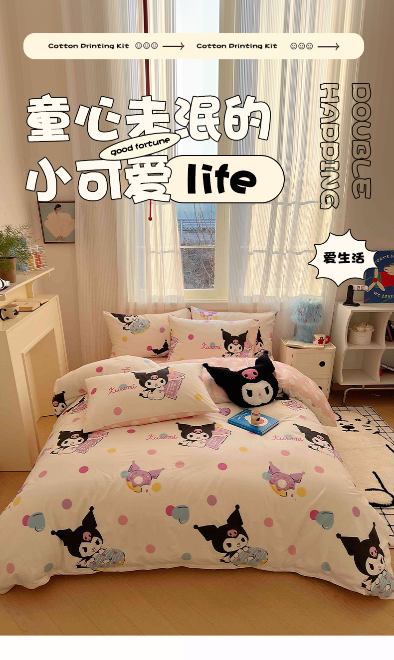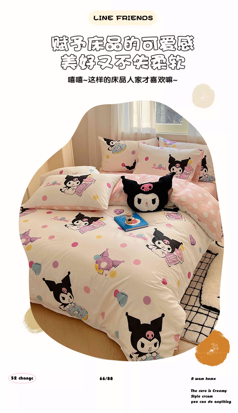 星座家纺 2025新款40s全棉卡通印花四件套 甜心库洛米