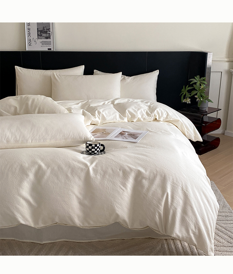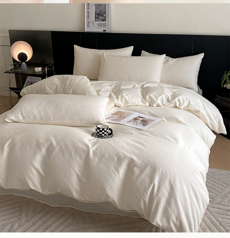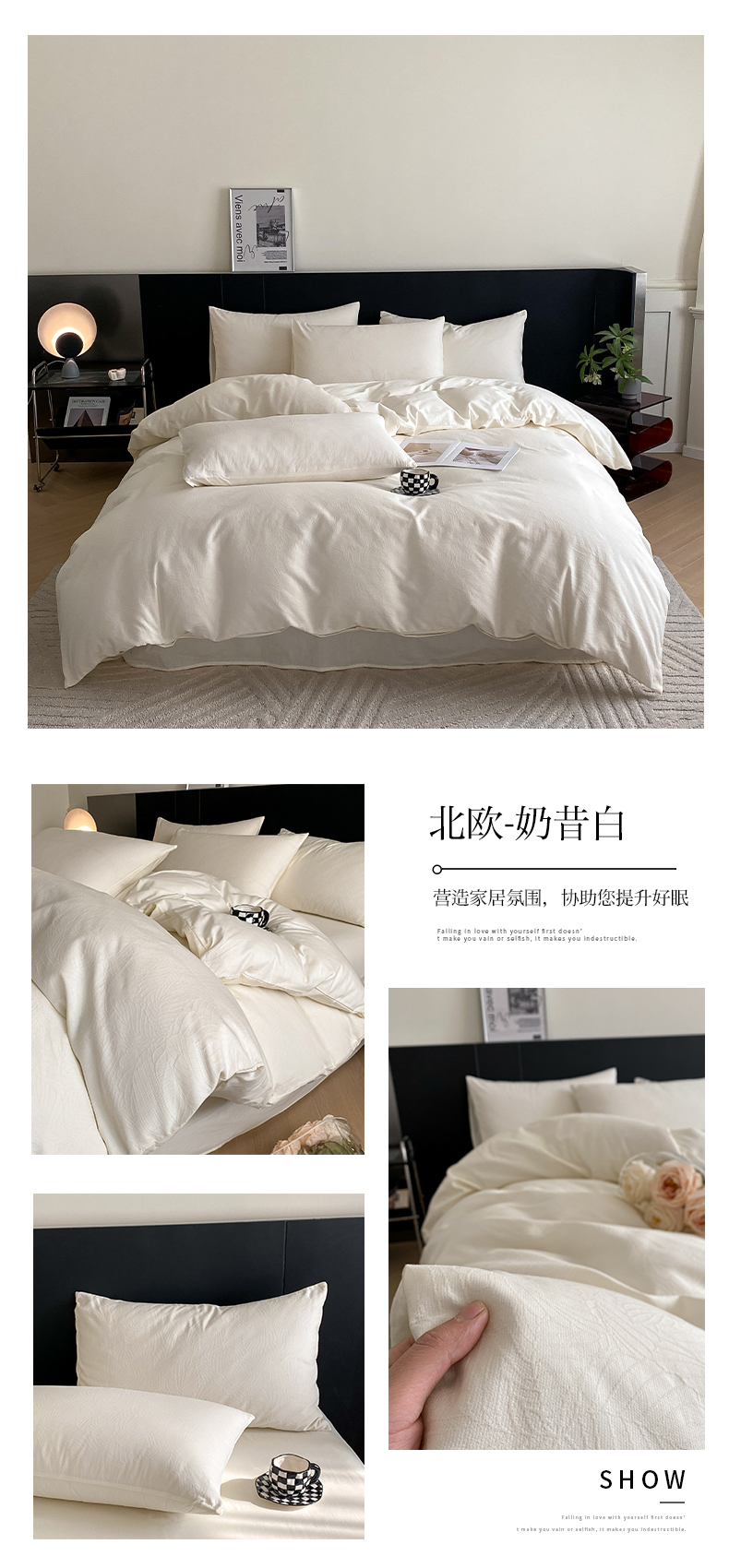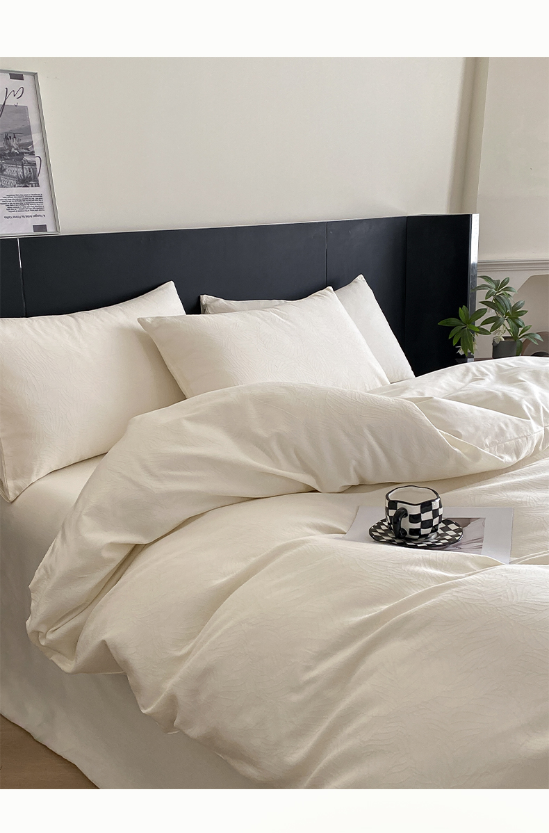 当前位置: 91家纺网 > 商品网购 > 床品套件 > 四件套 > 全棉普通四件套 > 莱登卡奴 2024新款全棉A类水洗棉提花三层纱四件套 北欧-奶昔白