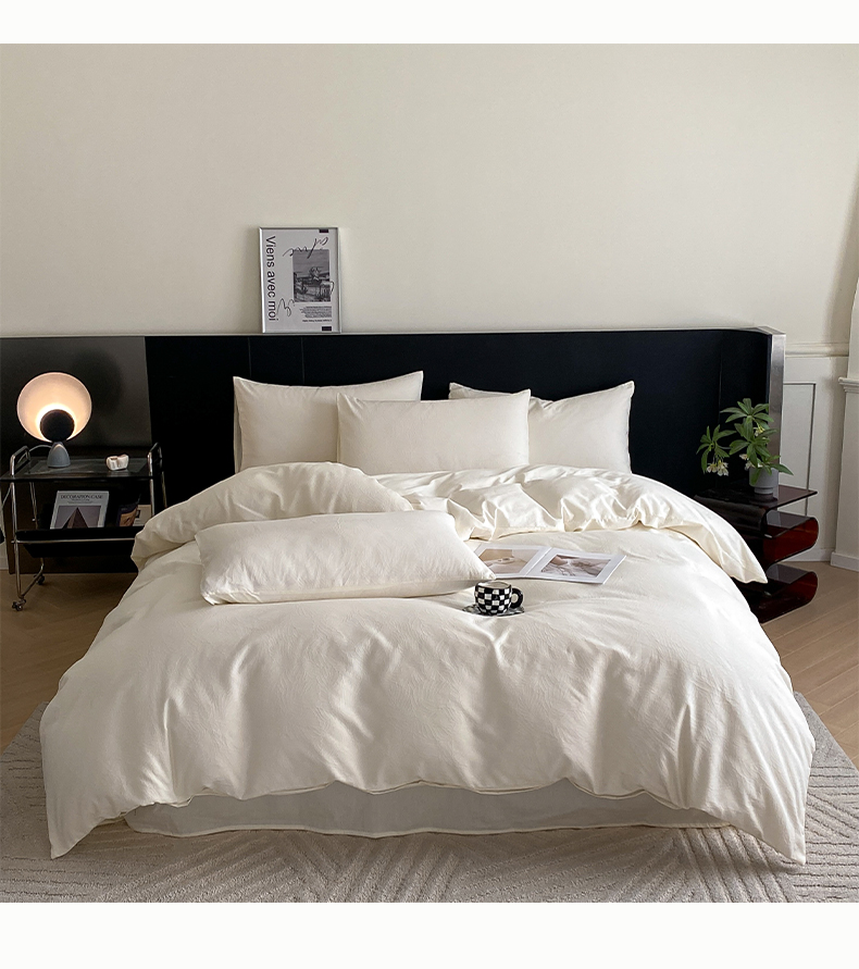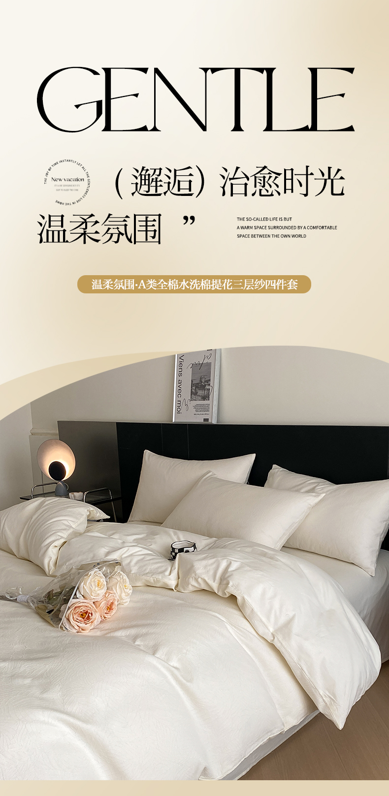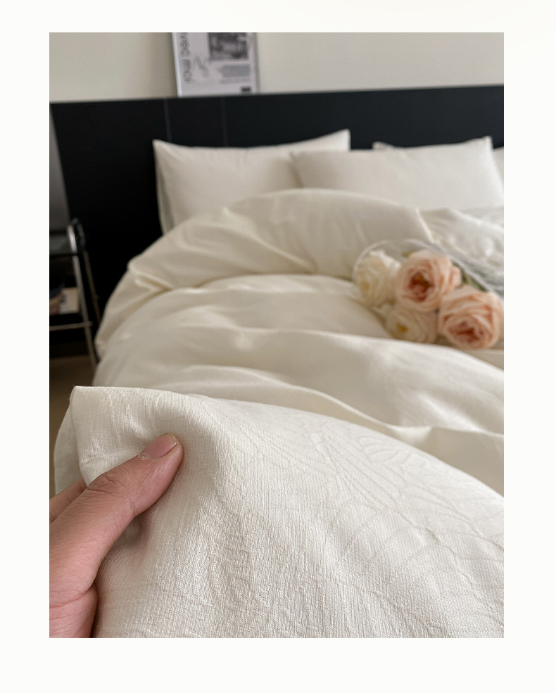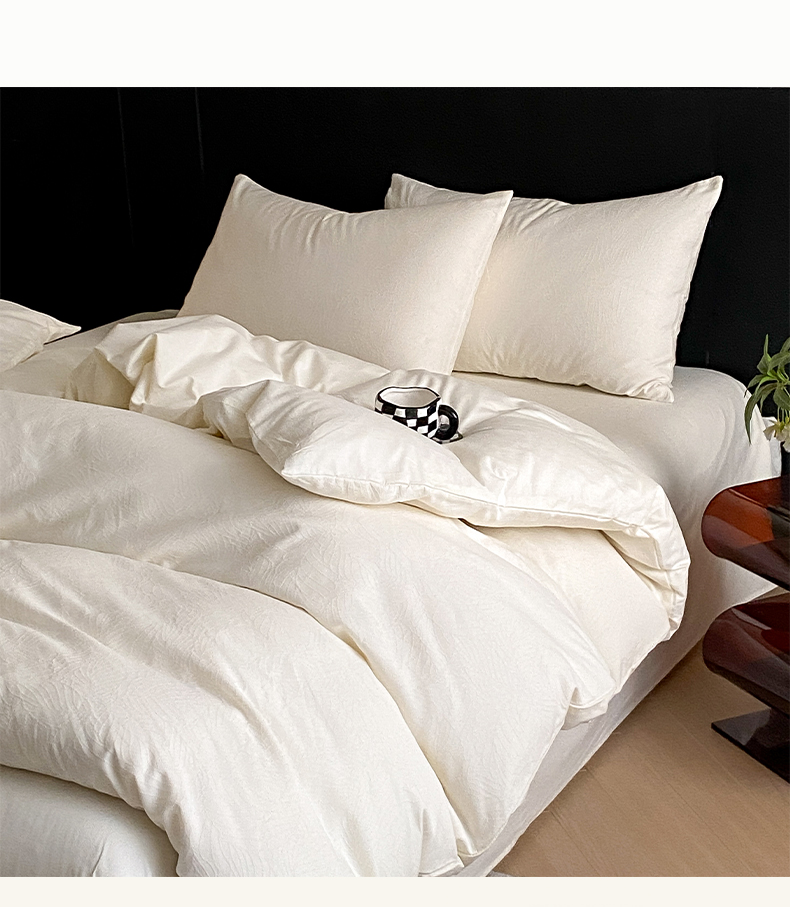 当前位置: 91家纺网 > 商品网购 > 床品套件 > 四件套 > 全棉普通四件套 > 莱登卡奴 2024新款全棉A类水洗棉提花三层纱四件套 北欧-奶昔白